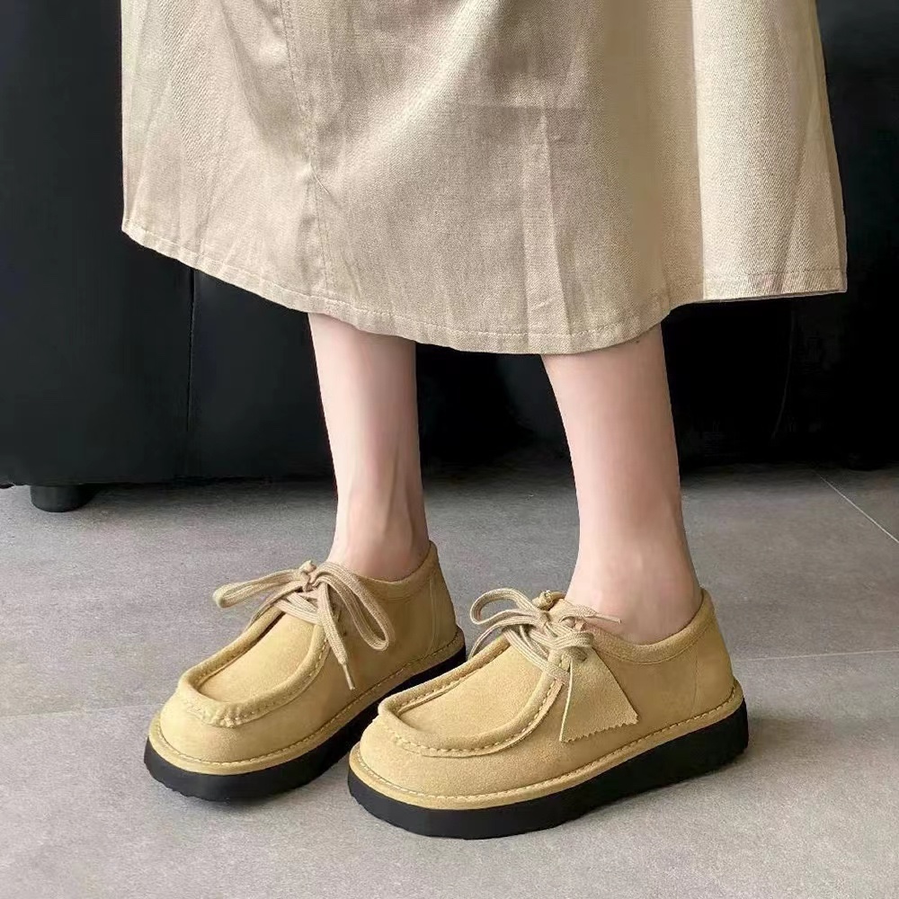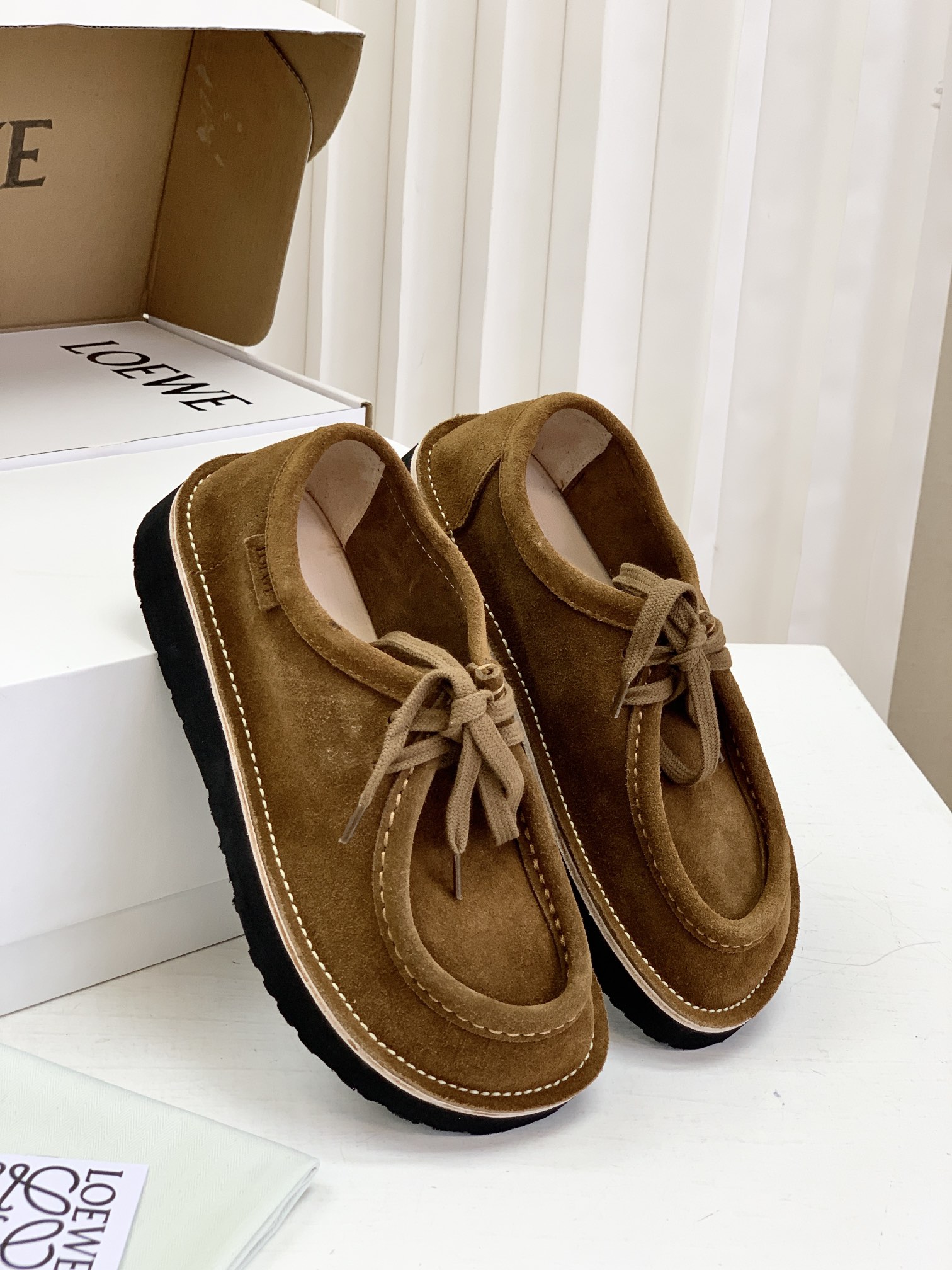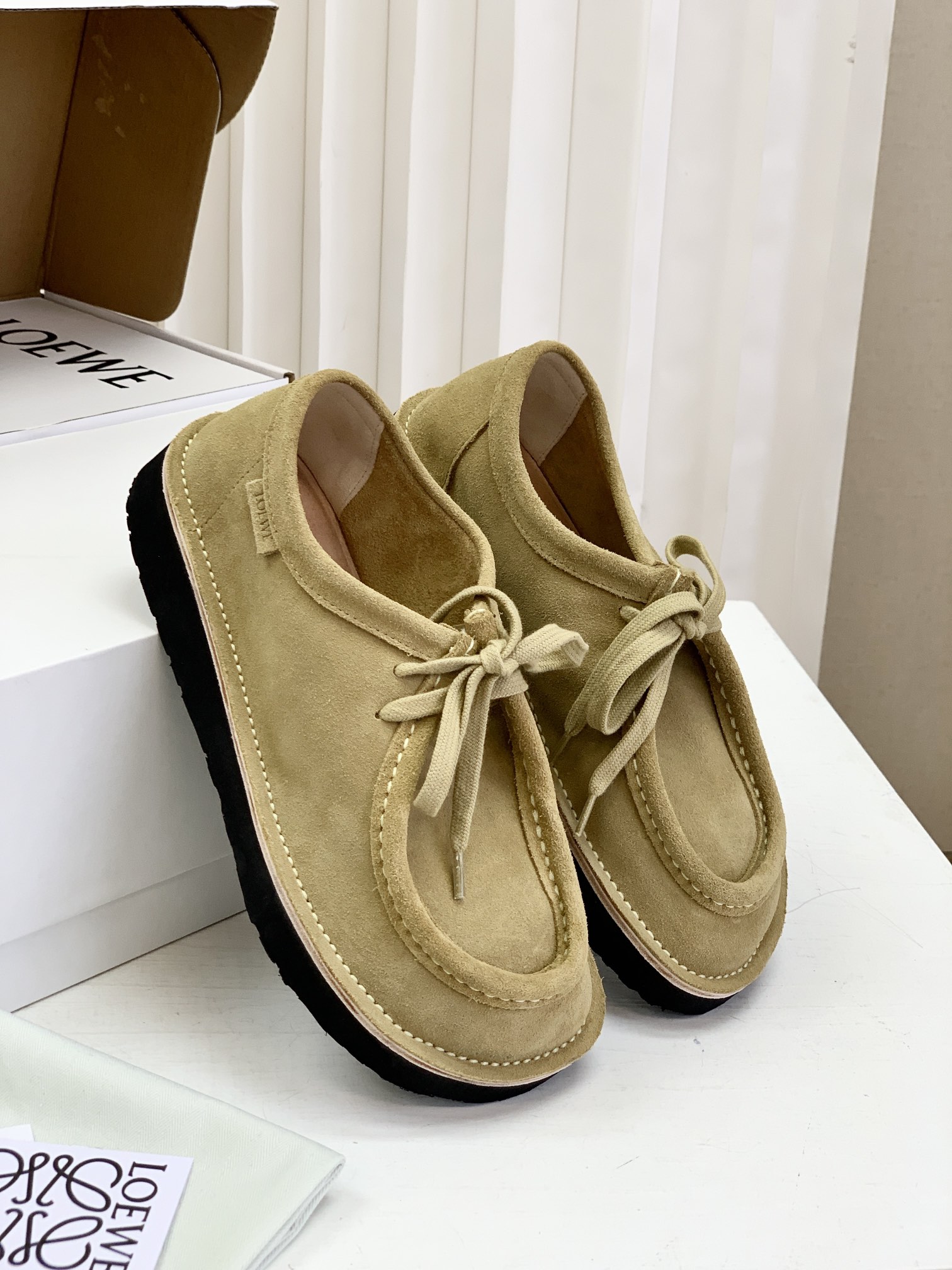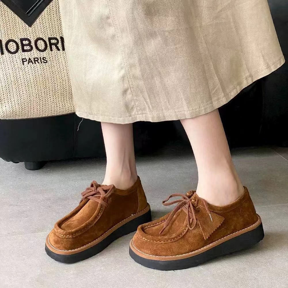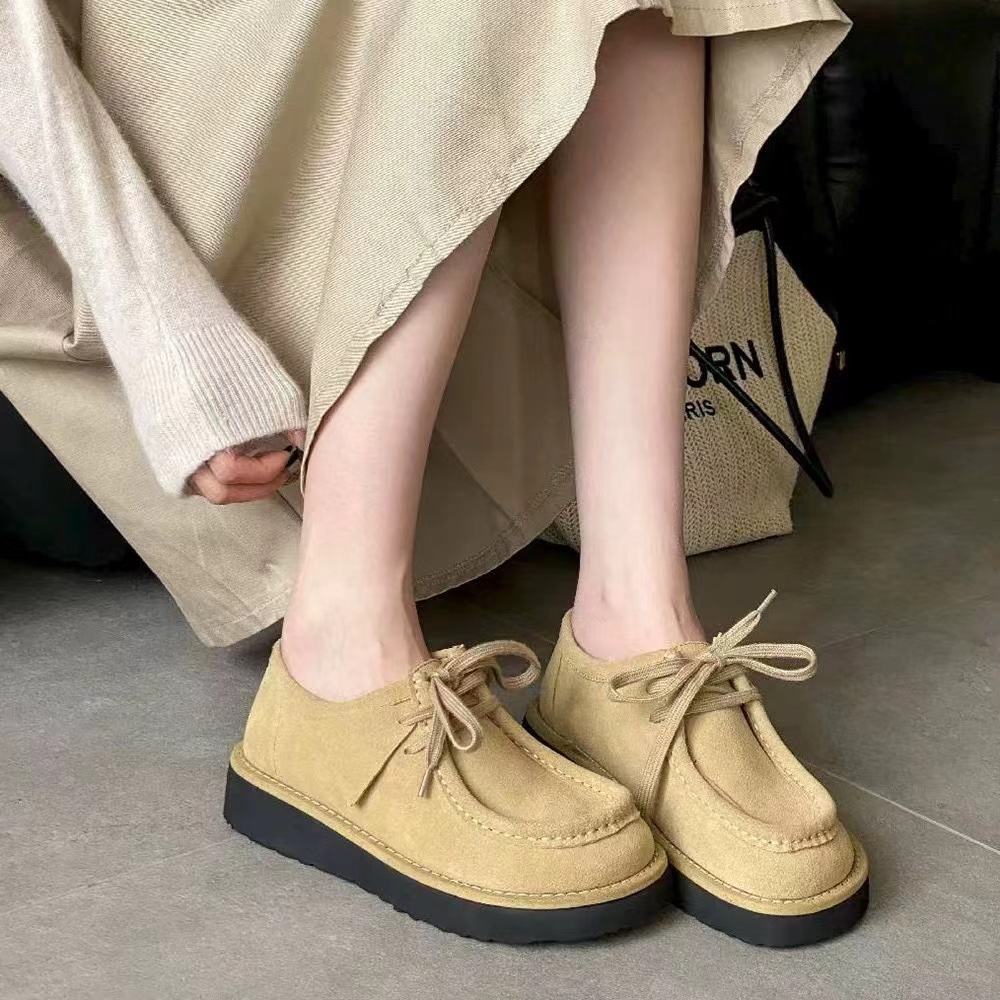 罗yi威,莞产,顶级,官网同步,2025早秋款款,时尚复古系带袋鼠鞋‼️ 从设计到质感,均与官网同步呼应,让你轻松拥有高奢级穿搭体验,鞋面甄选高丝光牛反绒,细腻的肌理带着自然的绒感光泽,每一寸都透着低调的精致;鞋垫采用水染牛皮,触感温润且富有韧性,与脚感轻盈的EVA发泡大底搭配,3公分跟高恰到好处,既悄悄拉长身形,又能带来如履平地的舒适,久穿也无负担! 经典棕色沉稳大气,卡其色温柔雅致,两种色调皆是百搭之选,轻松融入各式穿搭场景,贴合脚型的设计让每一步都自在从容,从材质的严苛甄选到细节的精心打磨,这双鞋不仅是舒适的陪伴,更是品味与高端的具象表达! 原盒包装,尺码,35 36 37 38 39 40 正码!