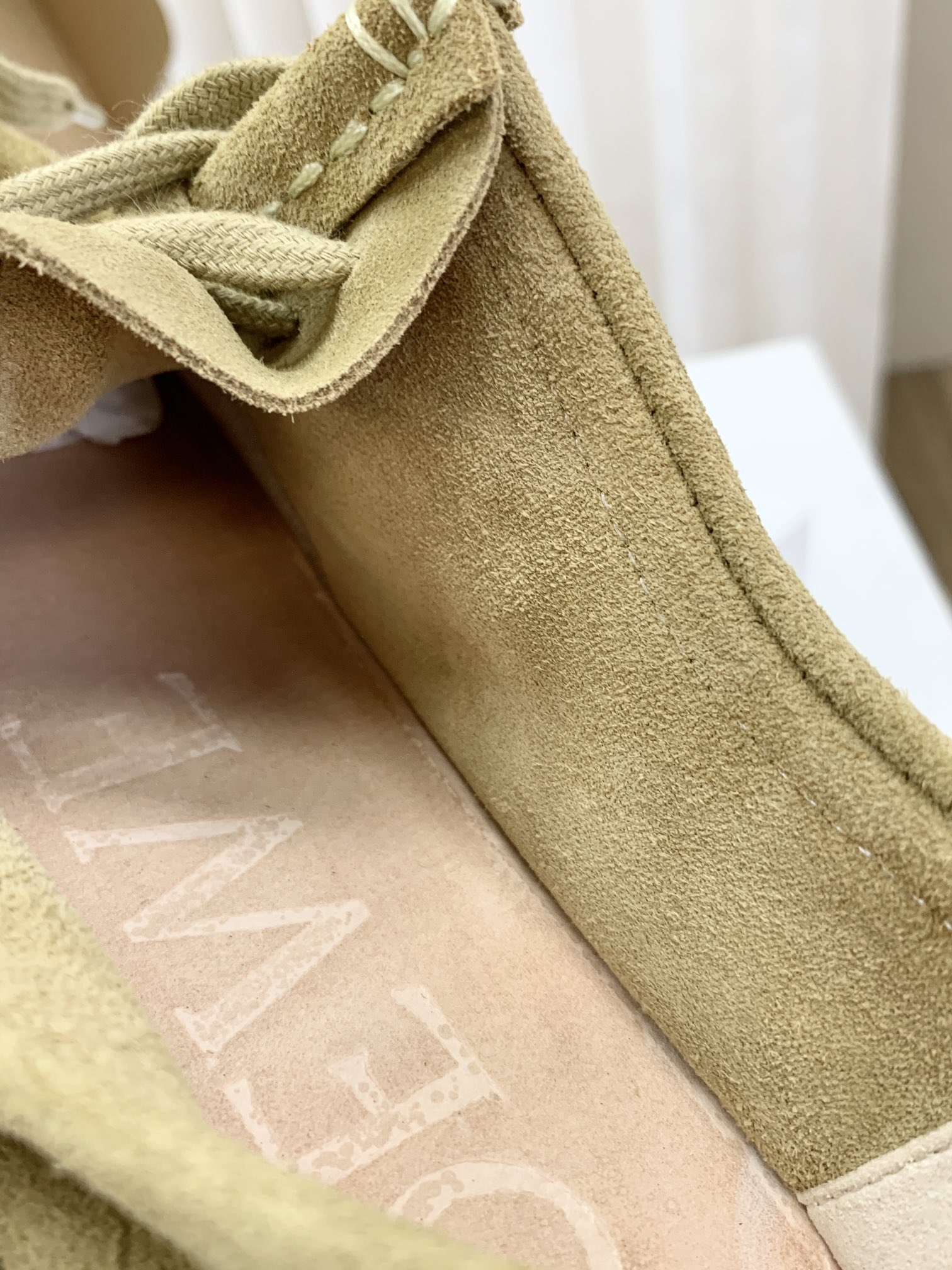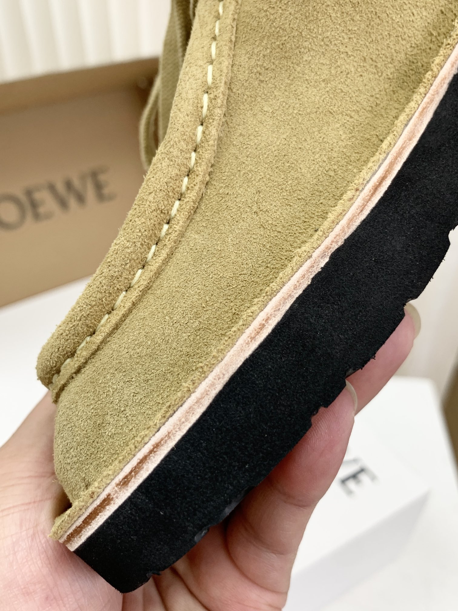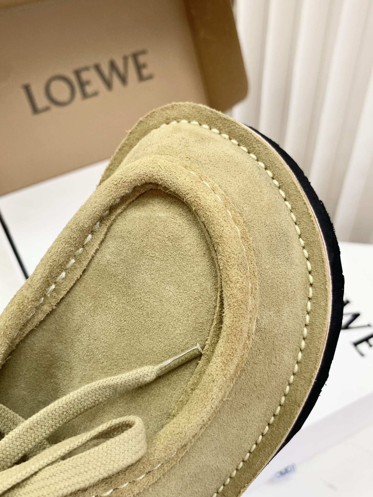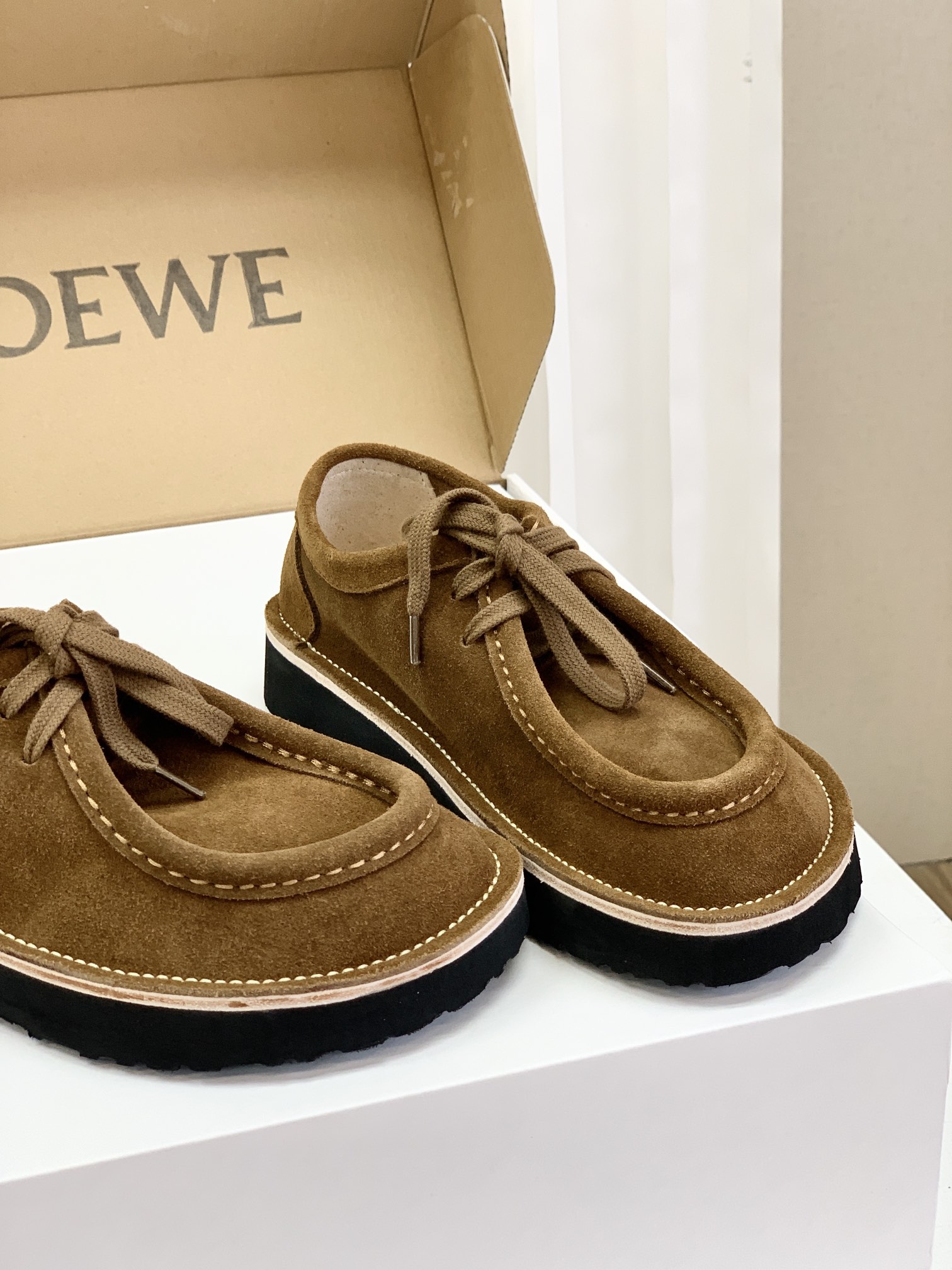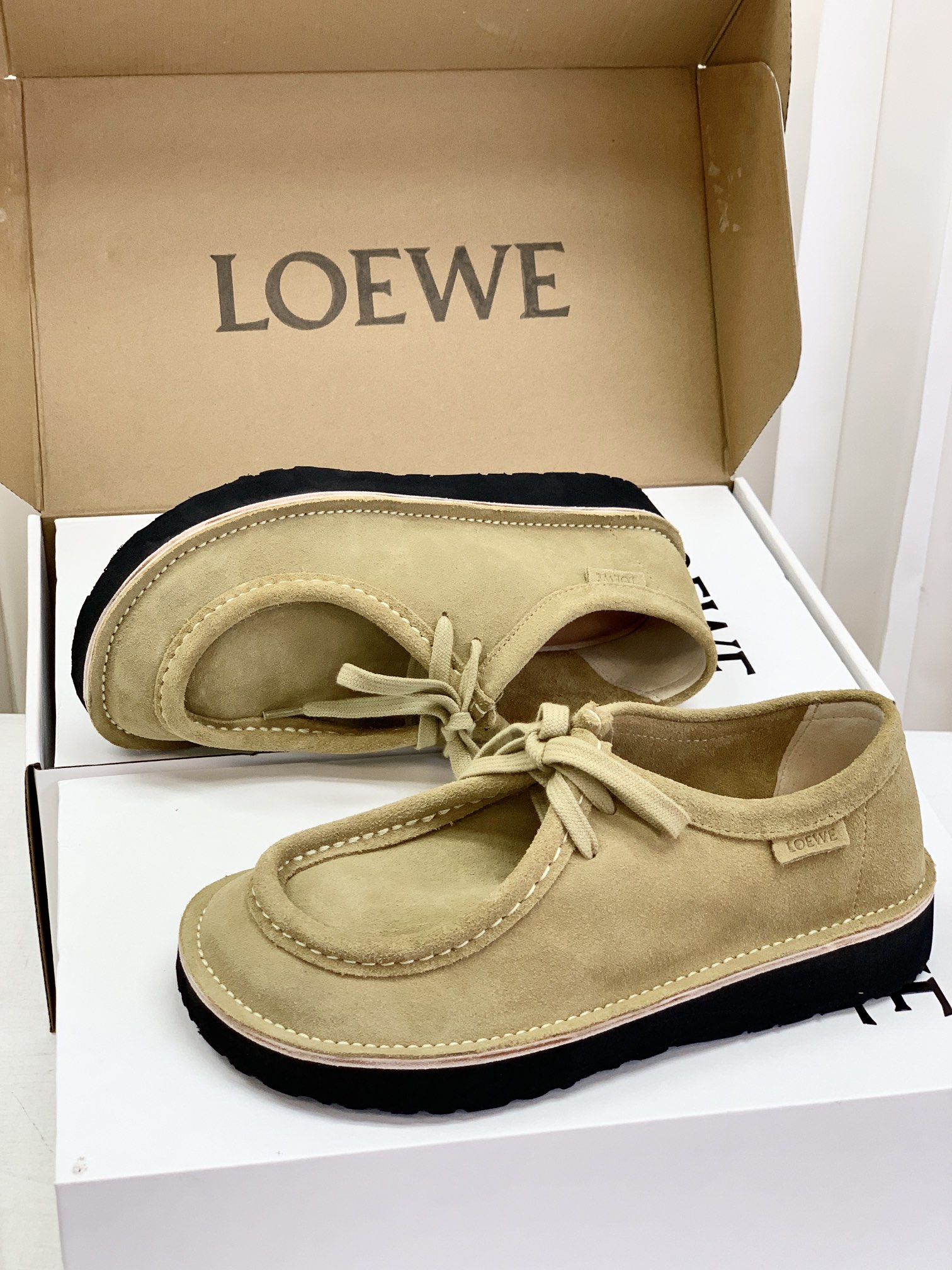 罗yi威,莞产,顶级,官网同步,2025早秋款款,时尚复古系带袋鼠鞋‼️ 从设计到质感,均与官网同步呼应,让你轻松拥有高奢级穿搭体验,鞋面甄选高丝光牛反绒,细腻的肌理带着自然的绒感光泽,每一寸都透着低调的精致;鞋垫采用水染牛皮,触感温润且富有韧性,与脚感轻盈的EVA发泡大底搭配,3公分跟高恰到好处,既悄悄拉长身形,又能带来如履平地的舒适,久穿也无负担! 经典棕色沉稳大气,卡其色温柔雅致,两种色调皆是百搭之选,轻松融入各式穿搭场景,贴合脚型的设计让每一步都自在从容,从材质的严苛甄选到细节的精心打磨,这双鞋不仅是舒适的陪伴,更是品味与高端的具象表达! 原盒包装,尺码,35 36 37 38 39 40 正码!