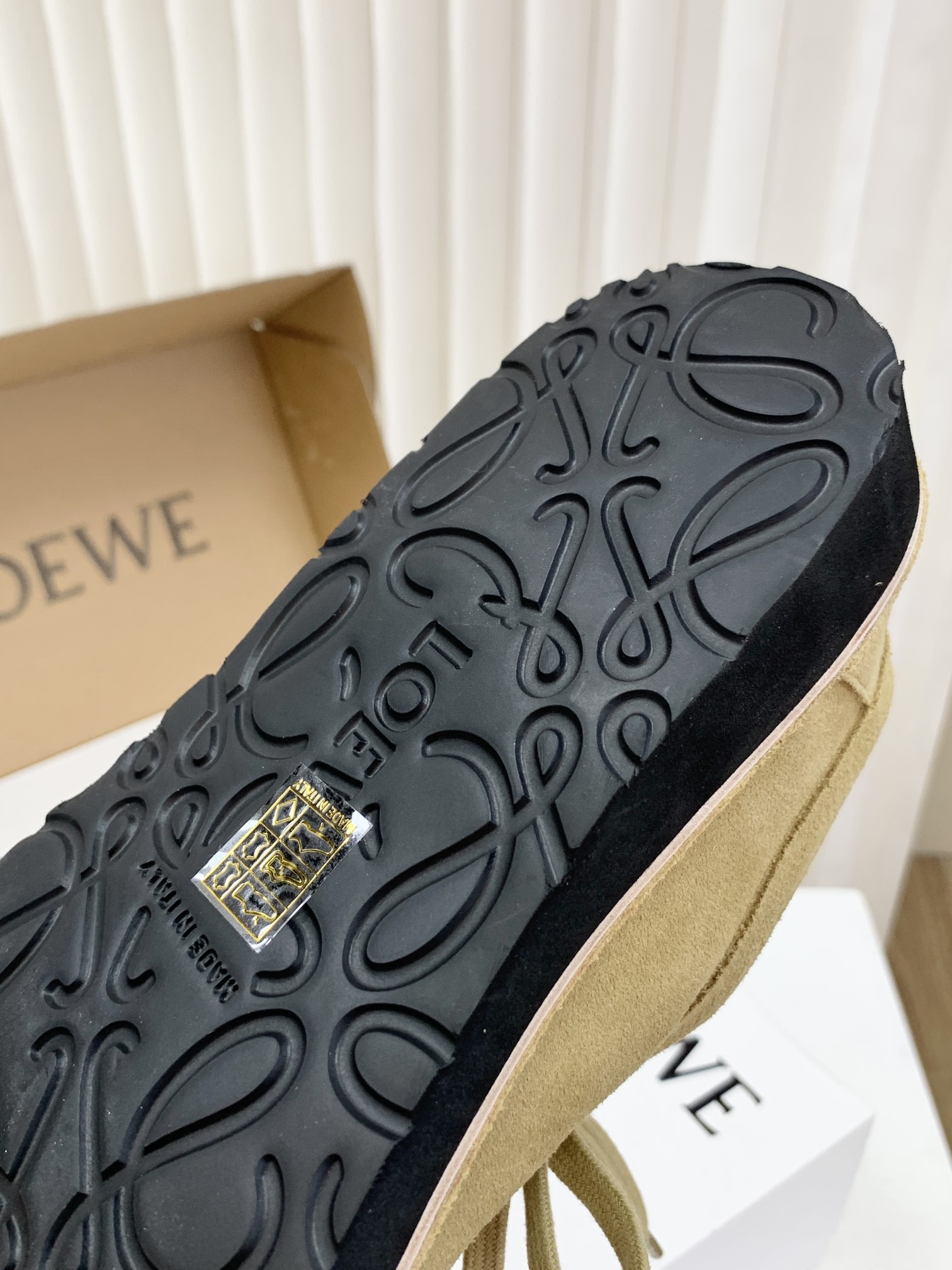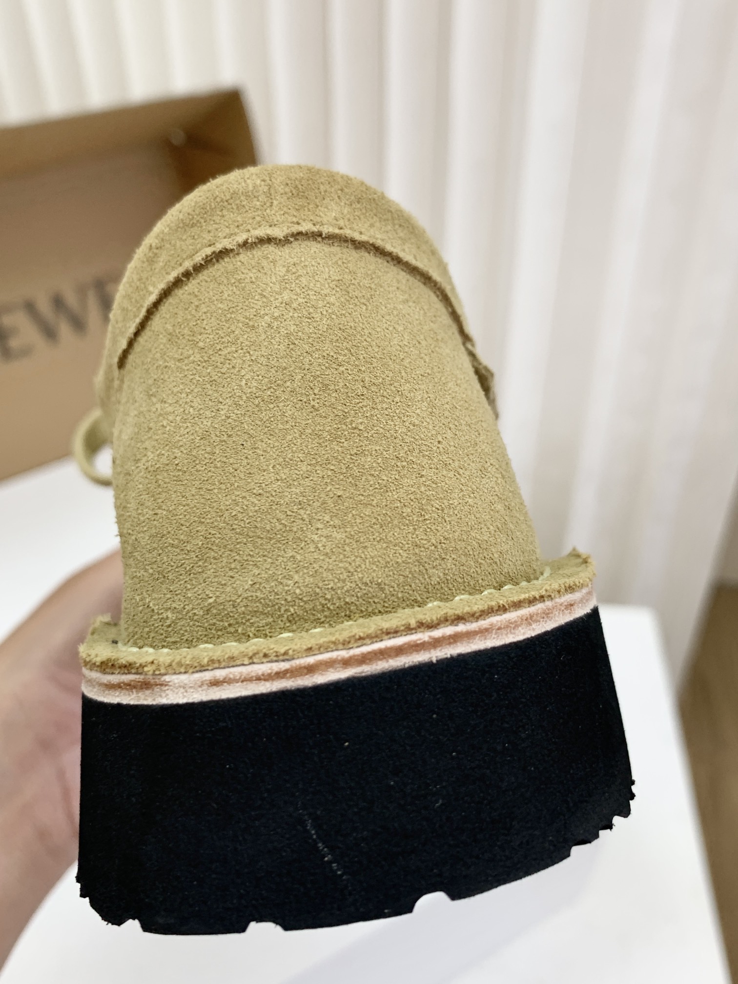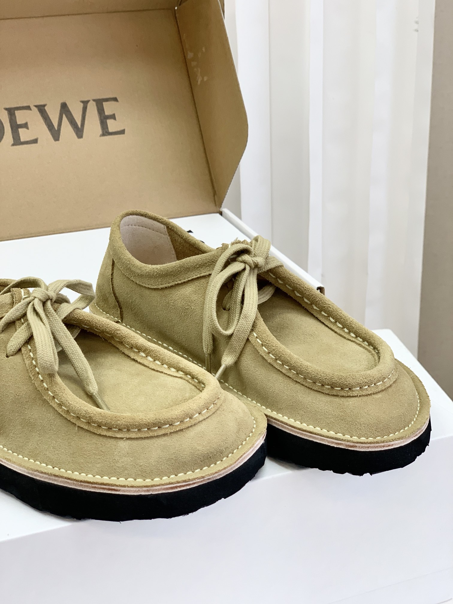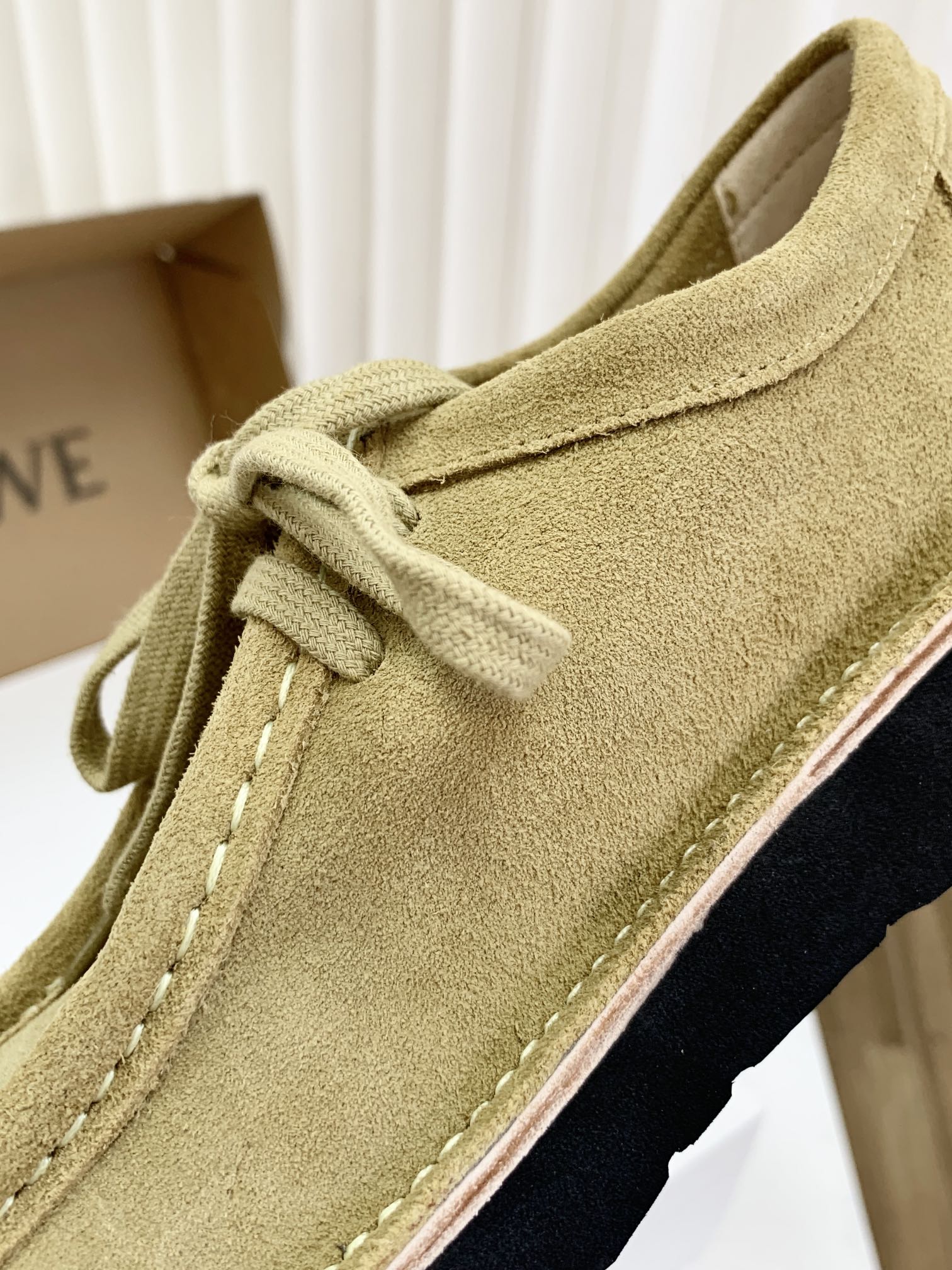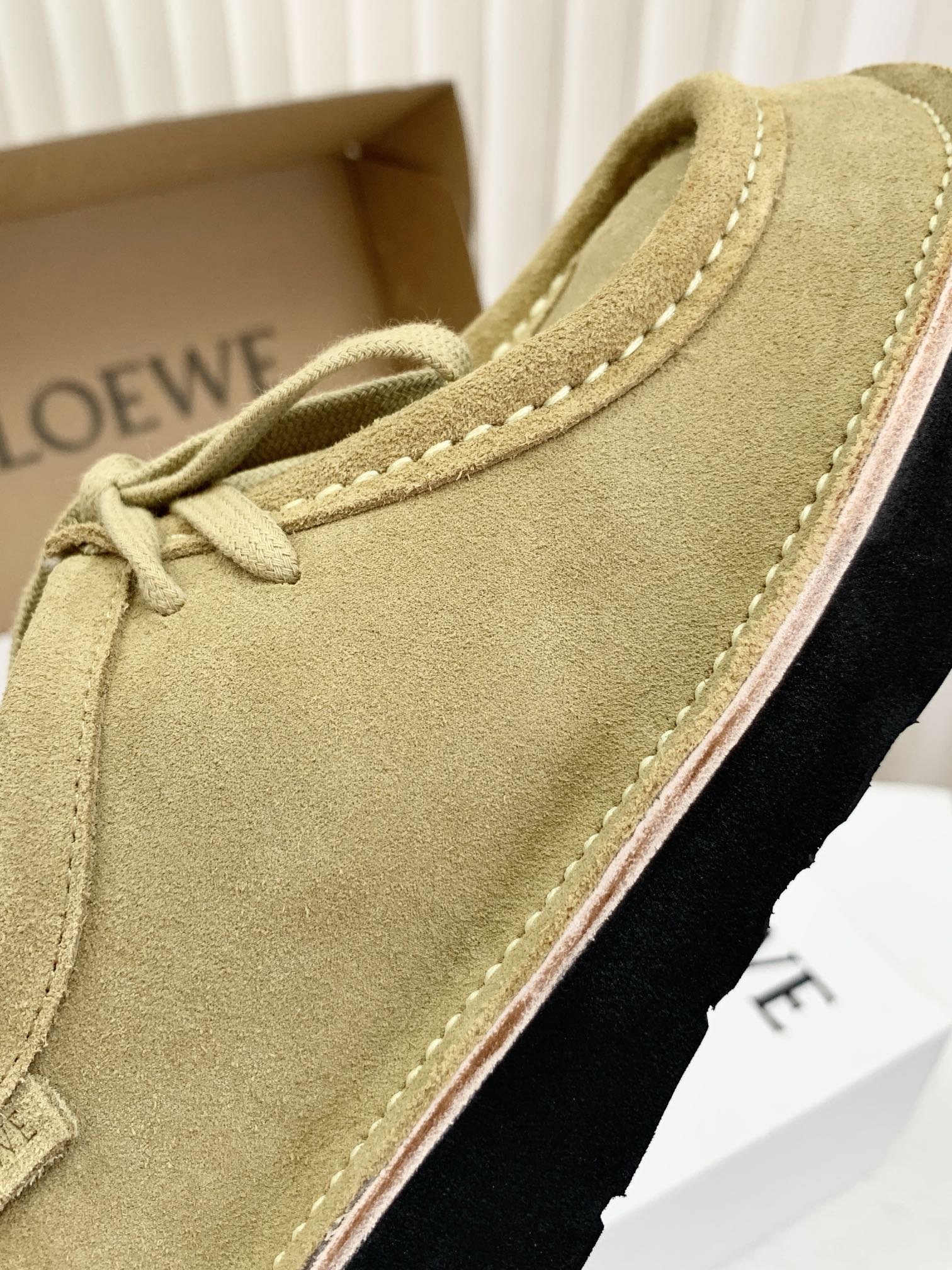 罗yi威,莞产,顶级,官网同步,2025早秋款款,时尚复古系带袋鼠鞋‼️ 从设计到质感,均与官网同步呼应,让你轻松拥有高奢级穿搭体验,鞋面甄选高丝光牛反绒,细腻的肌理带着自然的绒感光泽,每一寸都透着低调的精致;鞋垫采用水染牛皮,触感温润且富有韧性,与脚感轻盈的EVA发泡大底搭配,3公分跟高恰到好处,既悄悄拉长身形,又能带来如履平地的舒适,久穿也无负担! 经典棕色沉稳大气,卡其色温柔雅致,两种色调皆是百搭之选,轻松融入各式穿搭场景,贴合脚型的设计让每一步都自在从容,从材质的严苛甄选到细节的精心打磨,这双鞋不仅是舒适的陪伴,更是品味与高端的具象表达! 原盒包装,尺码,35 36 37 38 39 40 正码!