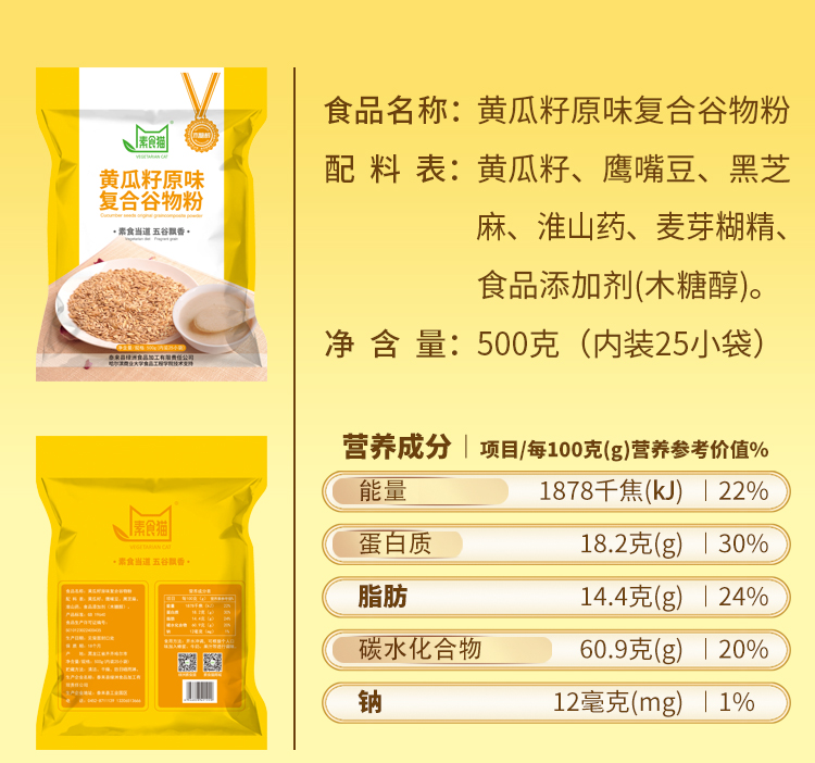 泰来县素食猫木糖醇黄瓜籽原味复合谷物粉500克