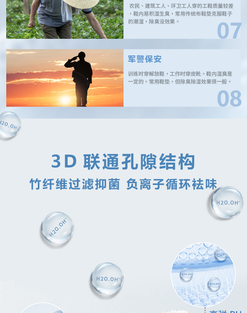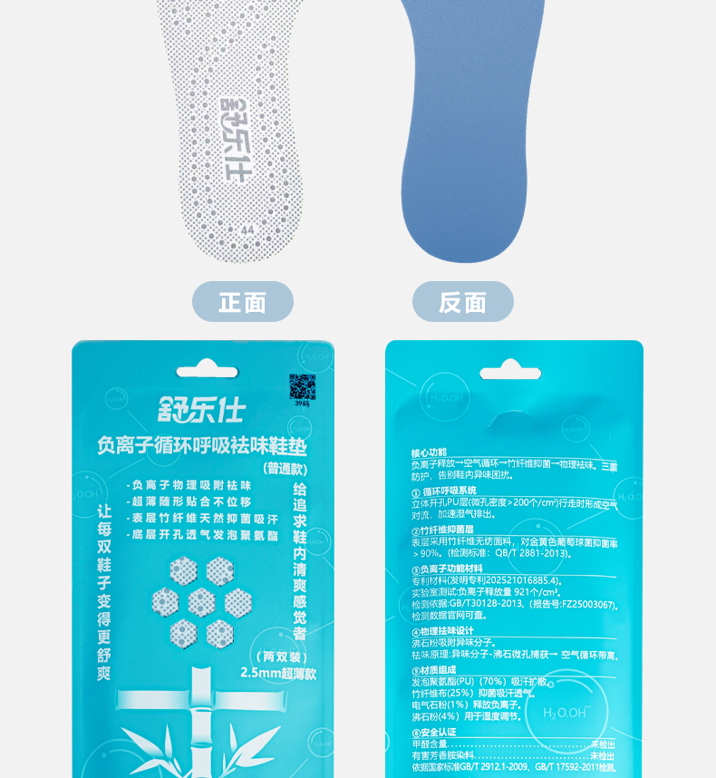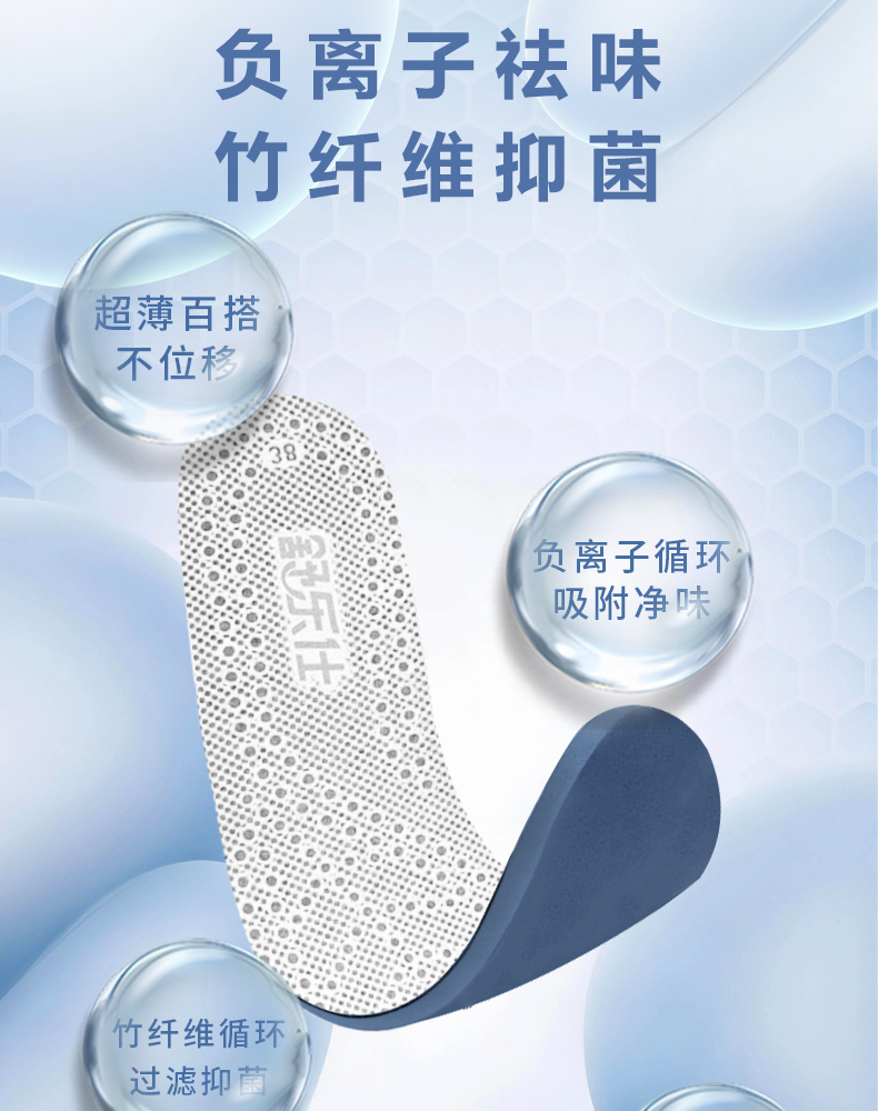 【竹纤维主动瞬吸 抑菌告别闷臭黏腻】舒乐仕 负离子循环祛味鞋垫