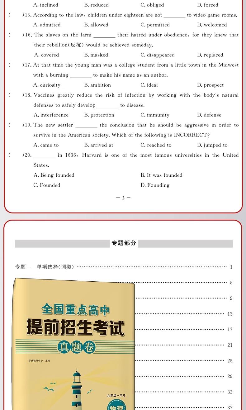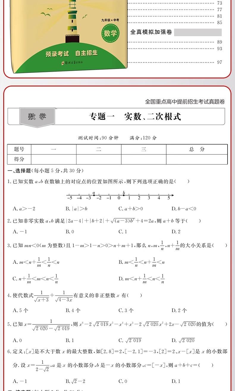 中考总复习九年级期末复习一轮复习全国重点高中提前招生全真试卷