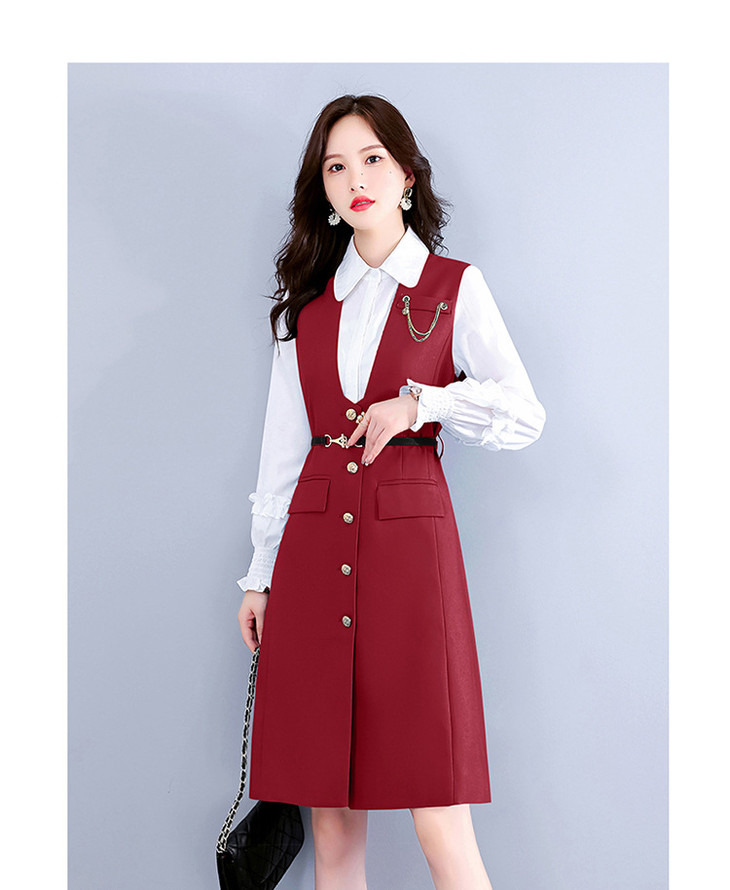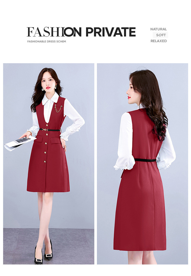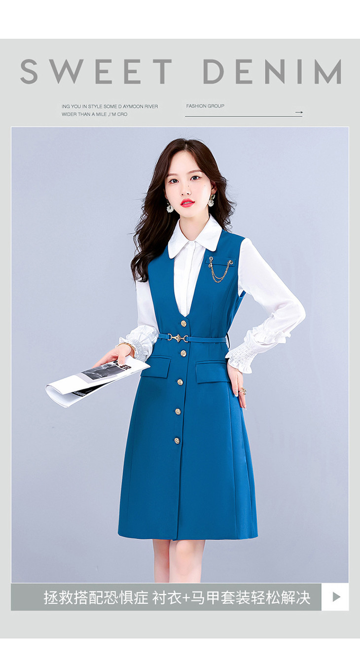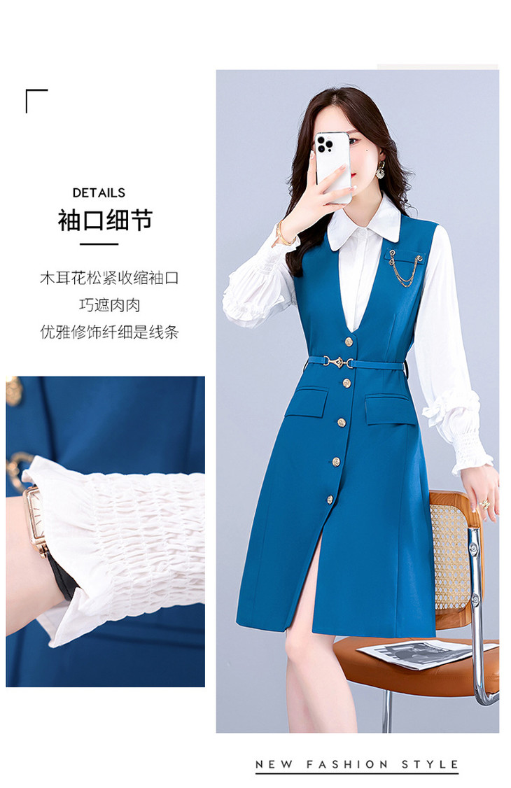 (秋季上新)早秋长袖连衣裙女两件套2022秋季新款气质马甲衬衫洋气显瘦套装裙【WZNH】
