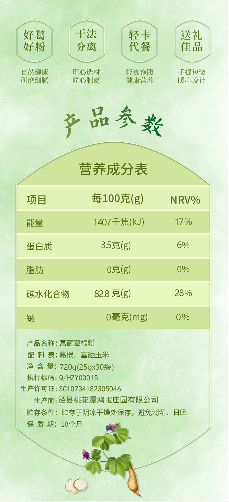 泾县泾农优选·富硒葛根粉1000g 葛根素高达8000mg/kg