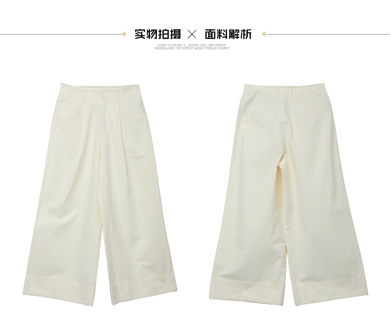 高级感奶白翻边阔腿裤 2026 春夏装新品 垂顺显瘦通勤休闲裤