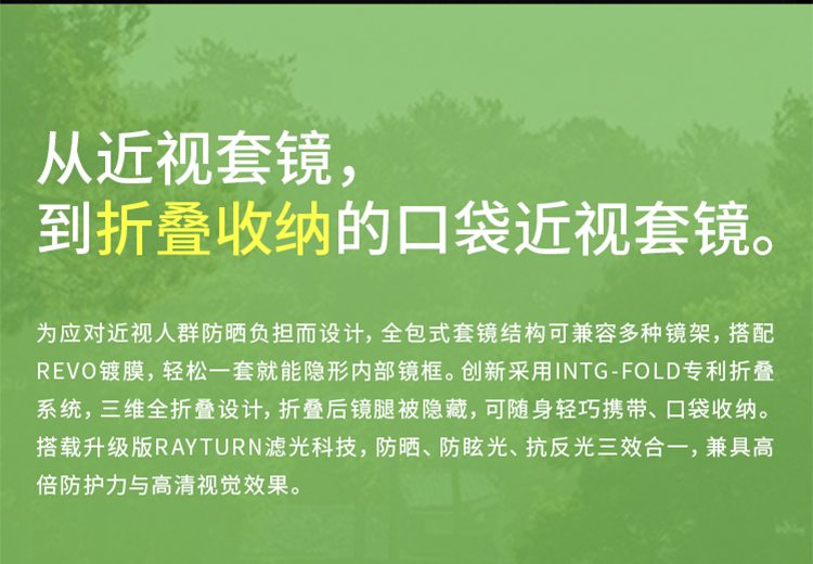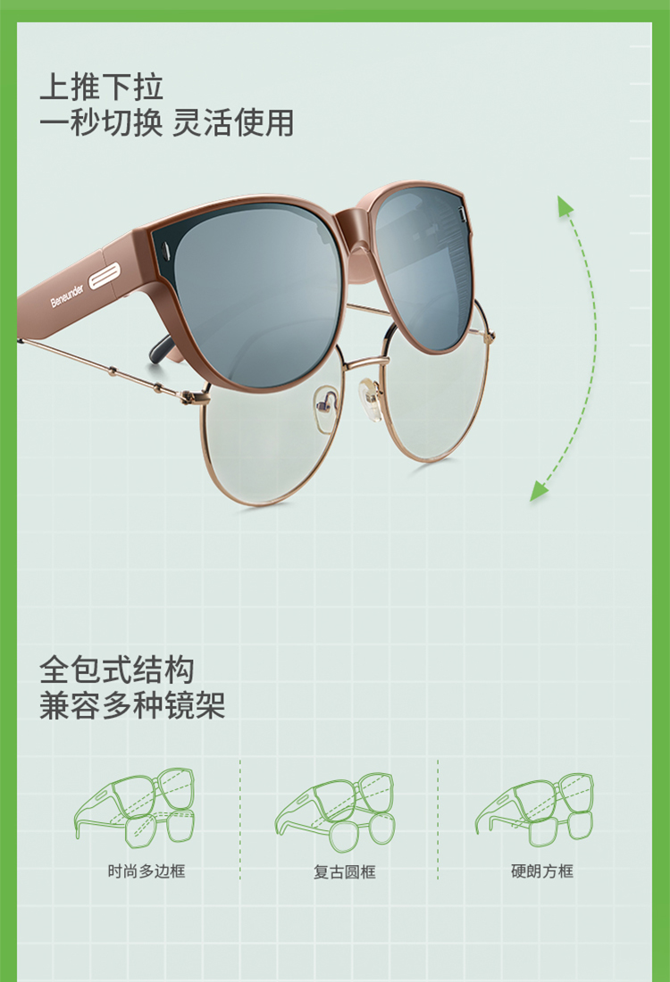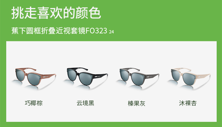 蕉下圆框折叠近视套镜FO32324防晒墨镜开车户外防紫外线太阳镜女