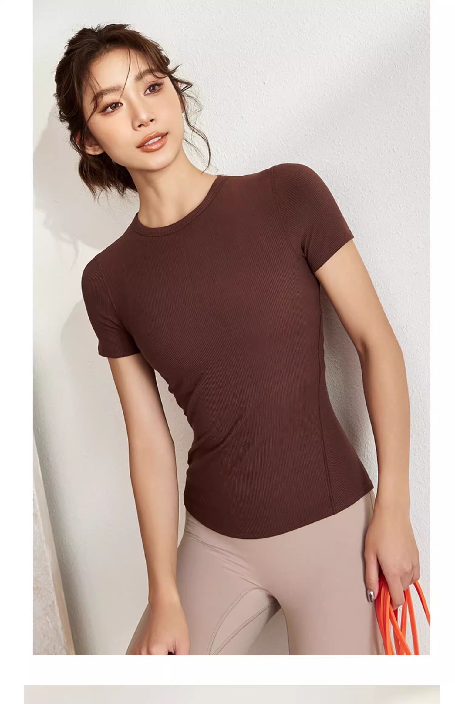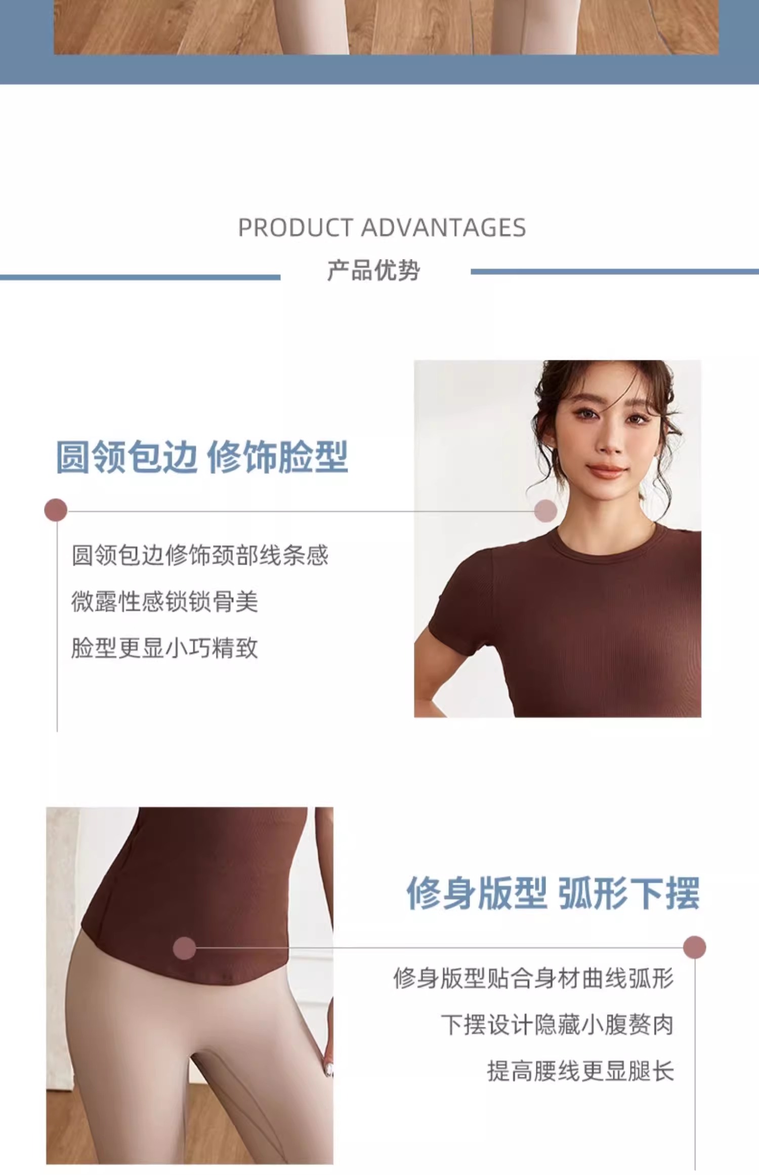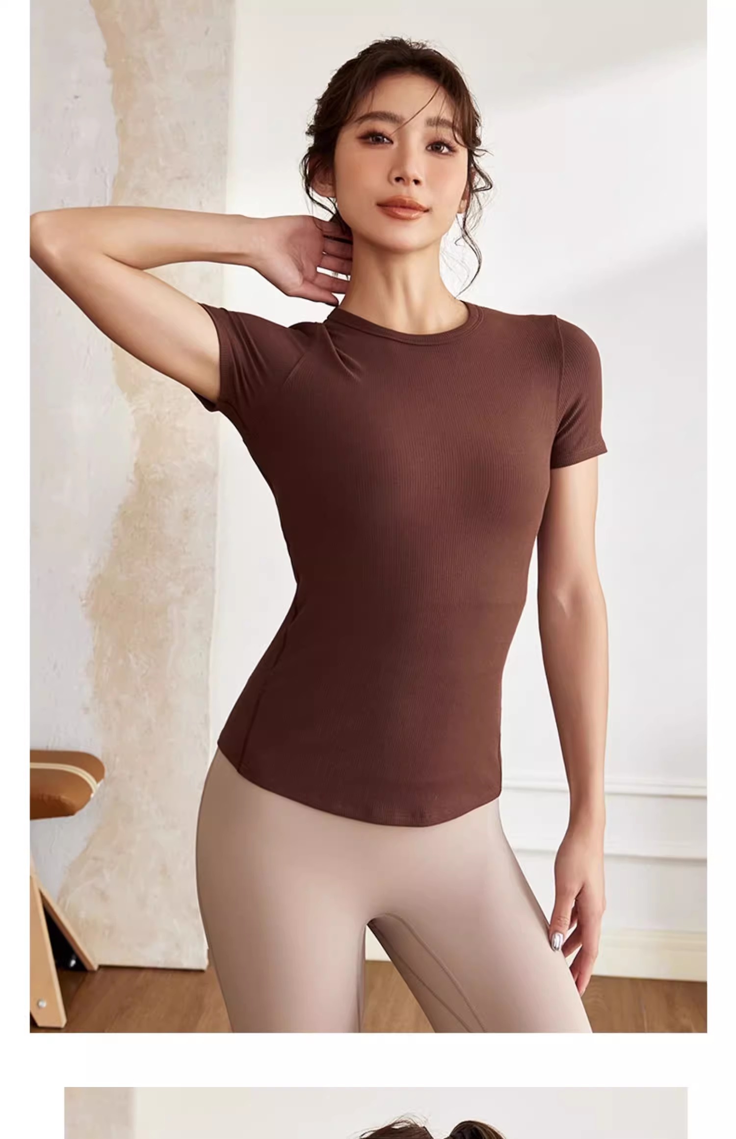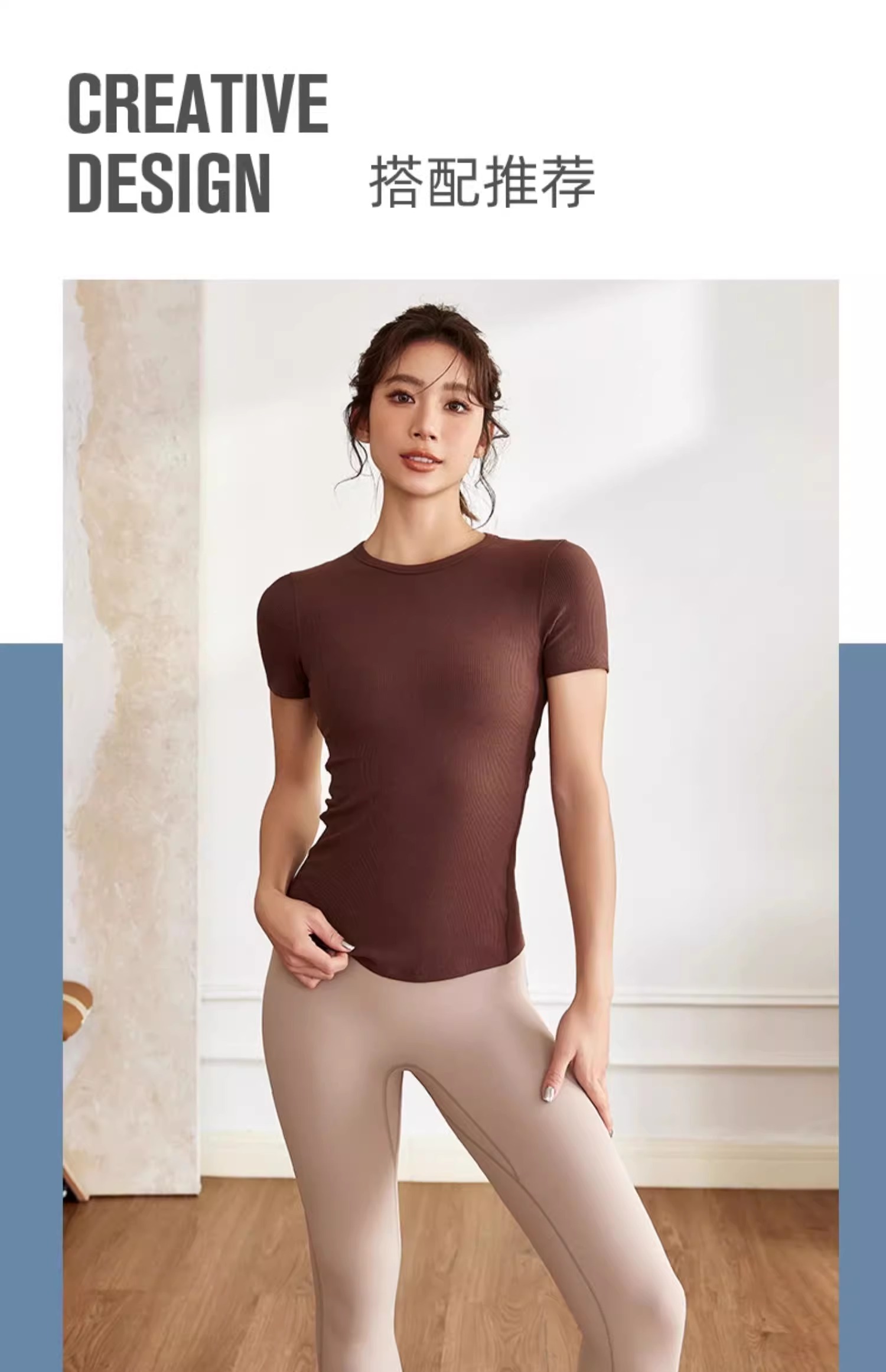 跃牌【周游世界系列】螺纹圆领高弹透气瑜伽服T恤 TP0716