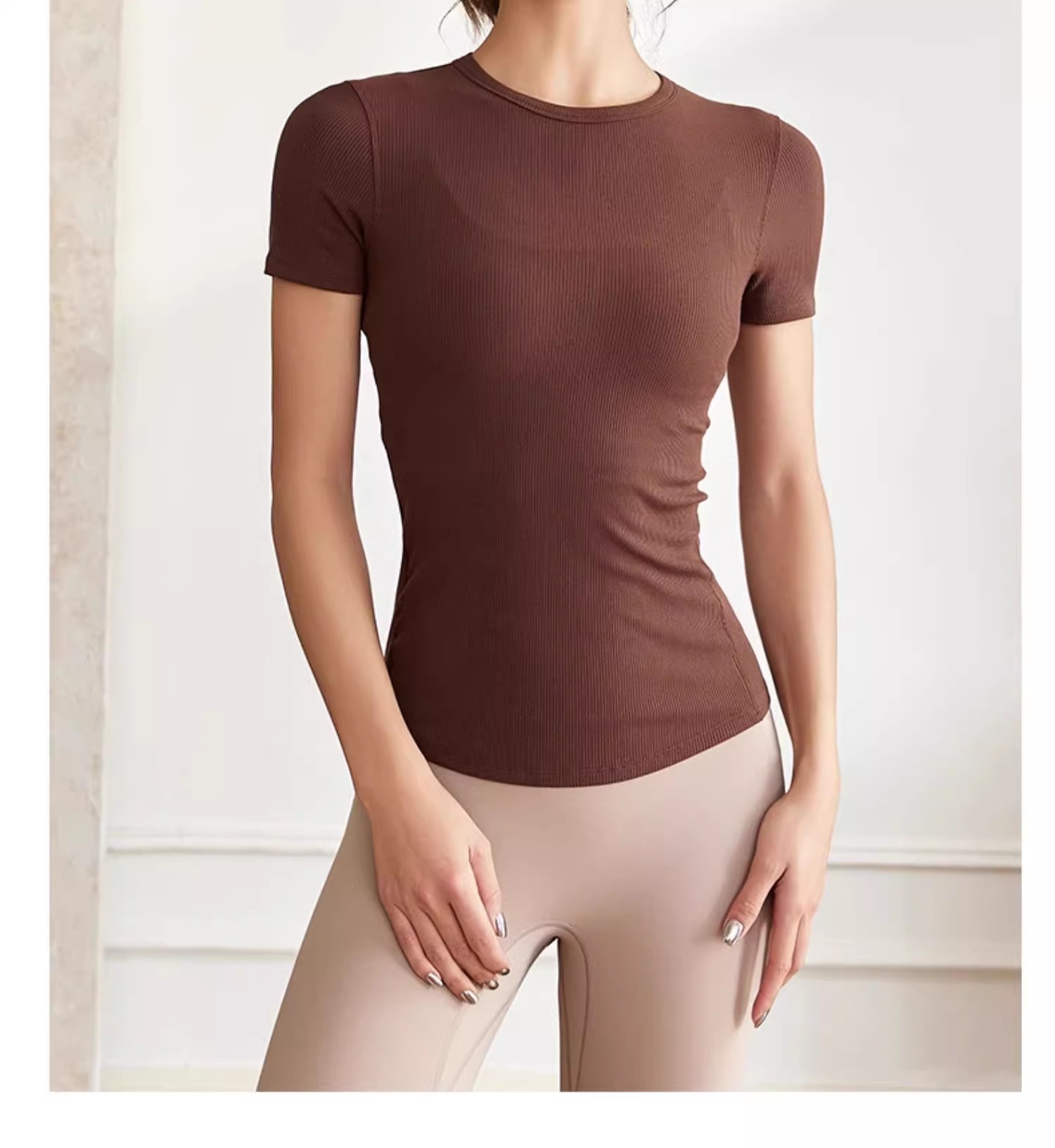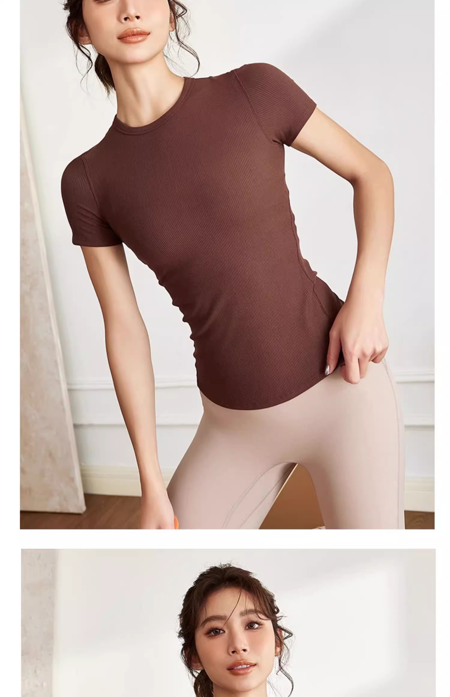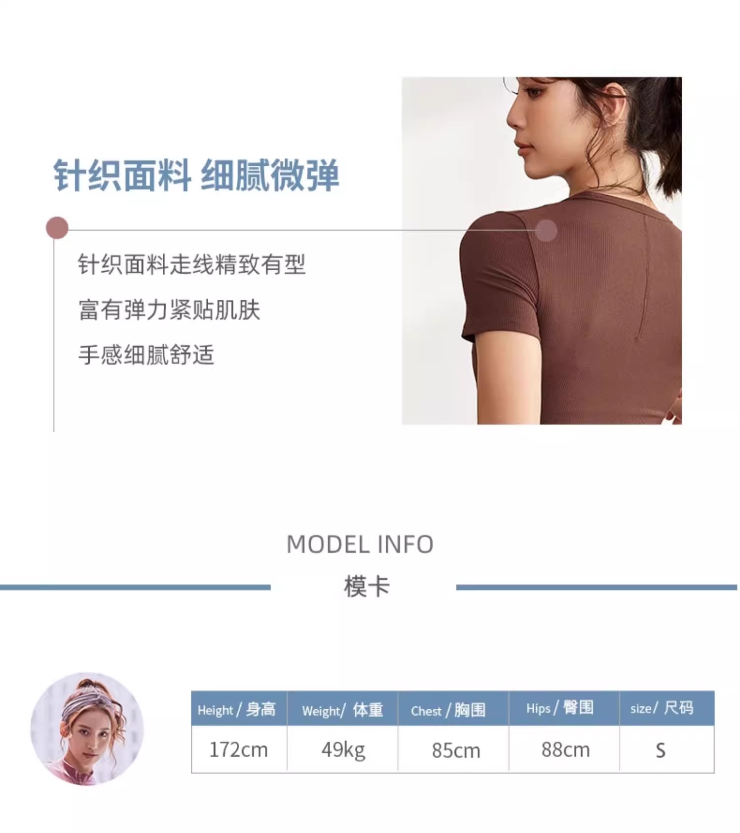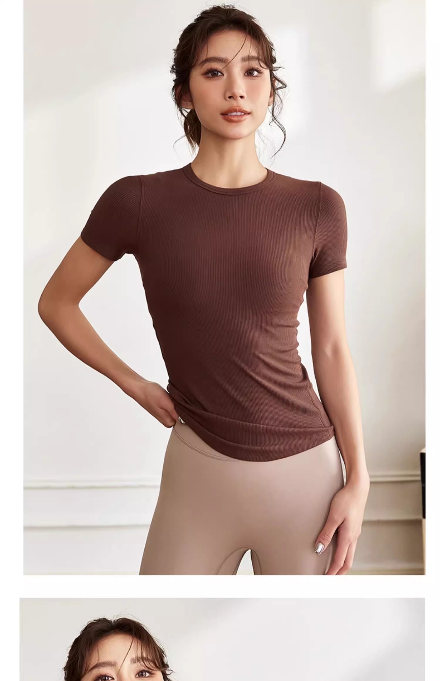 跃牌【周游世界系列】螺纹圆领高弹透气瑜伽服T恤 TP0716