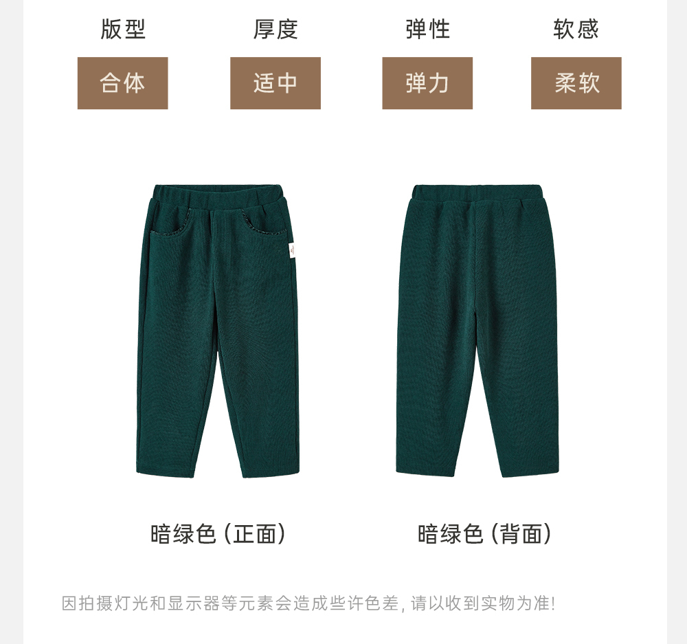 【商场同款】英氏童装灯芯绒裤子秋季女童长裤纯色休闲裤新款