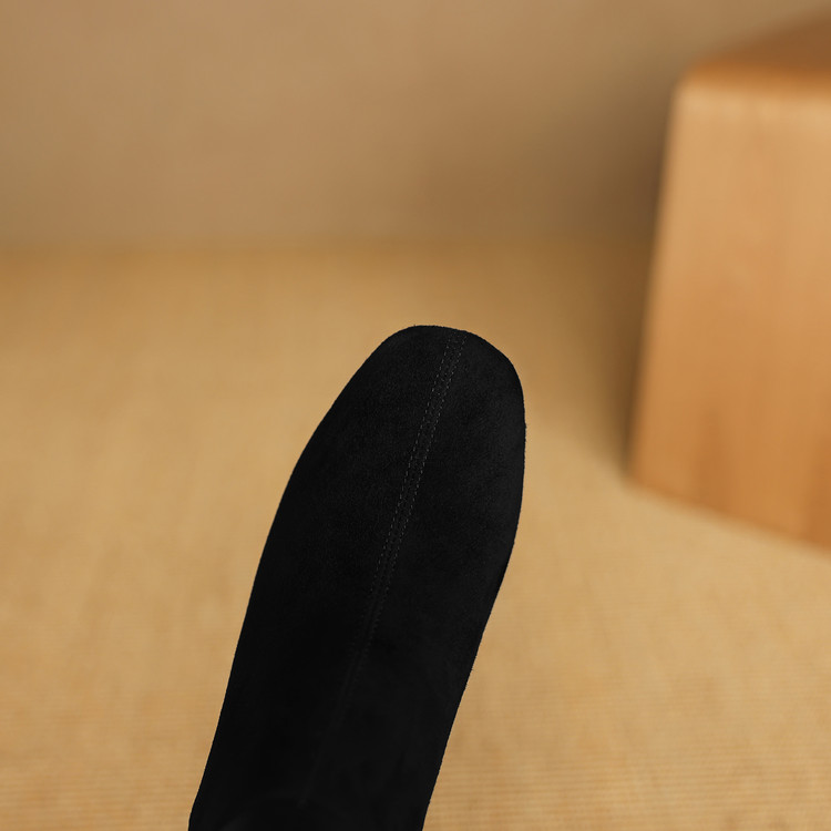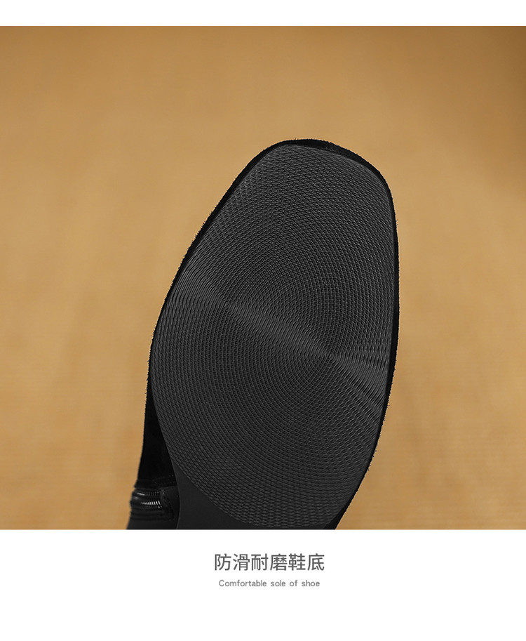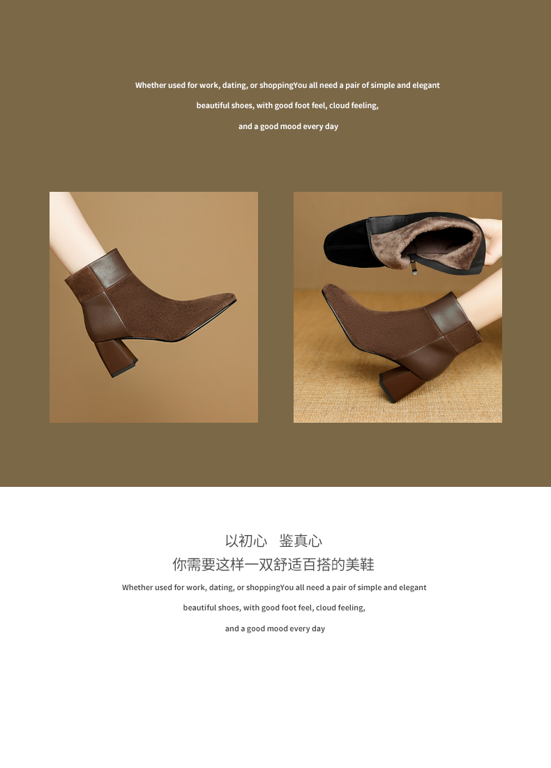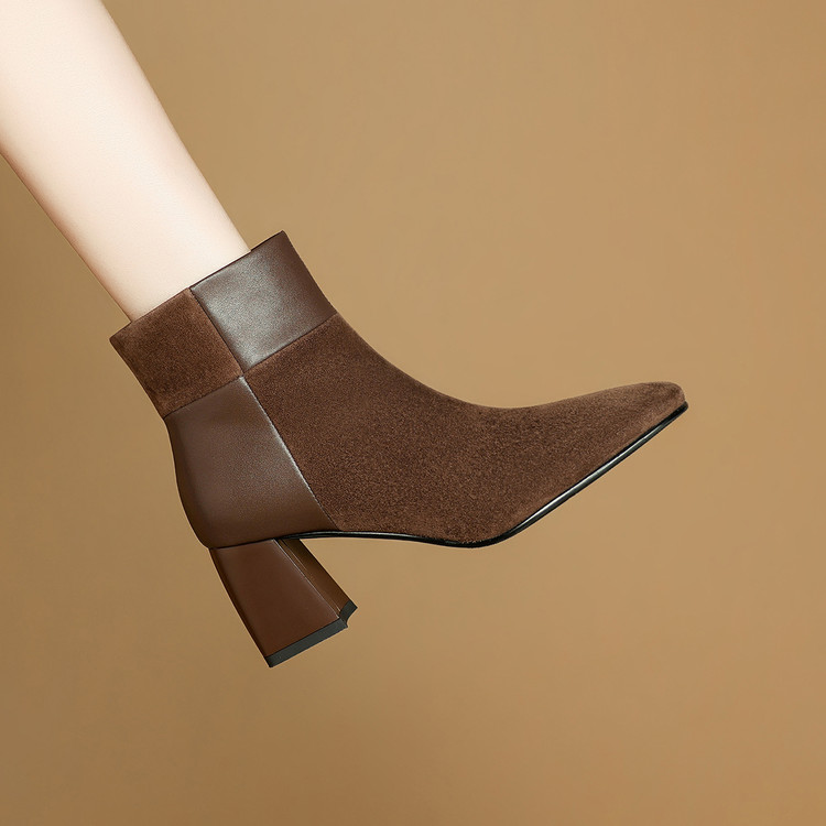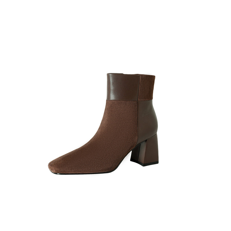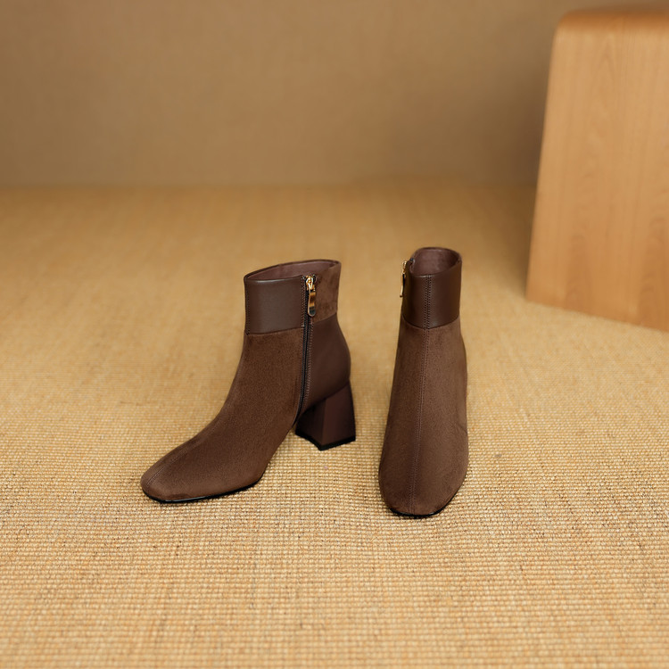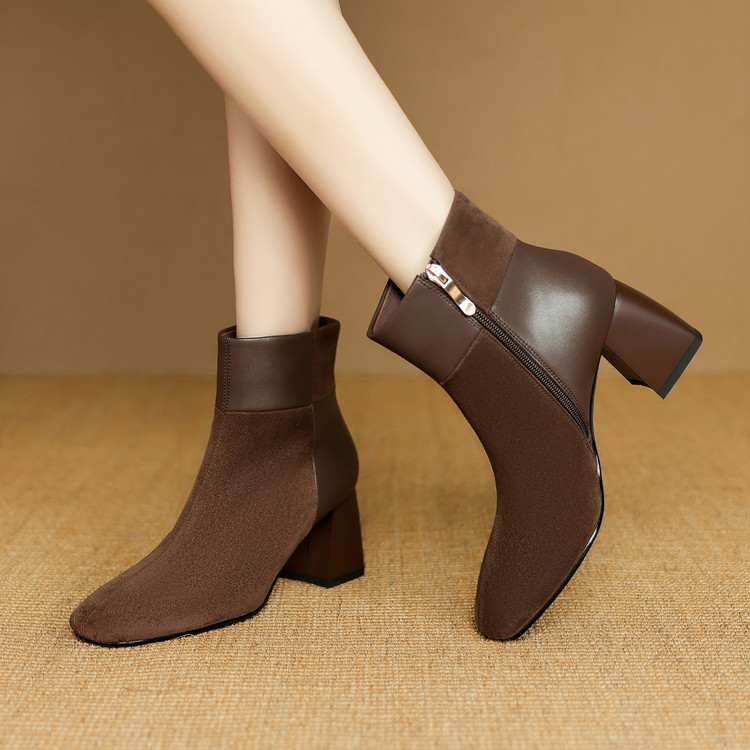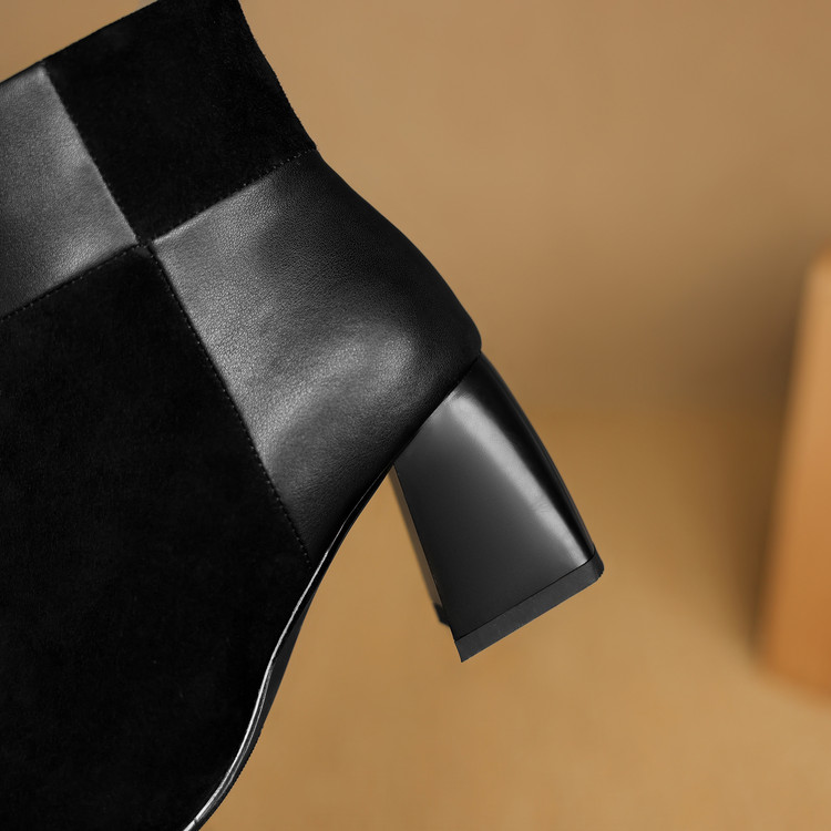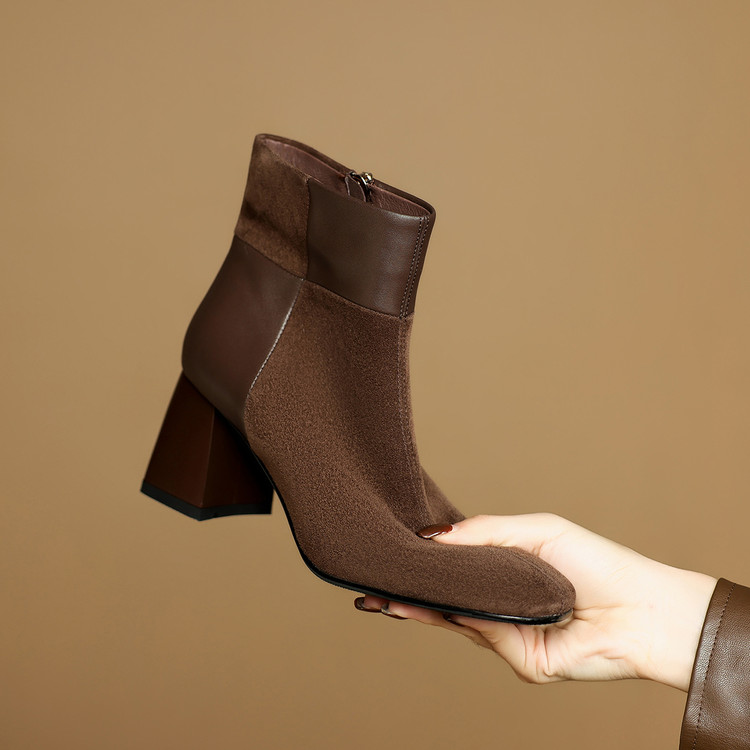 【预售5天】时尚真皮拼接粗跟短靴,方头高跟百搭时装女靴气质马丁靴NJMK&K1791