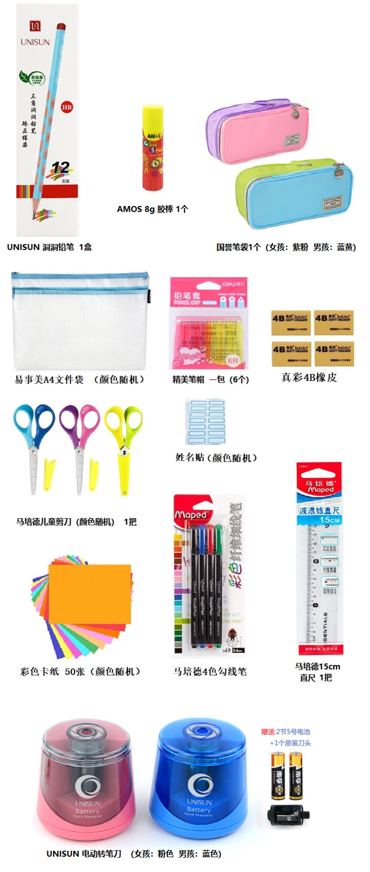 升学文具必备套装 粗杆/细杆文具套装 (送2张姓名贴)