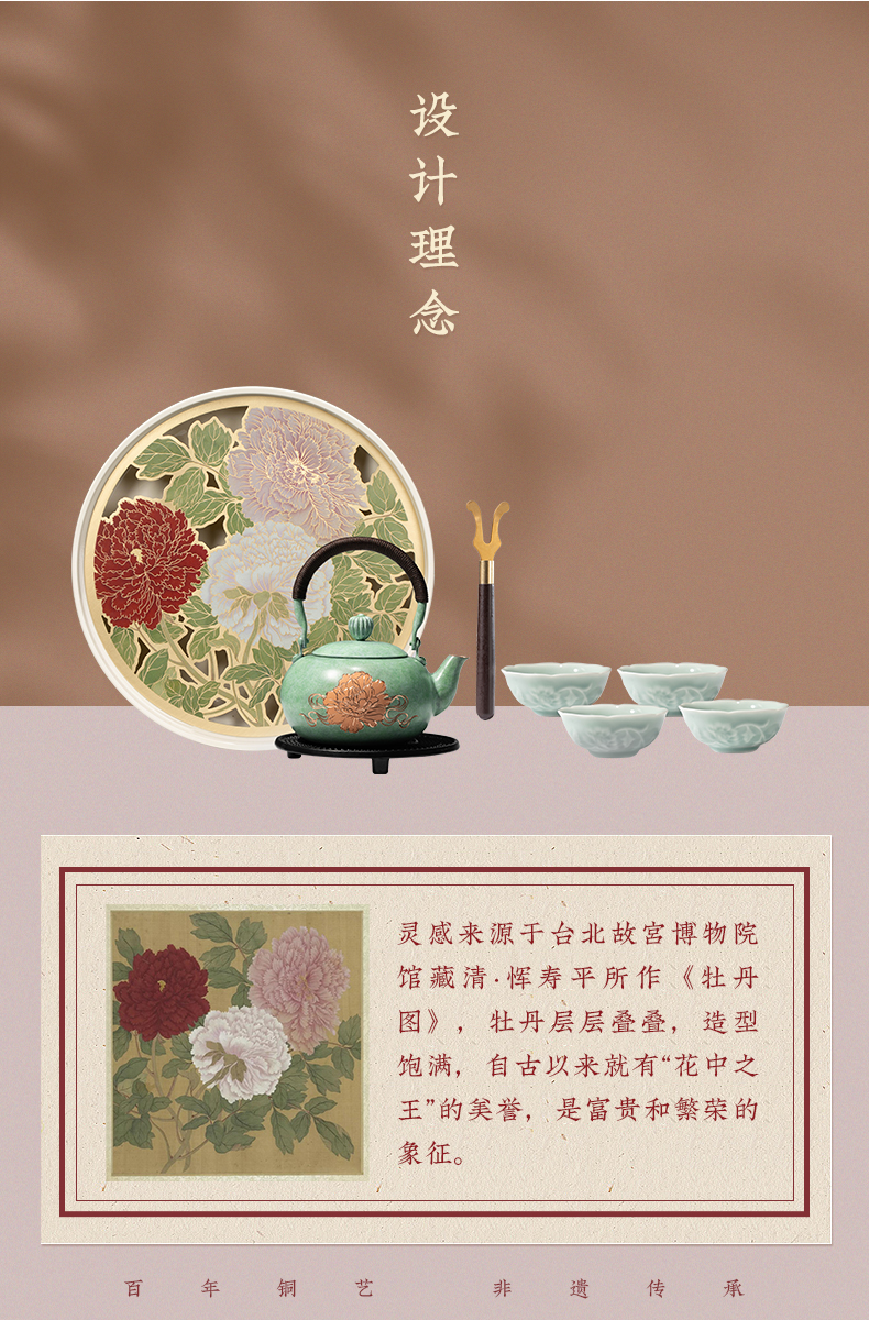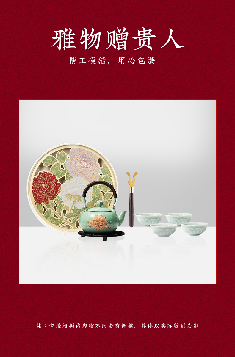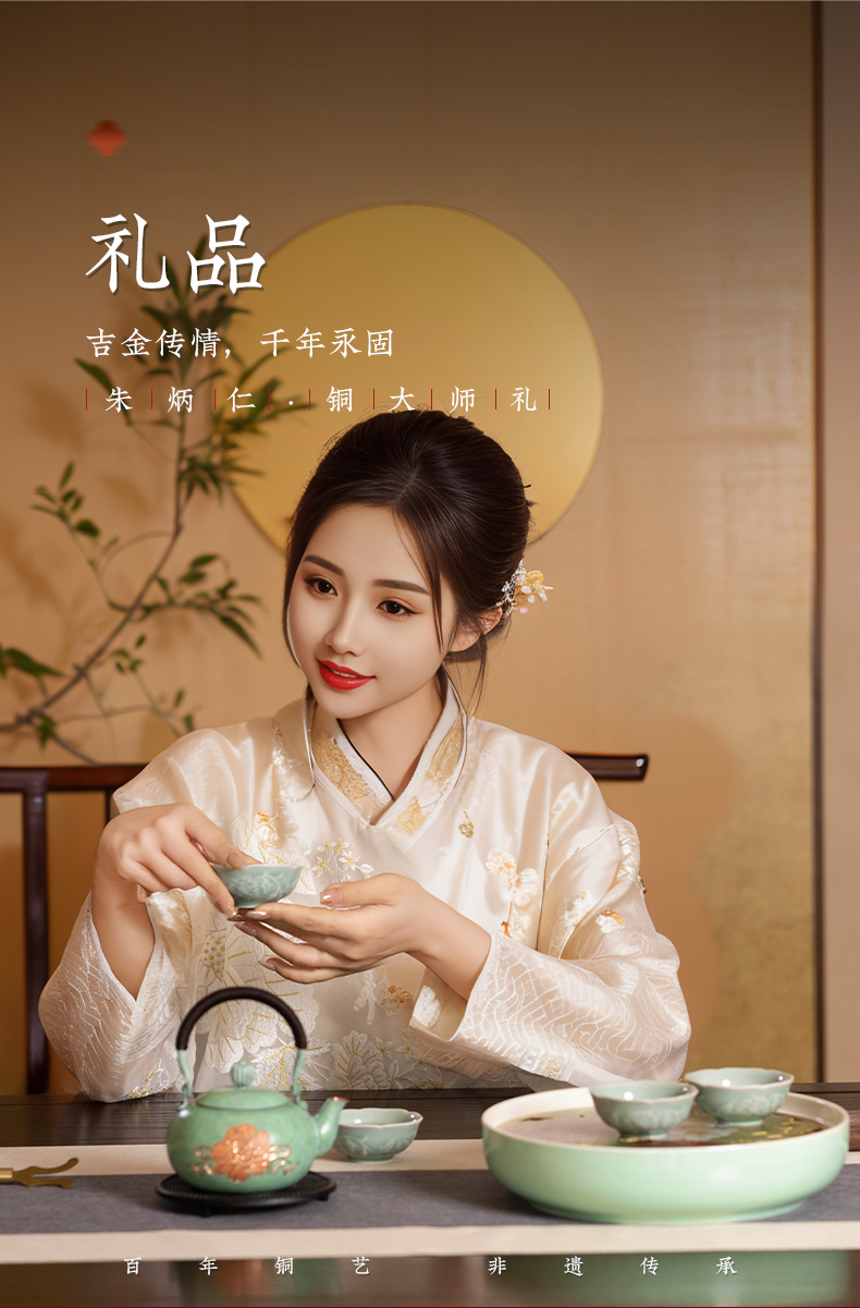 朱炳仁铜 富贵长春茶礼套装功夫茶具新款轻奢高档茶壶送客户礼品