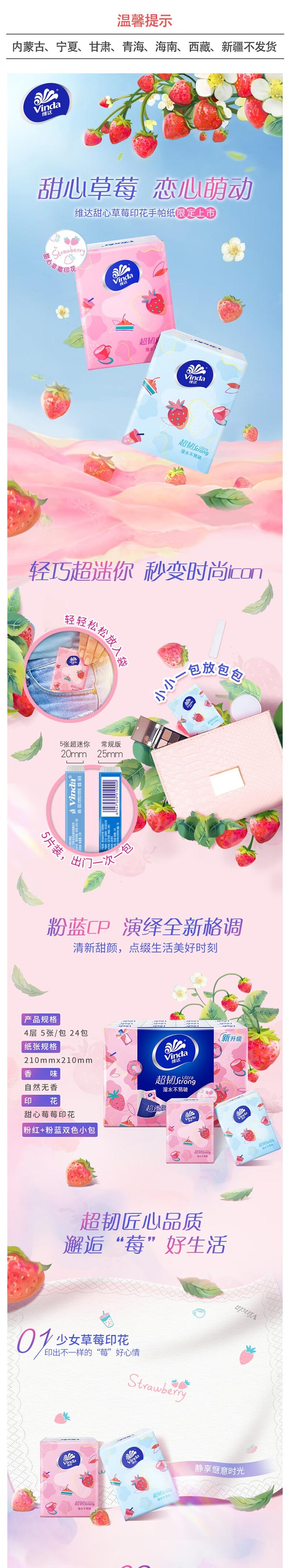 维达 超韧草莓印花手帕纸5张24包*3条 V0135D