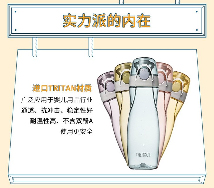 日本膳魔师TCSA-500PK塑料水杯糖果粉500ml水杯