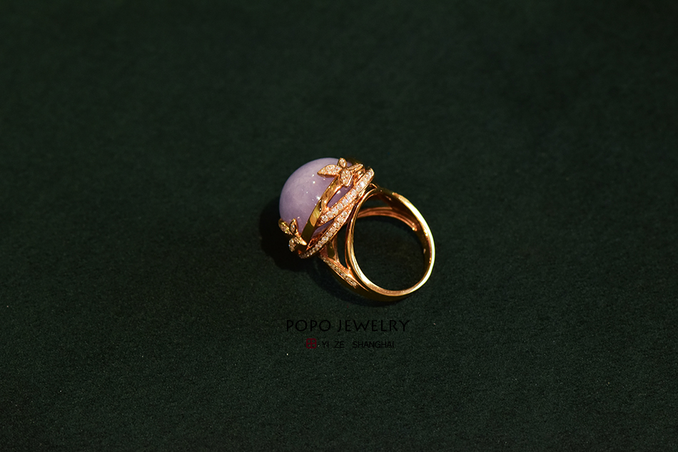 18K玫瑰金翡翠紫翡戒指