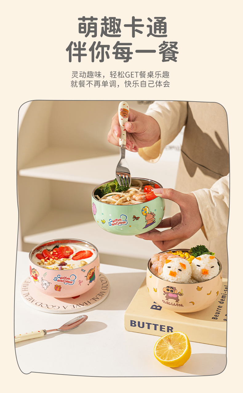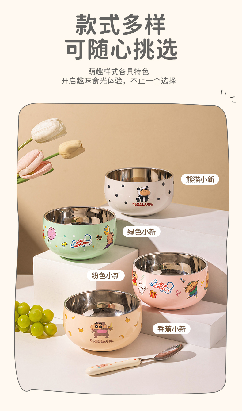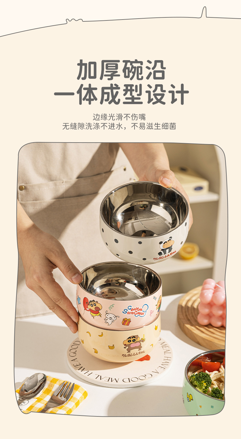 摩登主妇&蜡笔小新儿童饭碗不锈钢辅食碗吃饭专用餐具宝宝碗
