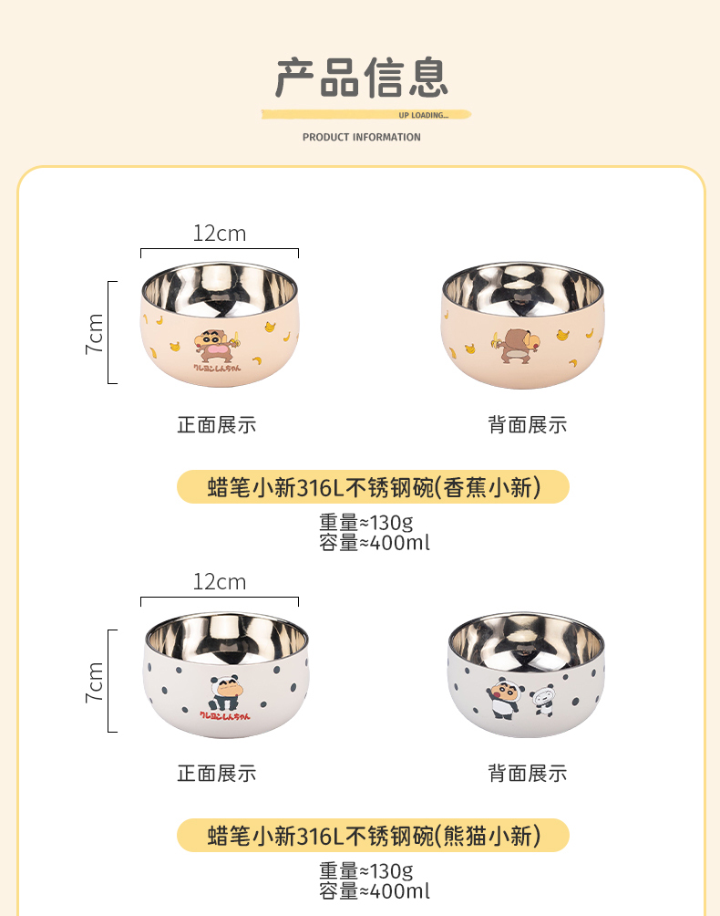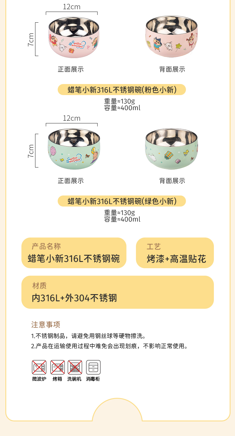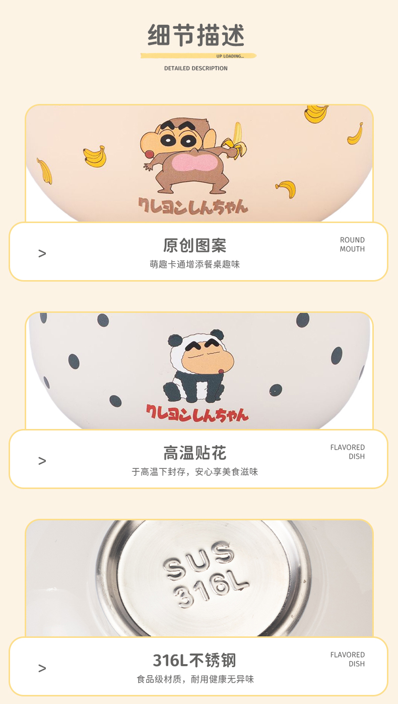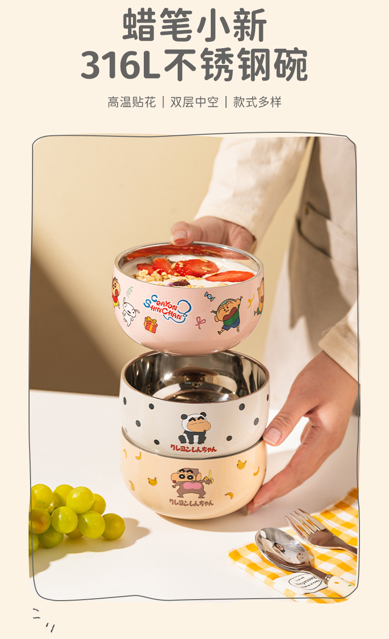 摩登主妇&蜡笔小新儿童饭碗不锈钢辅食碗吃饭专用餐具宝宝碗