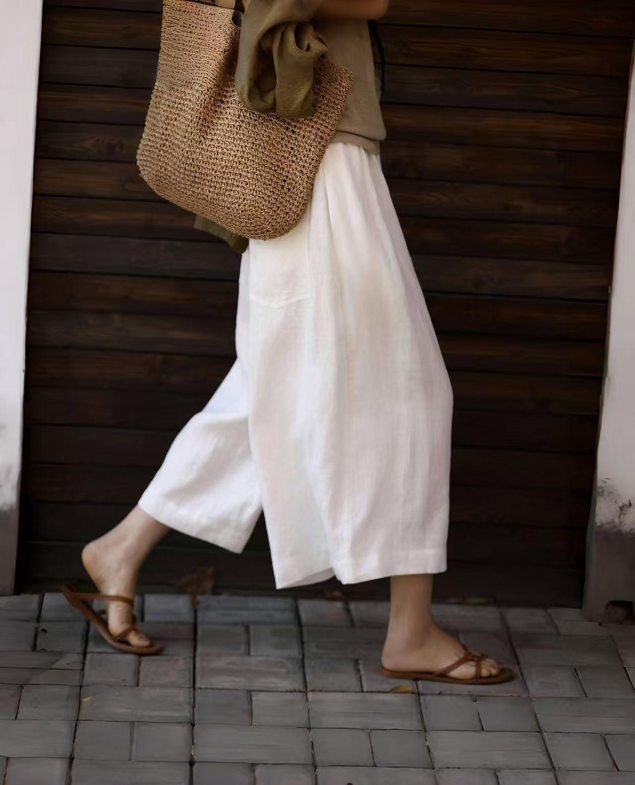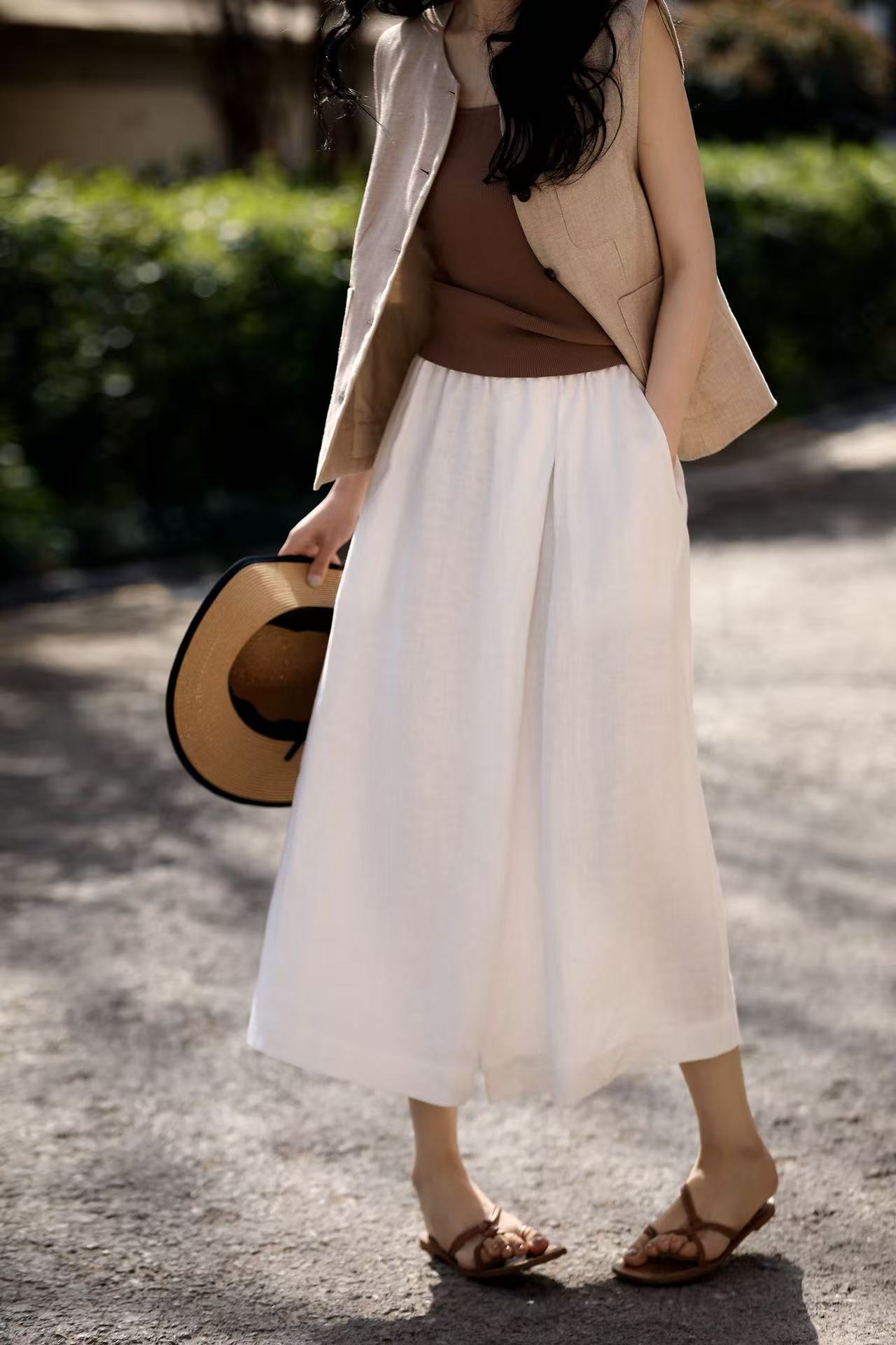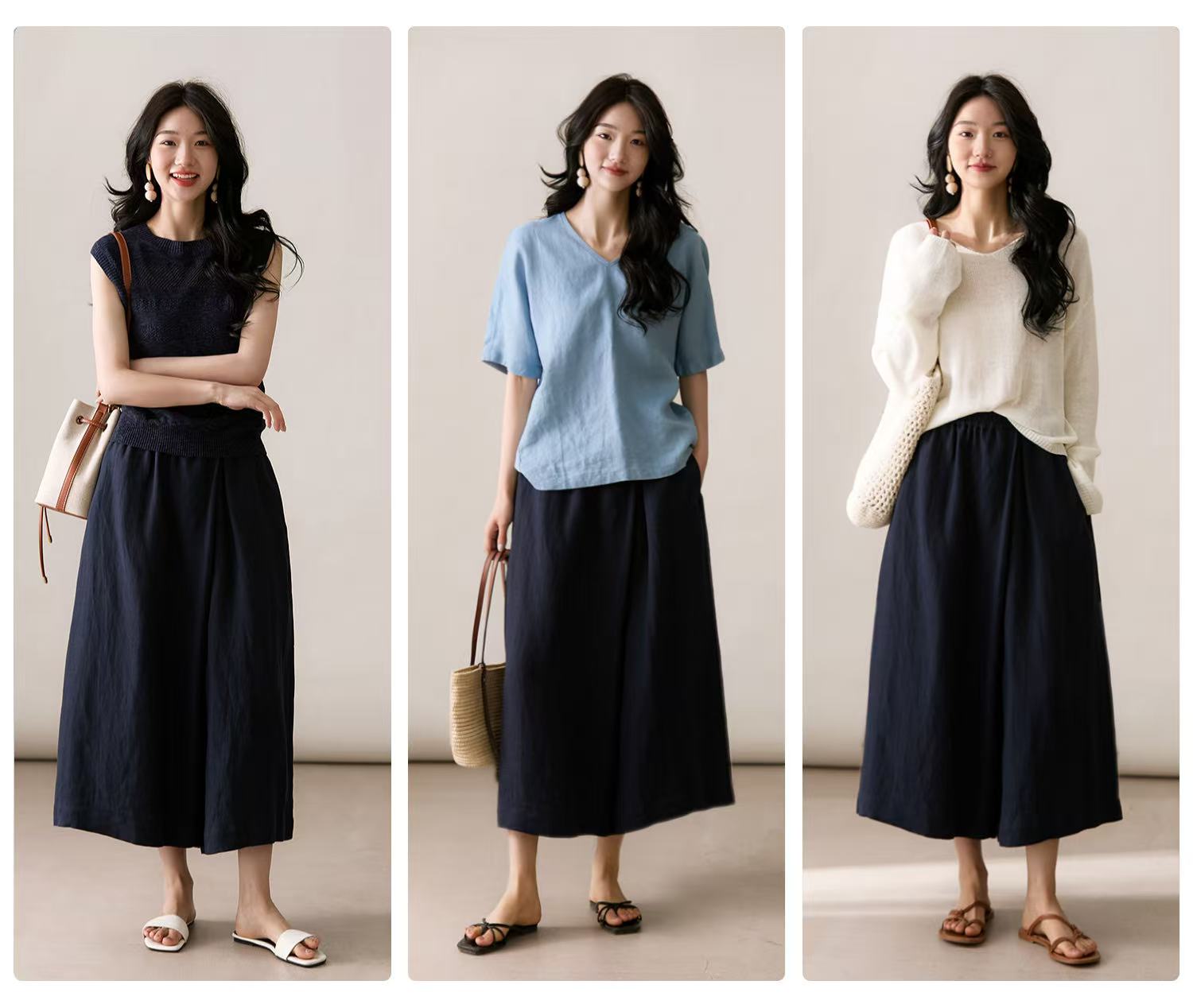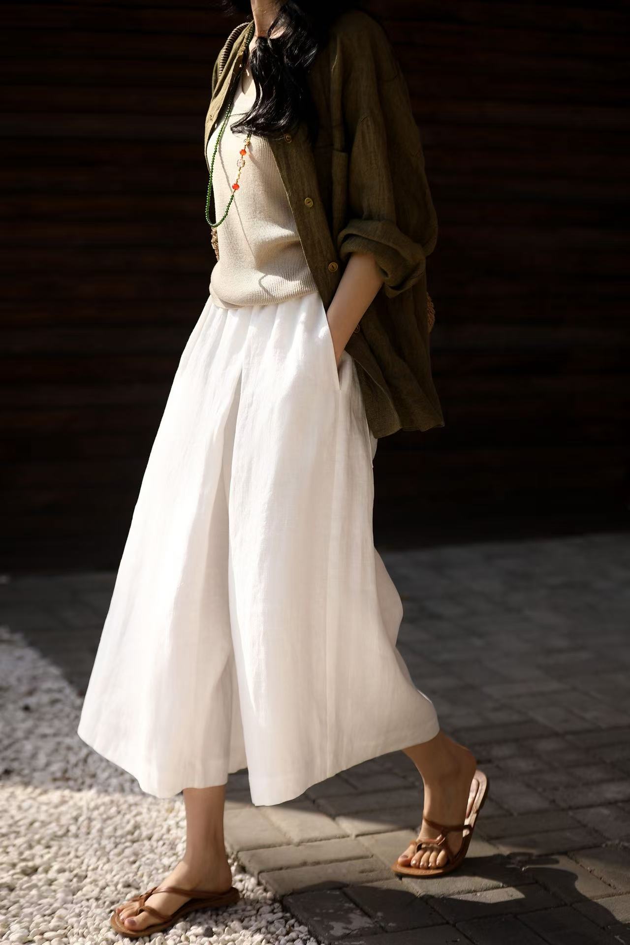 【汉麻阔腿九分裙裤】会呼吸的汉麻 天然汉麻面料,垂顺不贴腿,自带抑菌防臭效果,吸湿透气,有效调节体感温度