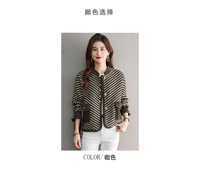 CC 小香风立领条纹毛呢短外套针织上衣显瘦