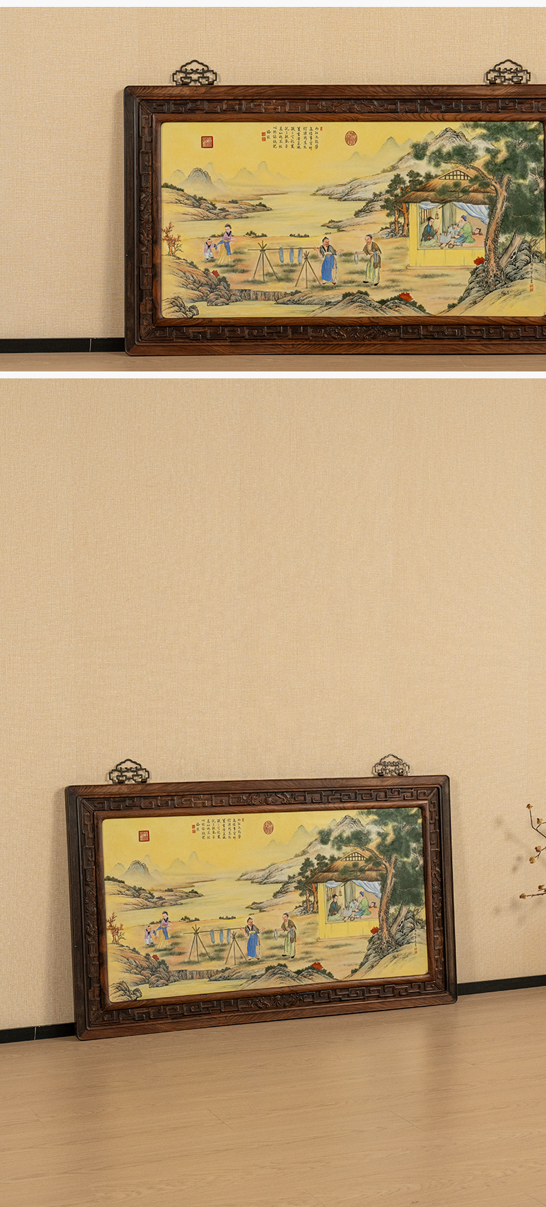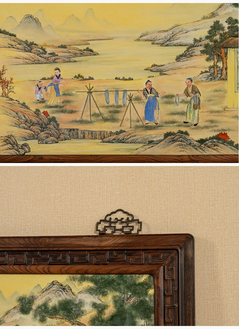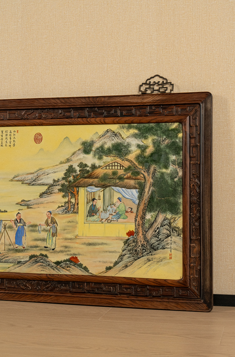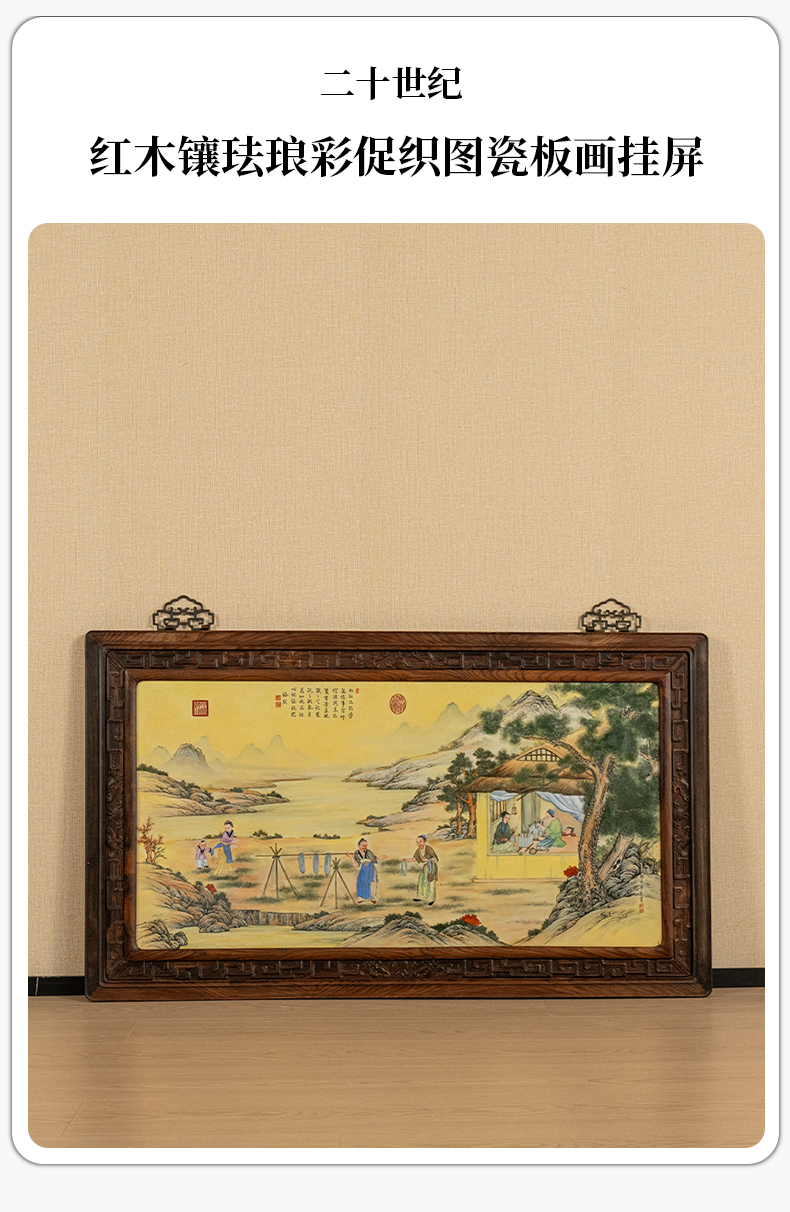 二十世纪 红木镶珐琅彩促织图瓷板画挂屏