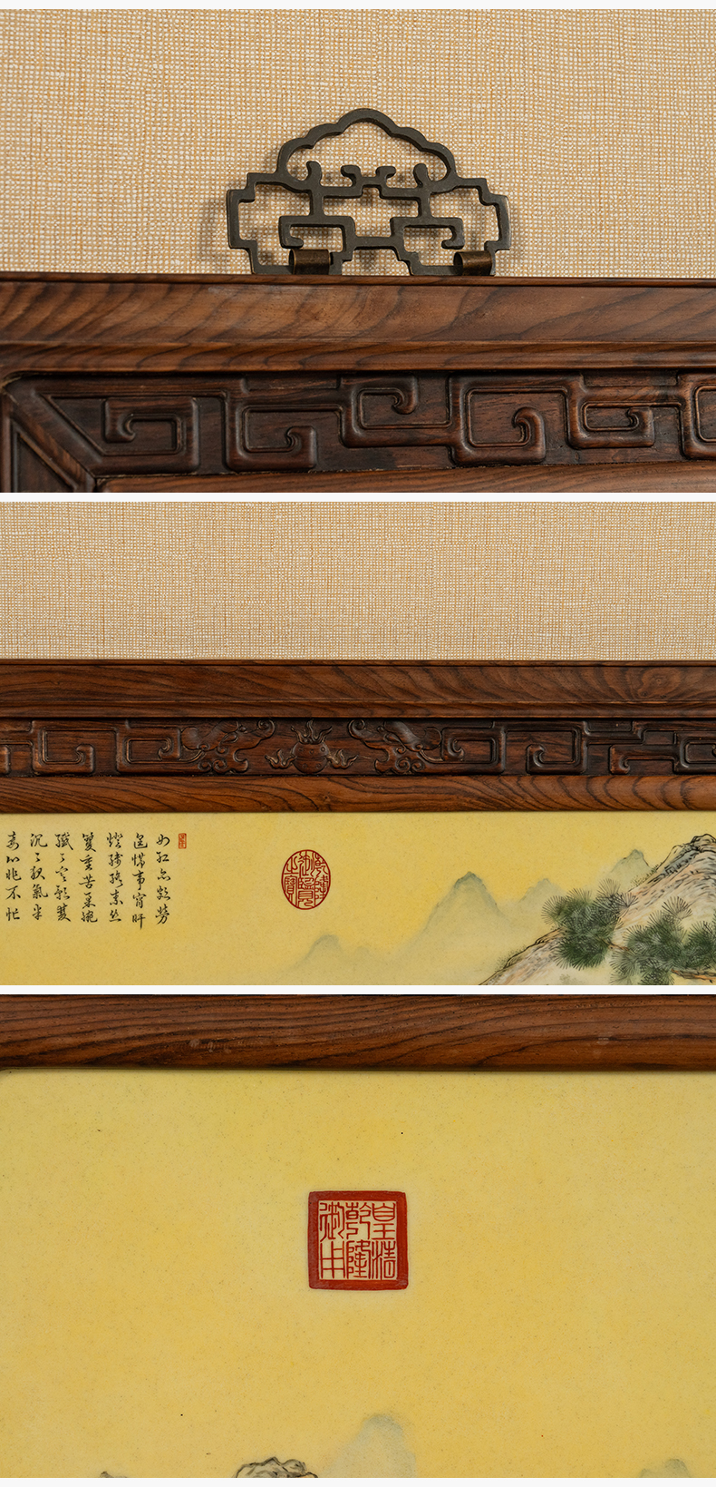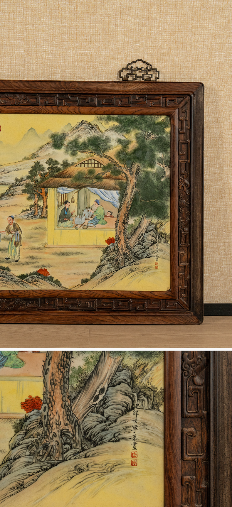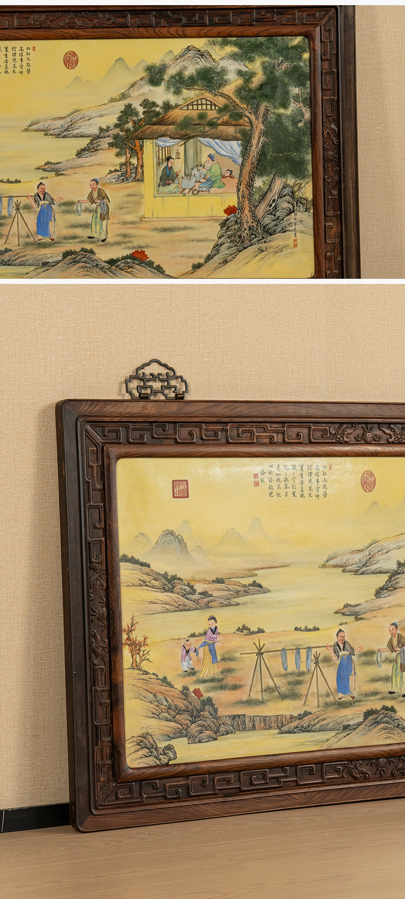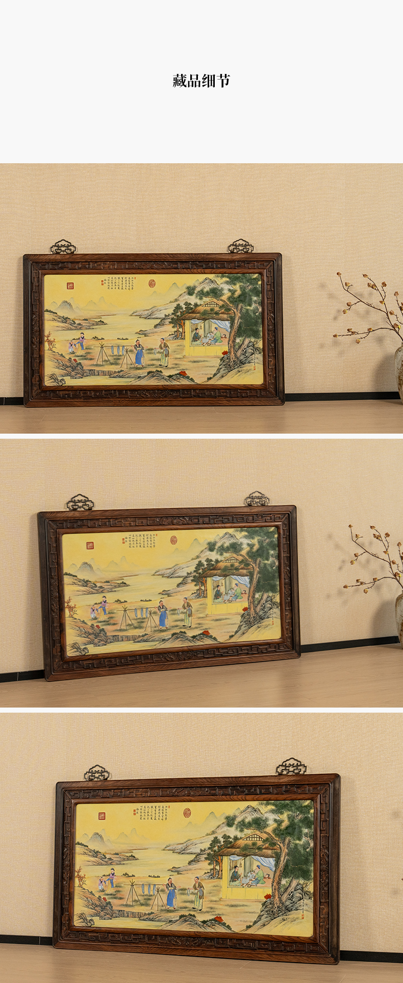 二十世纪 红木镶珐琅彩促织图瓷板画挂屏