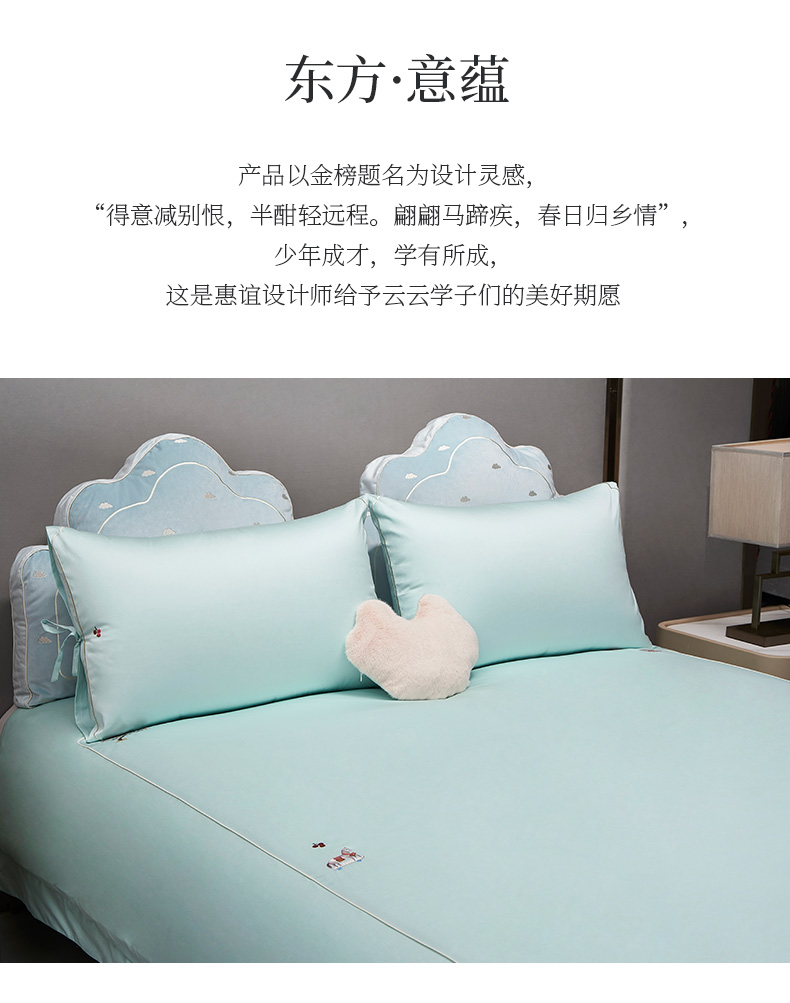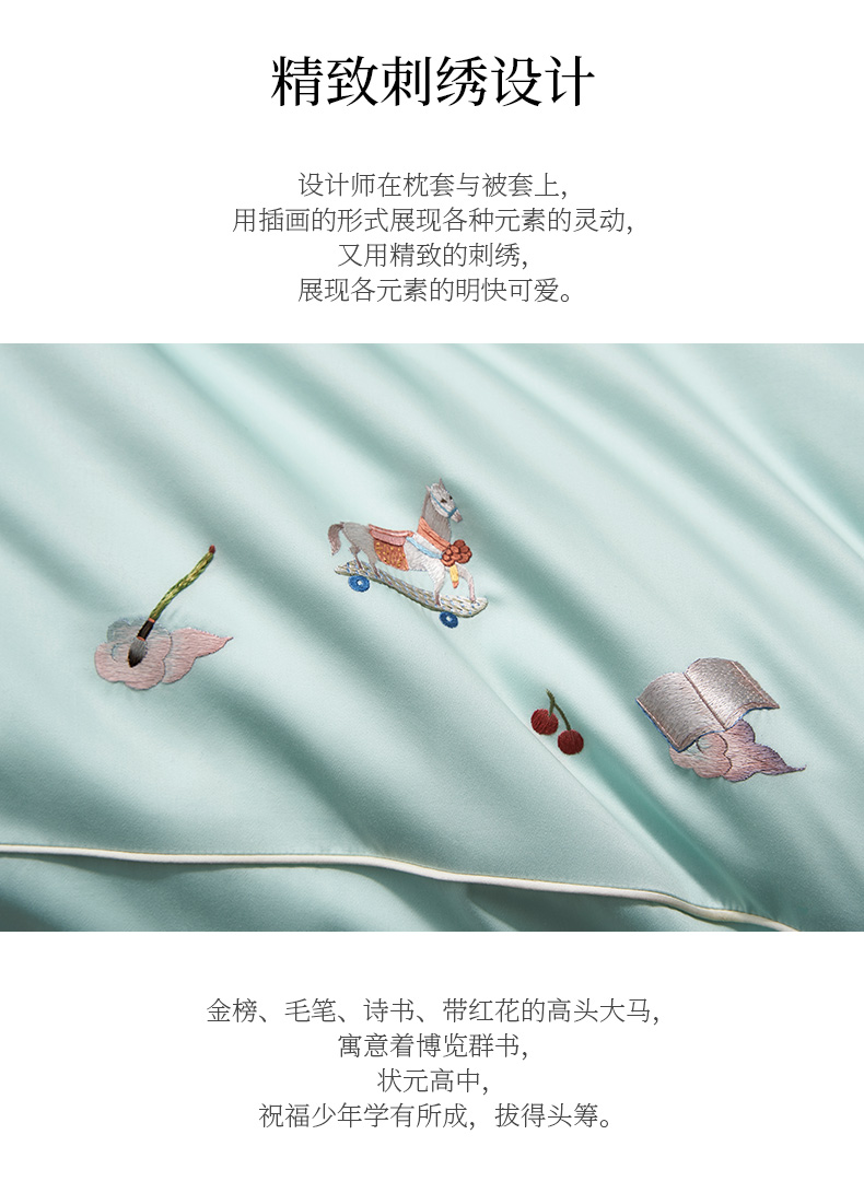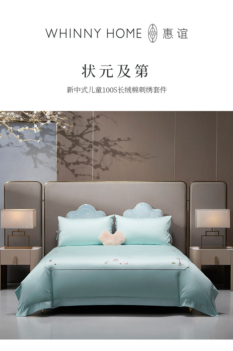 whinny/惠谊 现代中式100S长绒棉全棉刺绣儿童三/四件套 状元及第