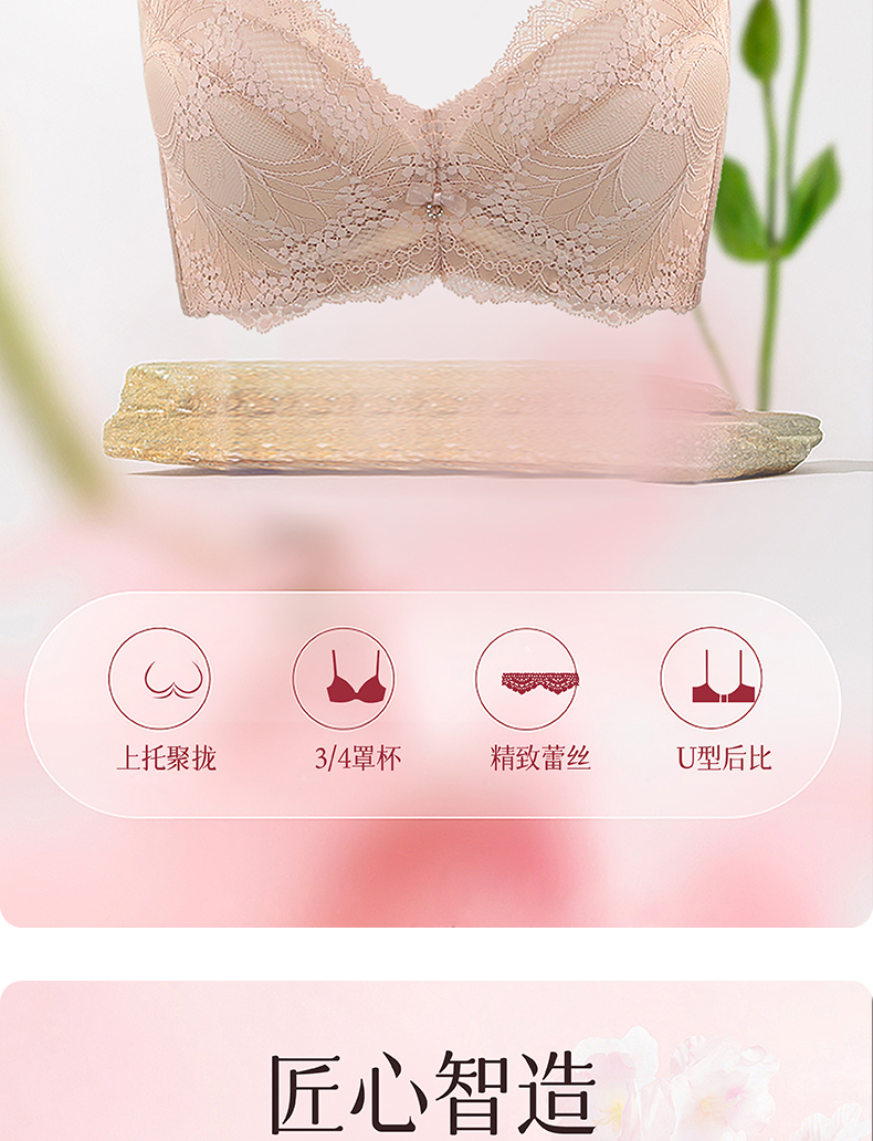 贝佳人薄杯文胸3/4杯舒适无钢圈上托聚拢稳固内衣女BW952008