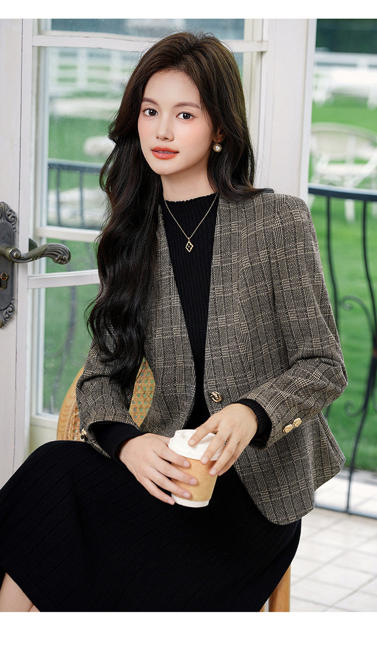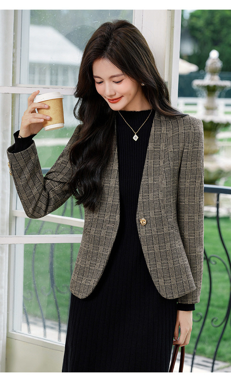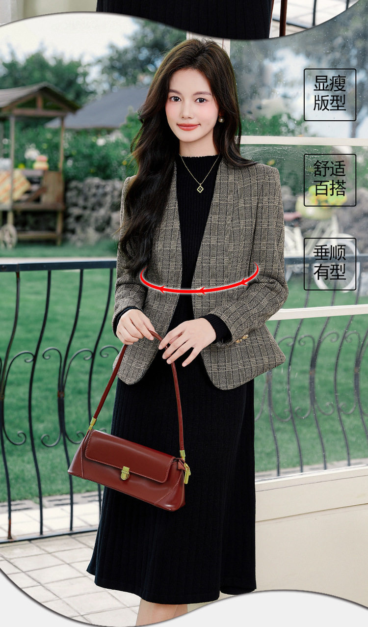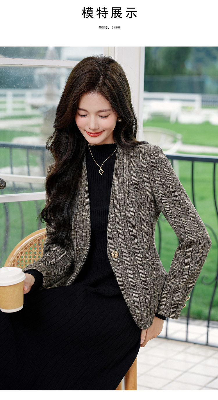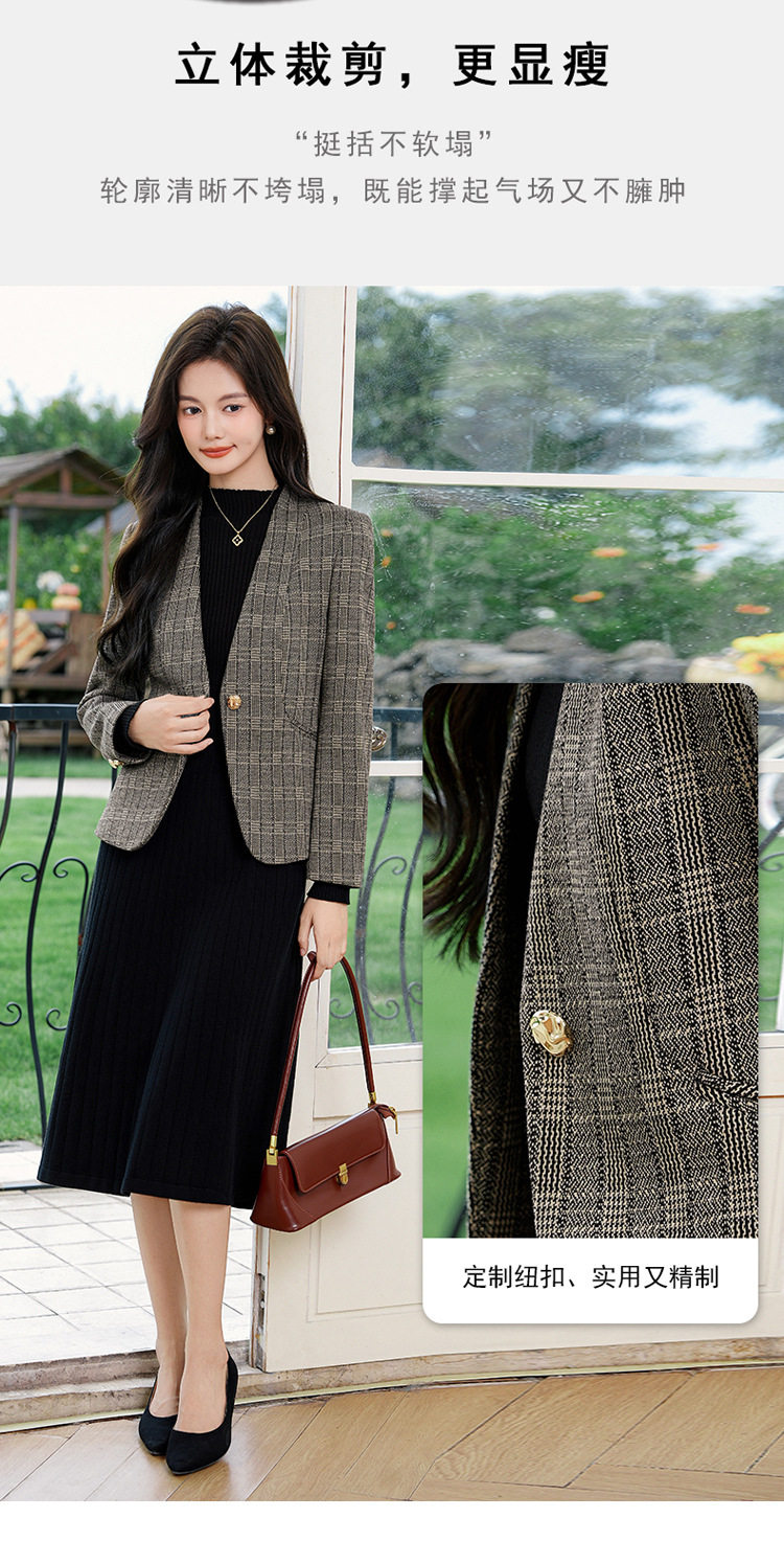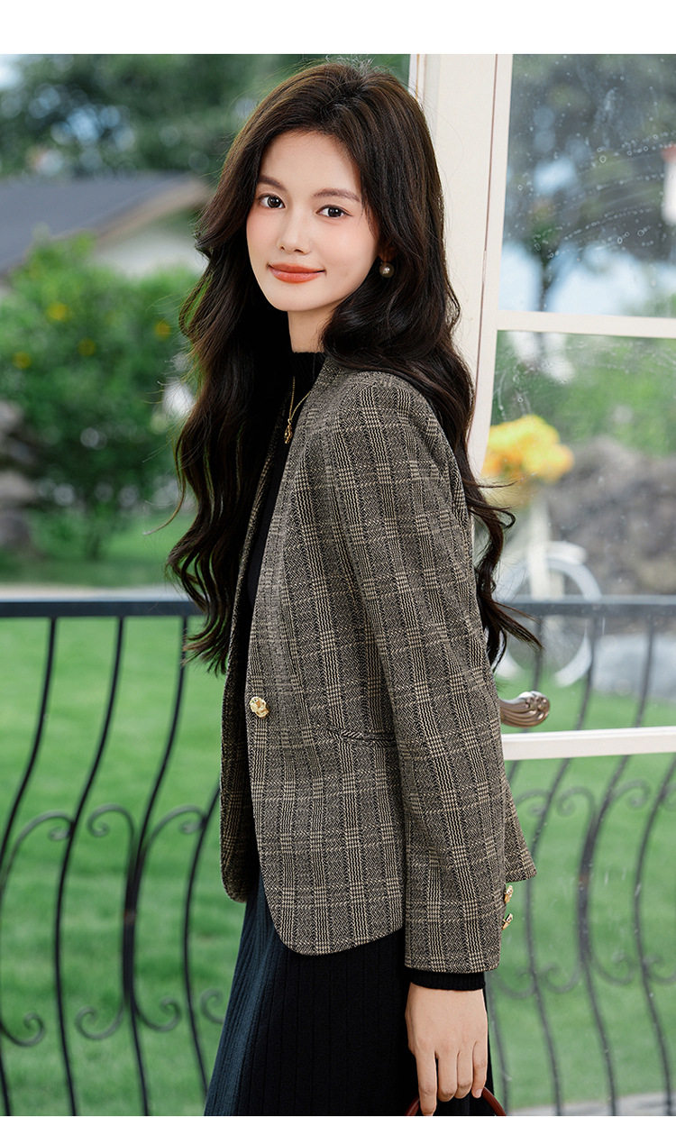 「自」全新升级【铂金会员174/天猫229/差价55】(53648)洛诗琳气质通勤格纹西装2026春秋新款收腰无领短外套