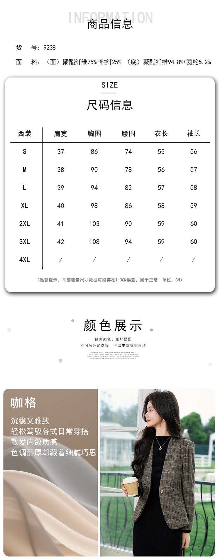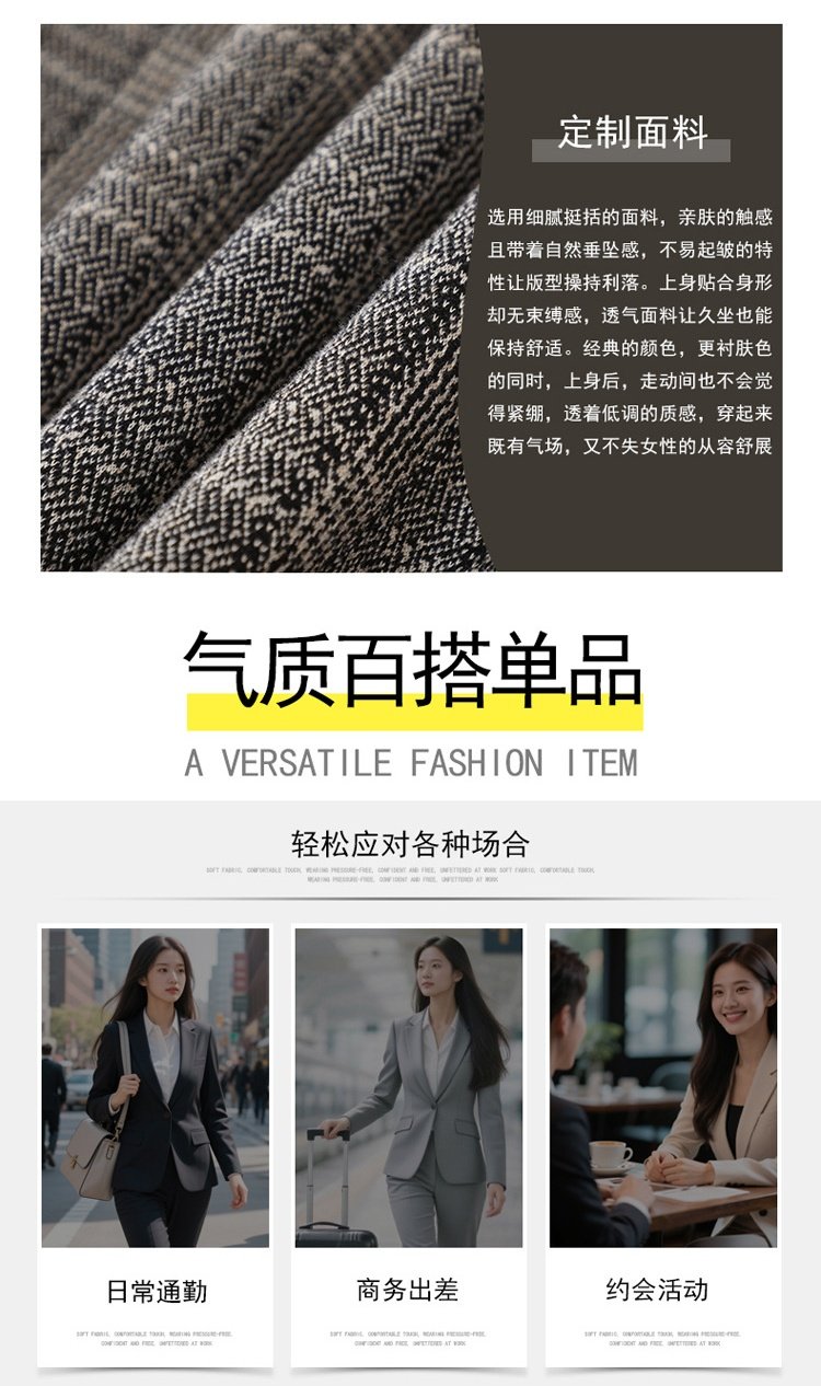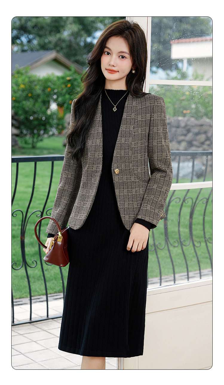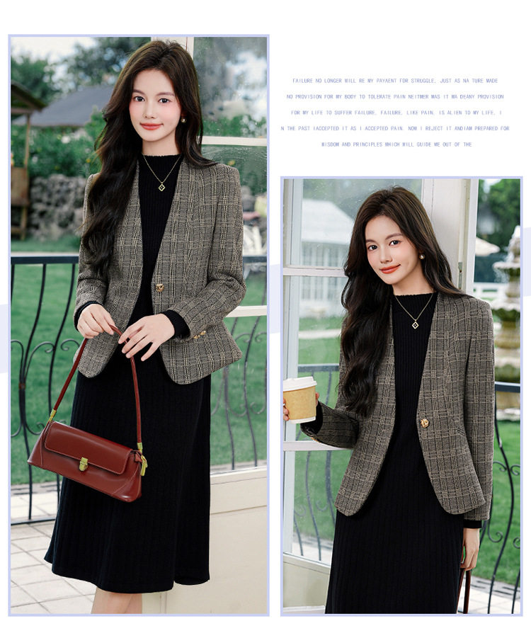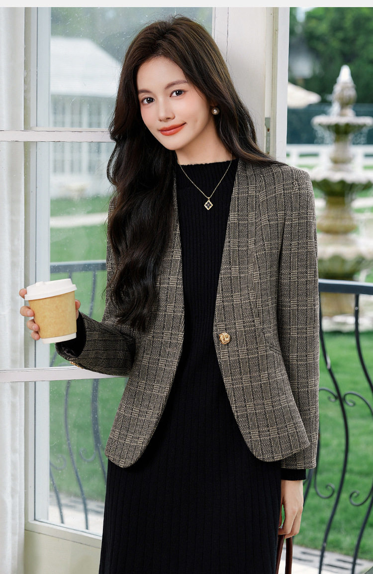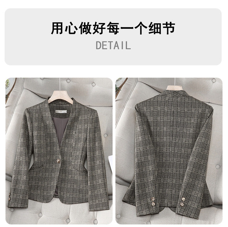 「自」全新升级【铂金会员174/天猫229/差价55】(53648)洛诗琳气质通勤格纹西装2026春秋新款收腰无领短外套