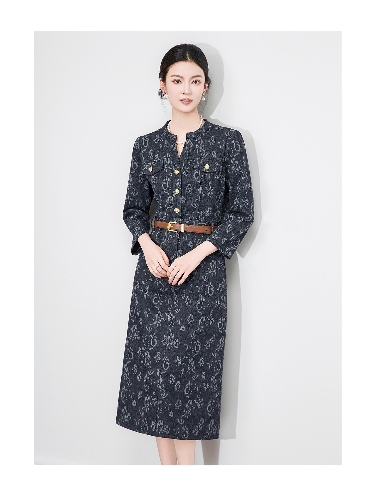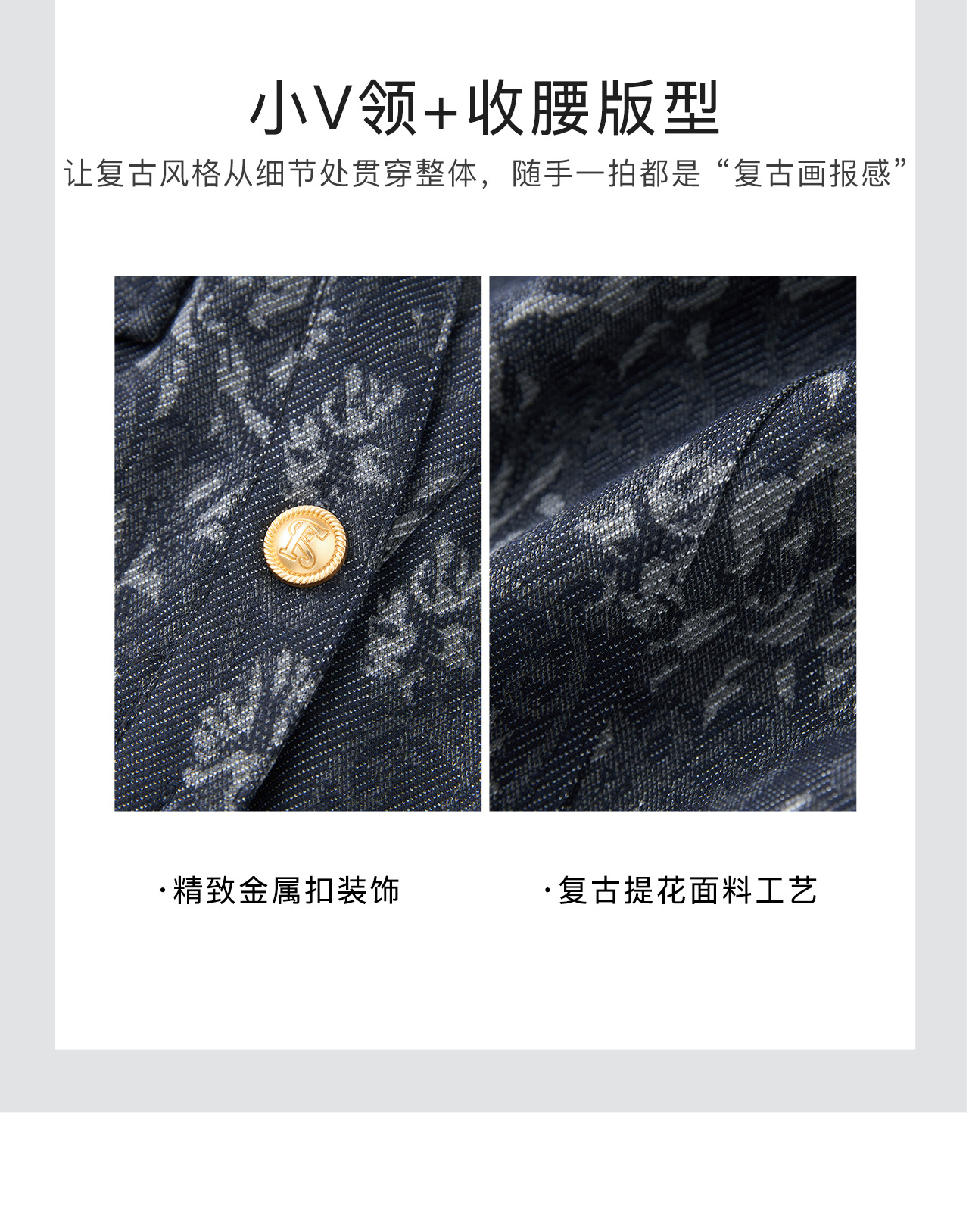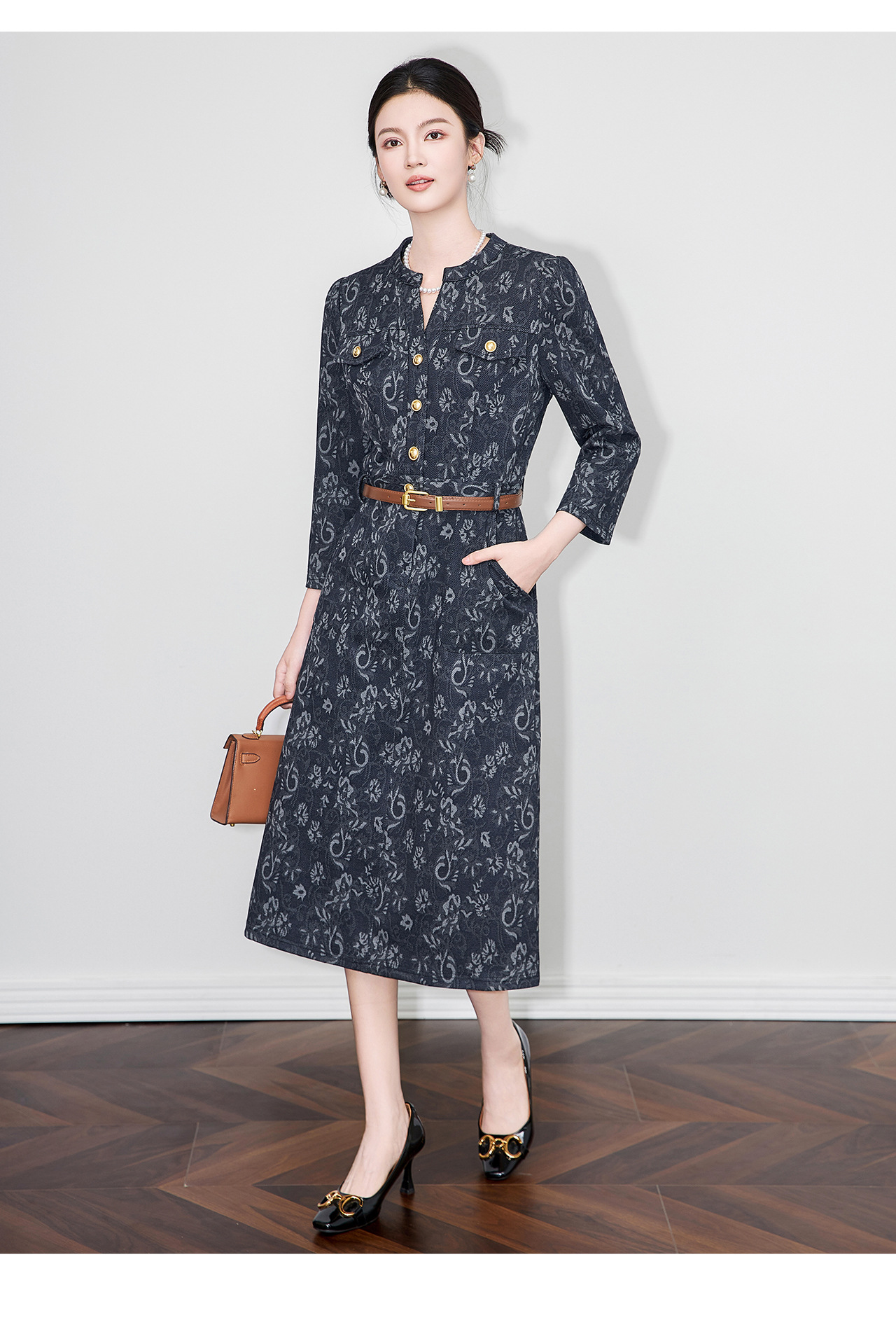 「高货wl」全新升级【铂金会员349/天猫469/差价120】(80738)洛诗琳气质复古衬衫牛仔裙2025秋冬修身显瘦印花连衣裙