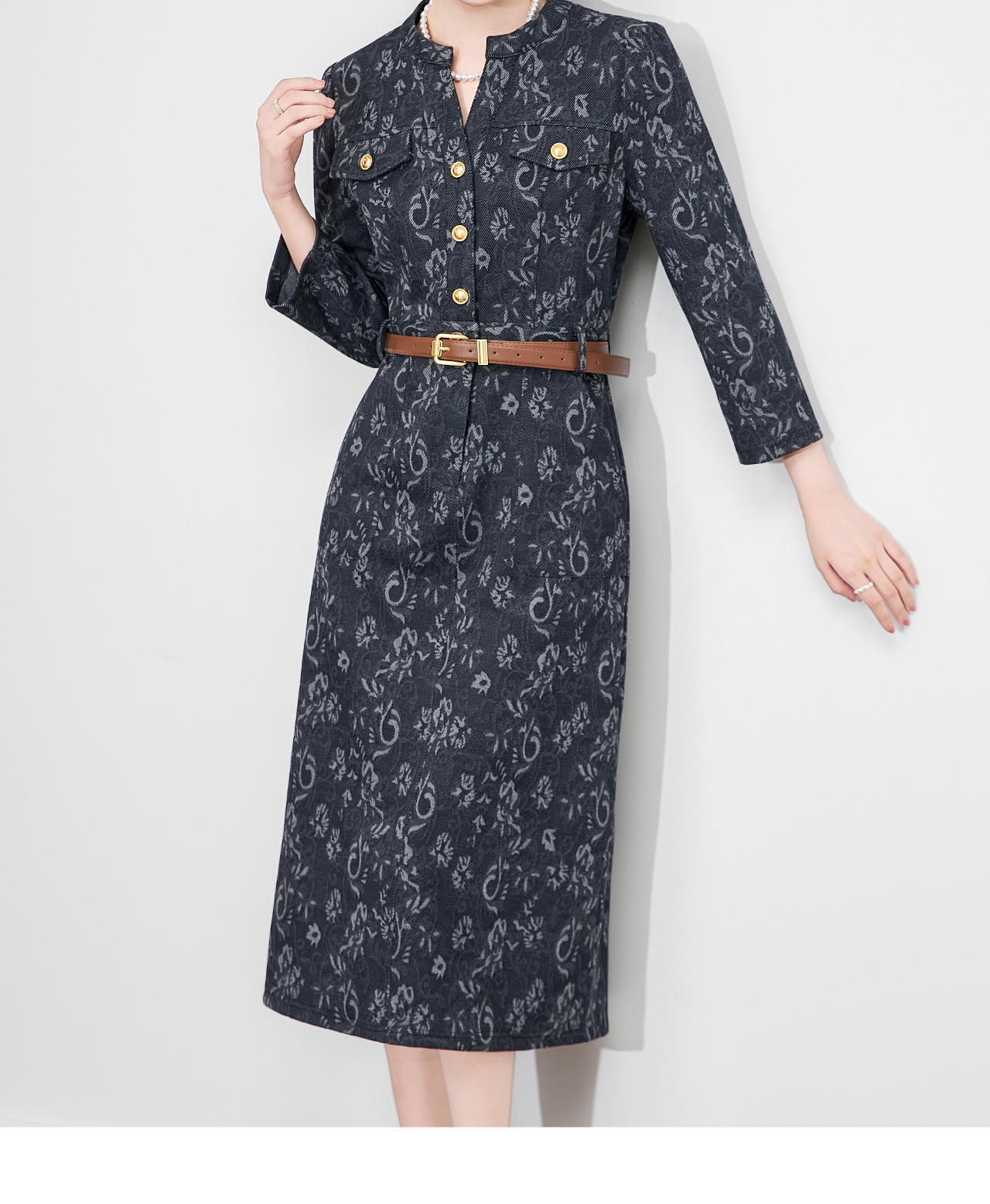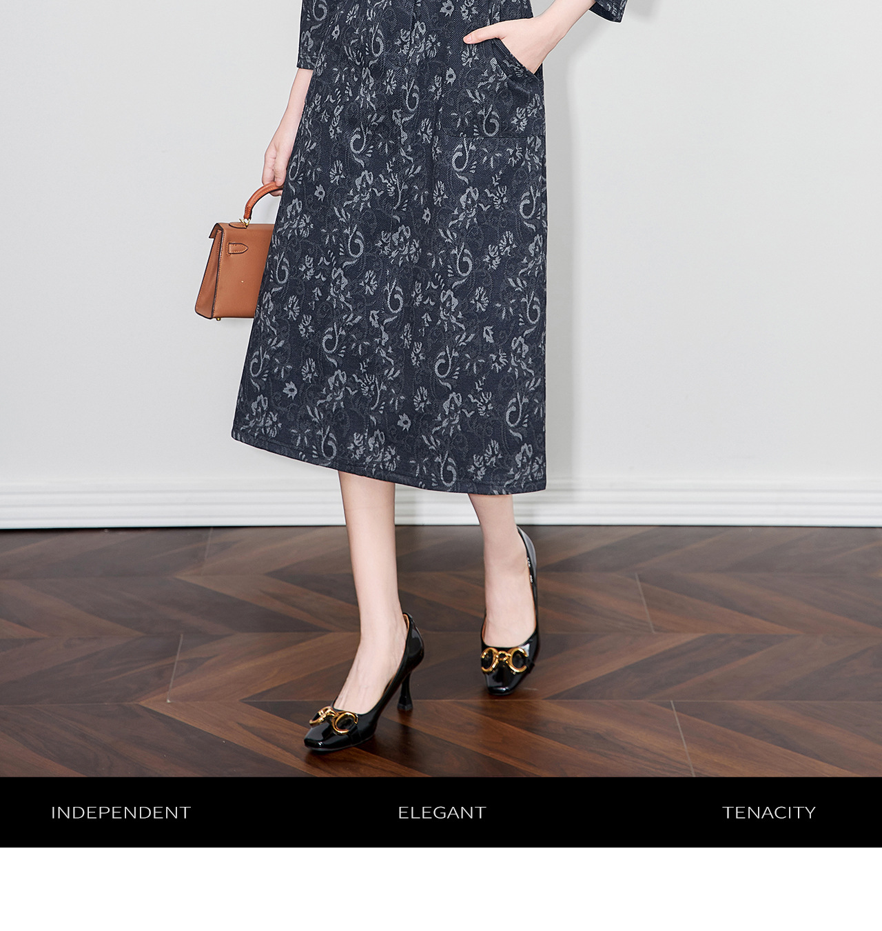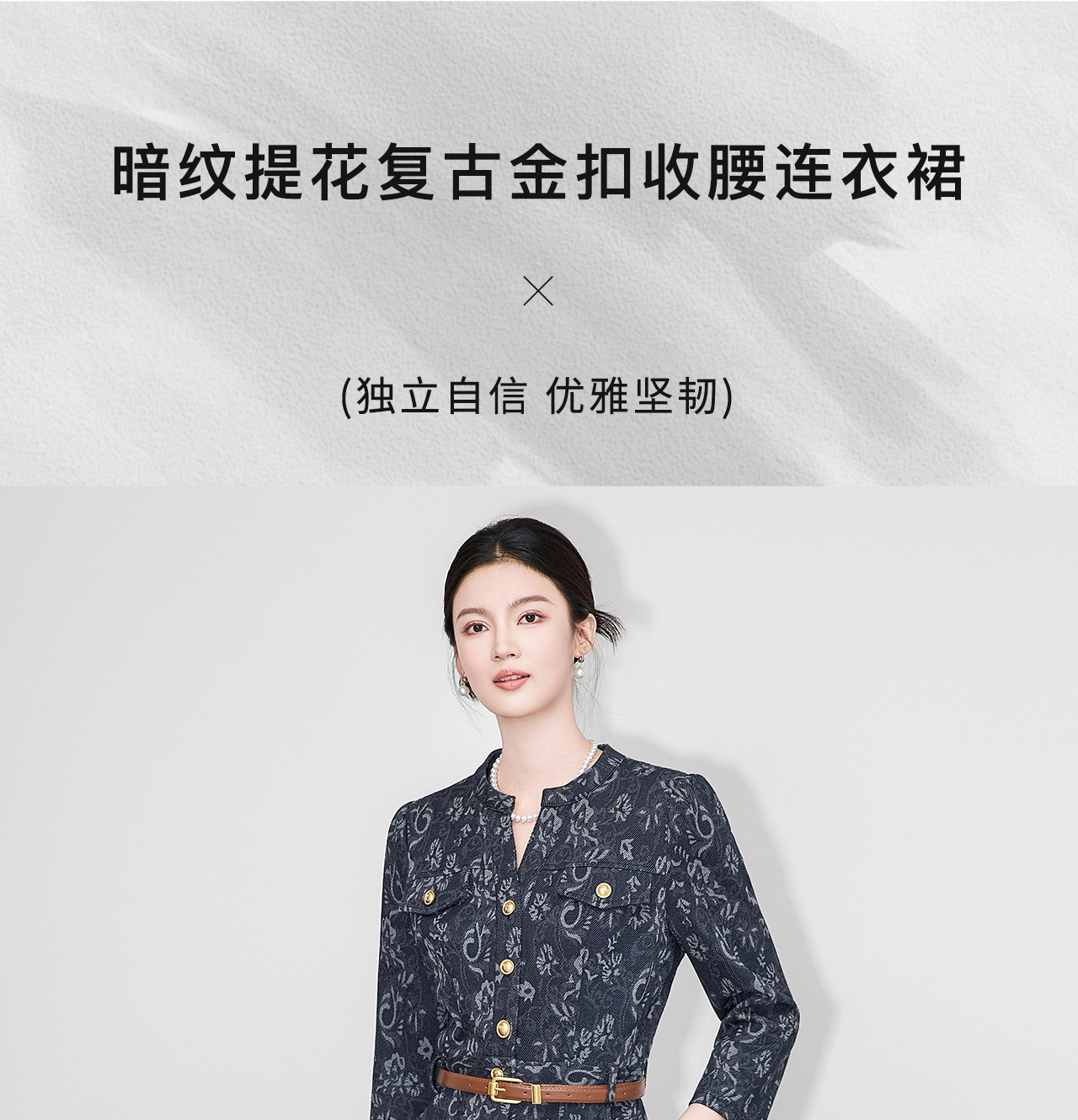 「高货wl」全新升级【铂金会员349/天猫469/差价120】(80738)洛诗琳气质复古衬衫牛仔裙2025秋冬修身显瘦印花连衣裙