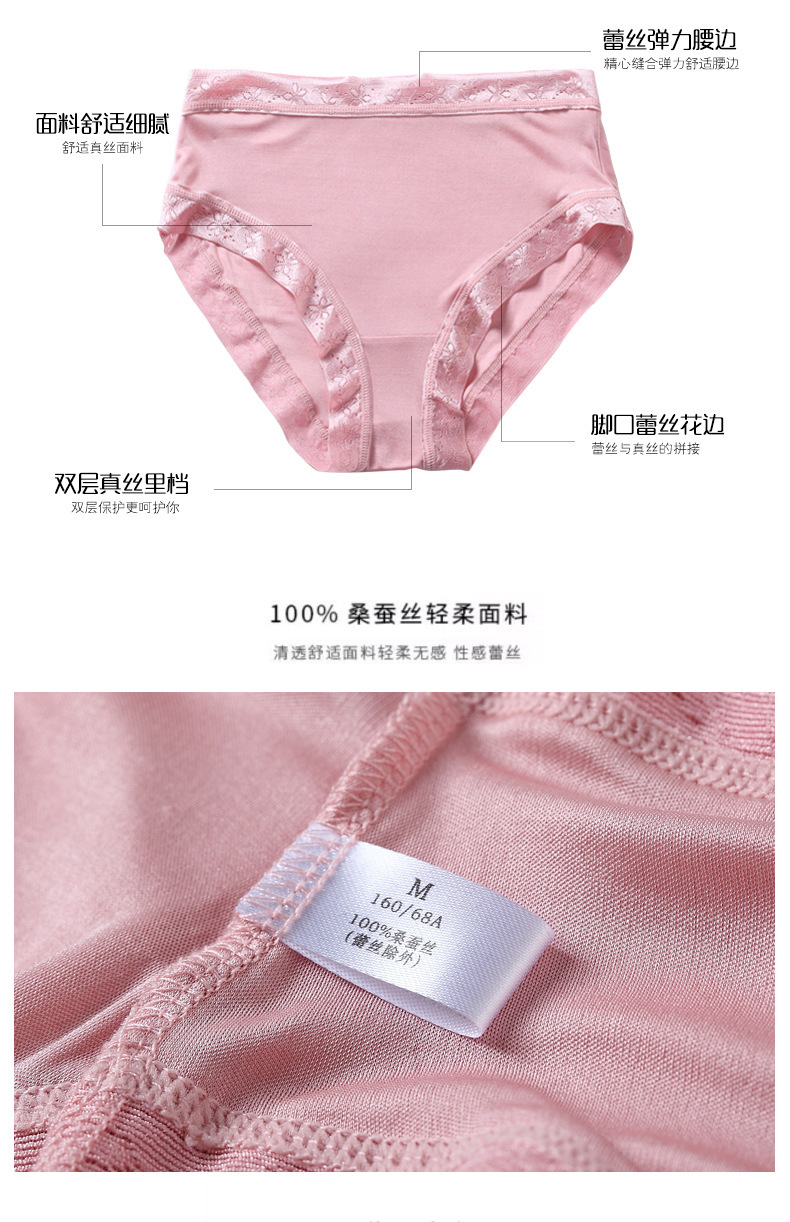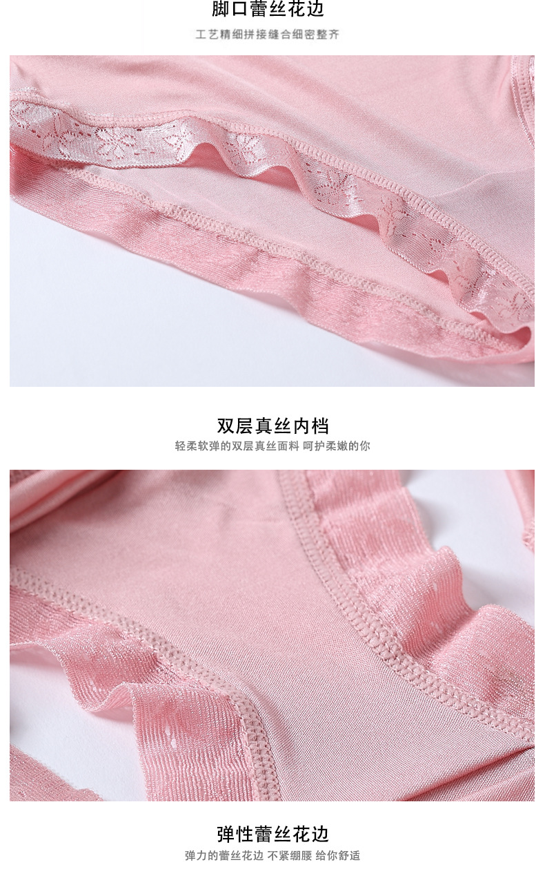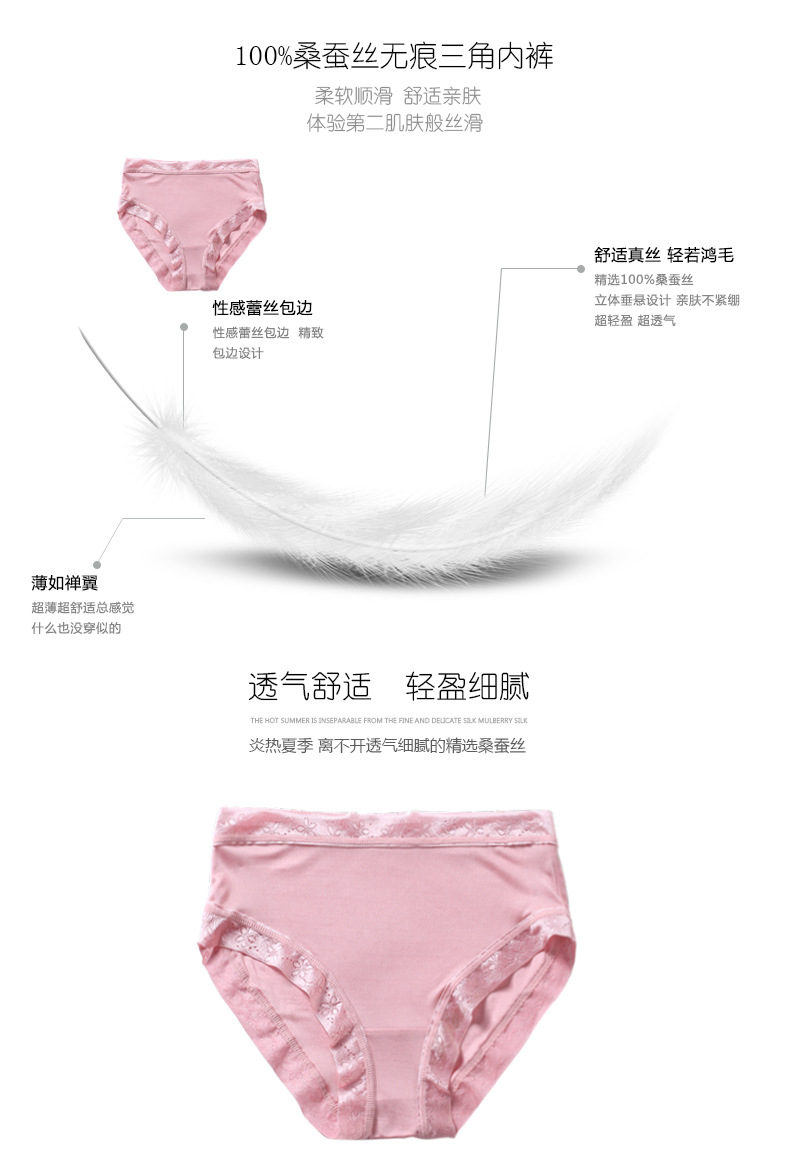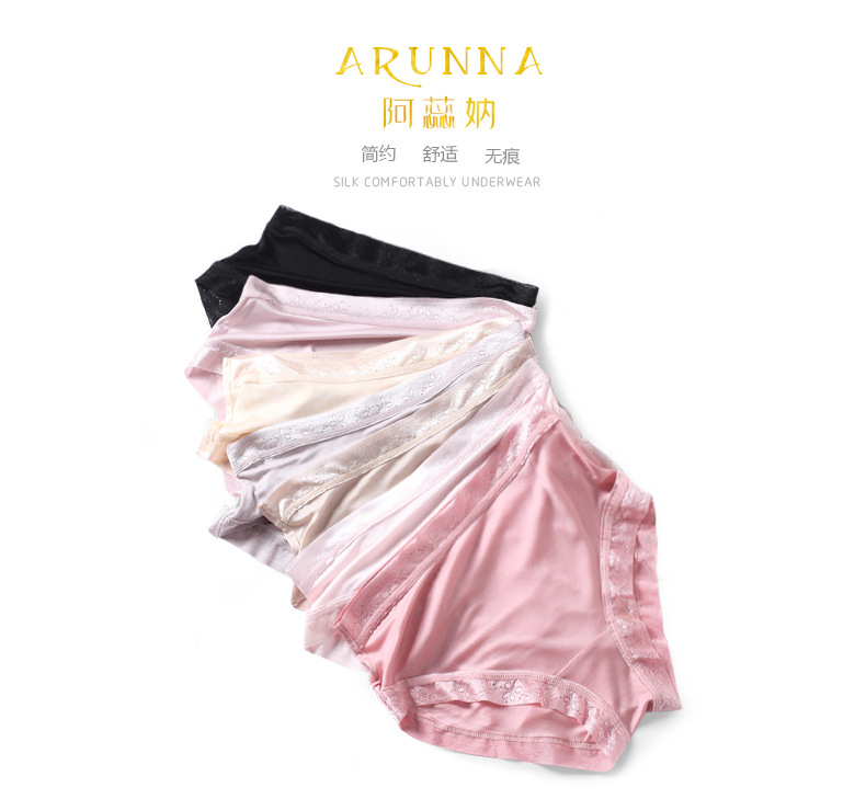 ARN-K024真丝内裤女春夏薄款透气舒适蕾丝中腰无痕42针桑蚕丝三角内裤