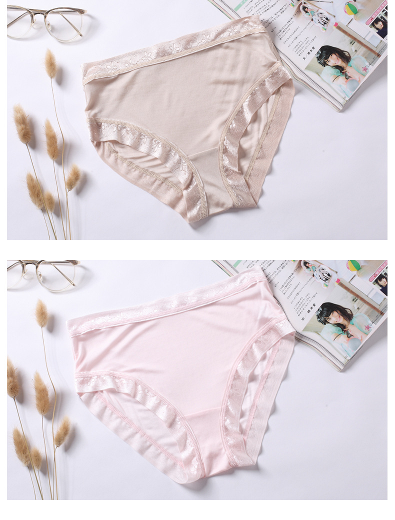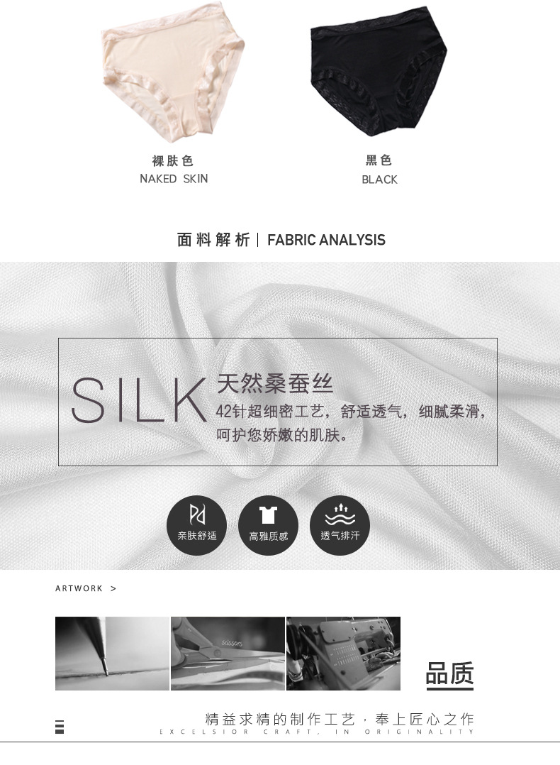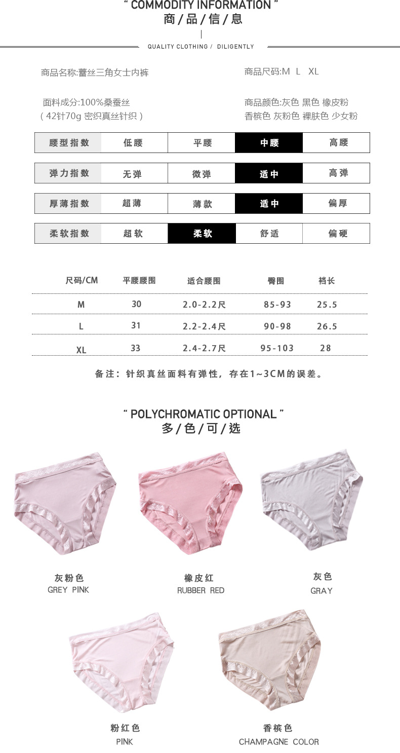ARN-K024真丝内裤女春夏薄款透气舒适蕾丝中腰无痕42针桑蚕丝三角内裤