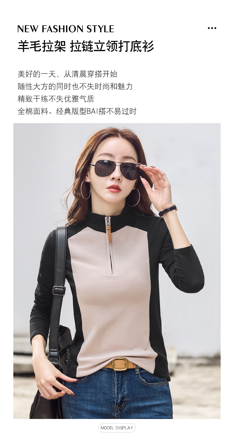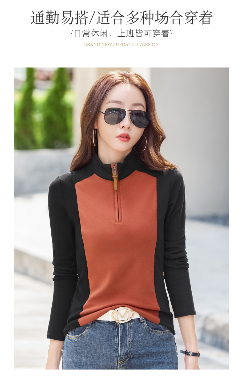 丁摩 【撞色天鹅衫】新款美雅碧棉v领假两件撞色针织开衫打底衫上4ZF-120902