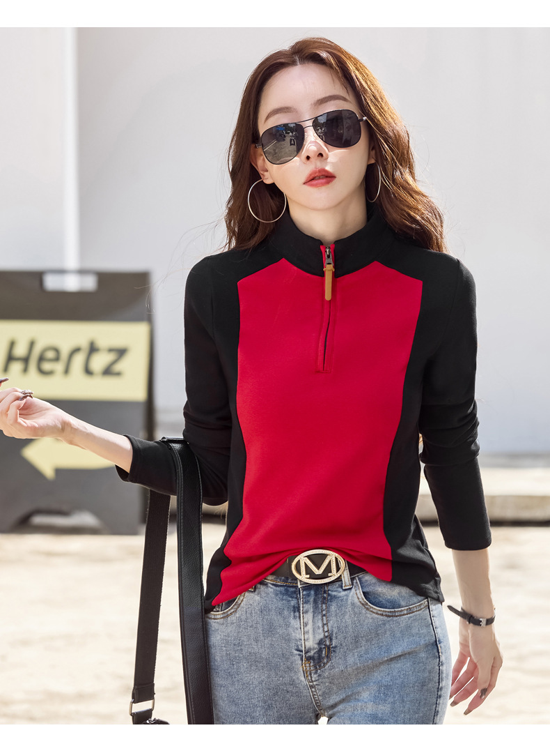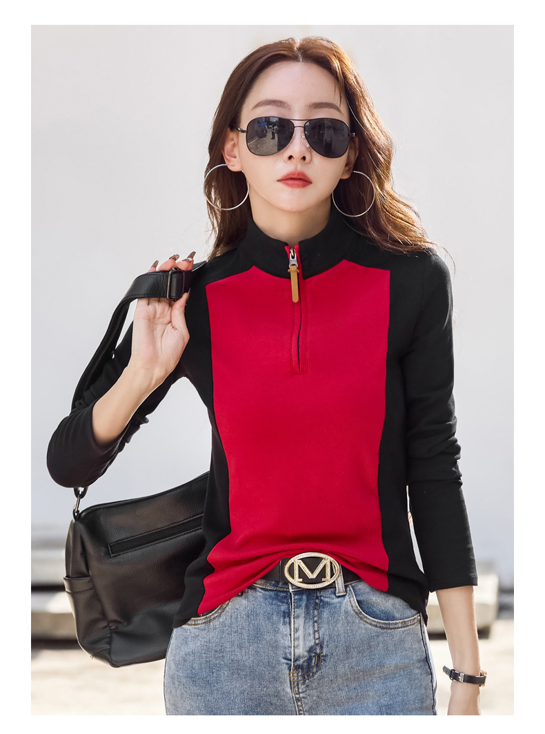 百媚生 棉质翻领长袖T恤82383