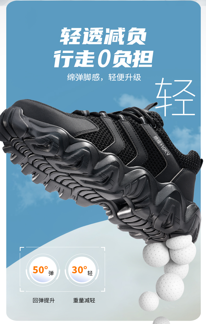 新品绝缘10KV夏季款透气轻便EVA大底劳保鞋男防砸防刺网布工地安全鞋