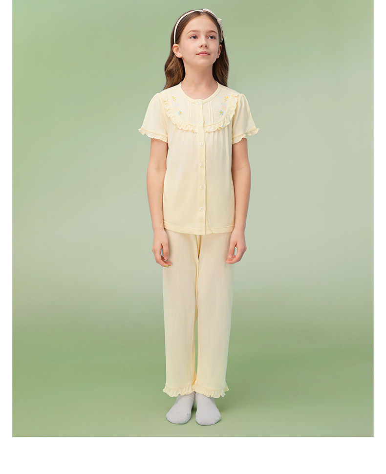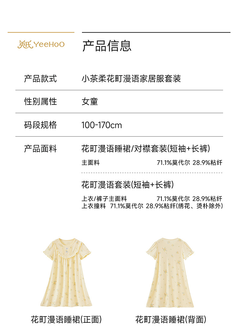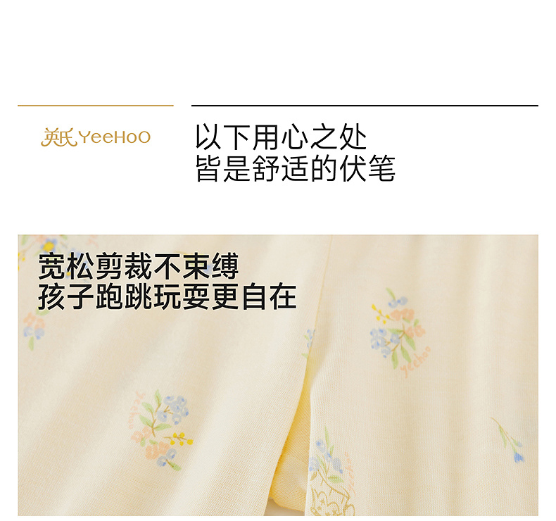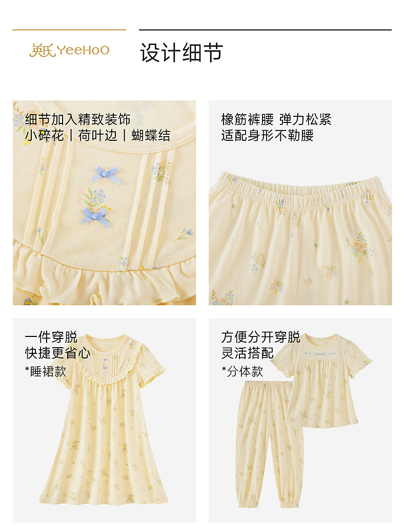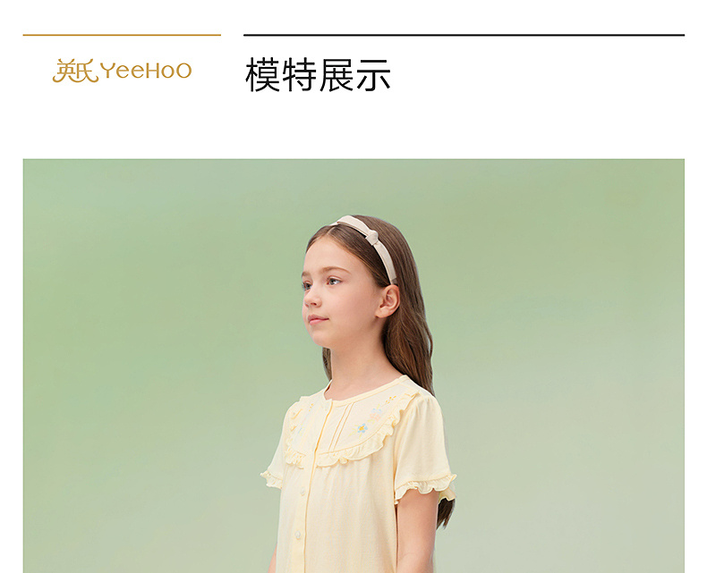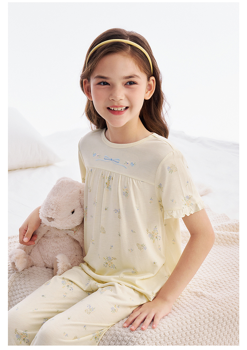 【10A抗菌防螨小茶柔】英氏儿童家居服套装夏季女童短袖长裤居家服莫代尔睡裙