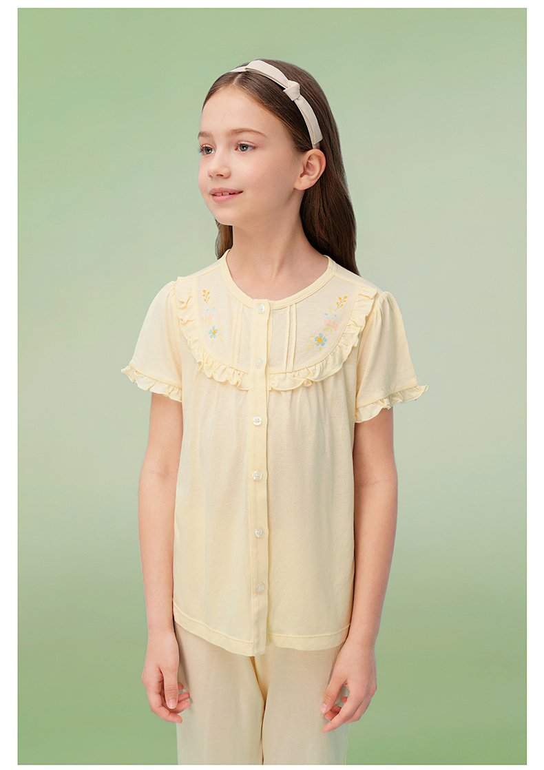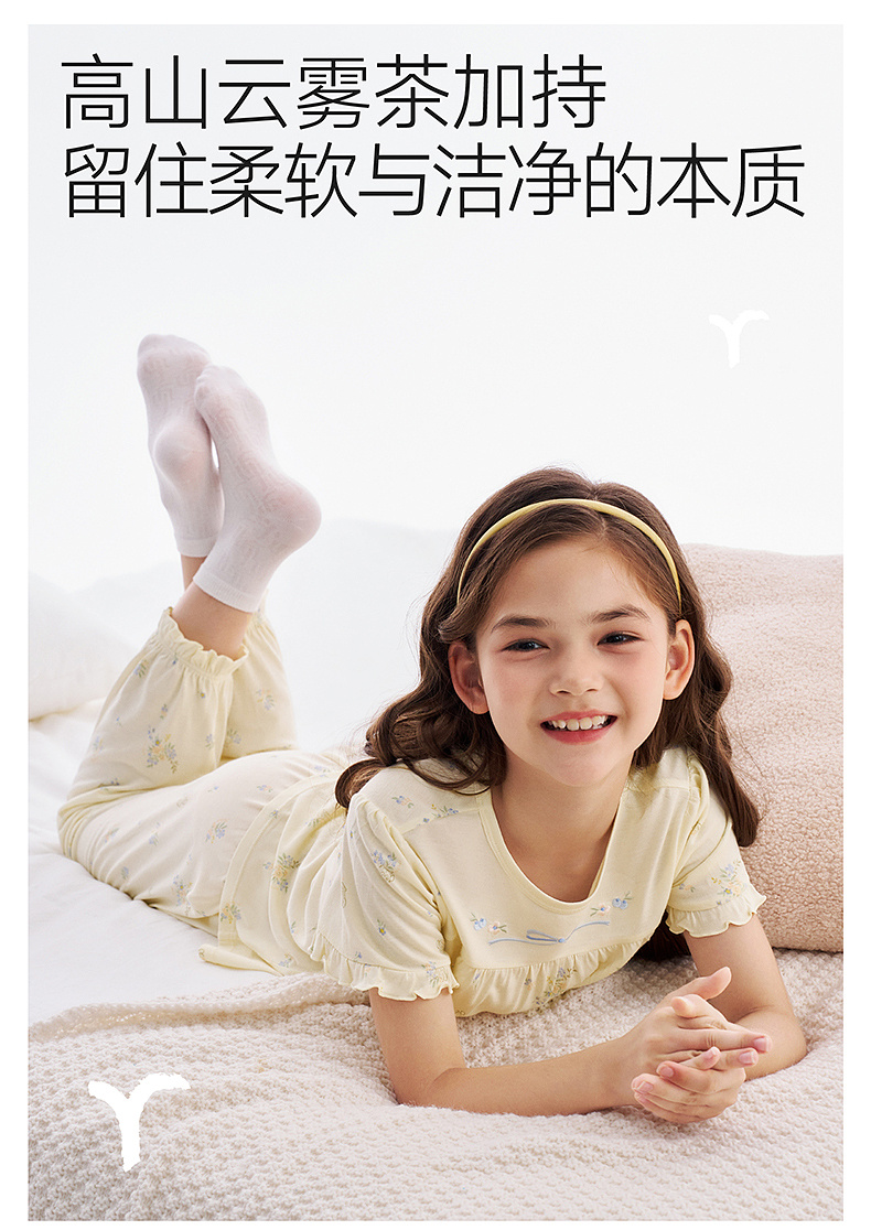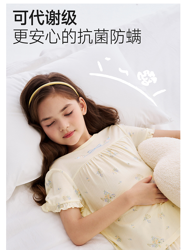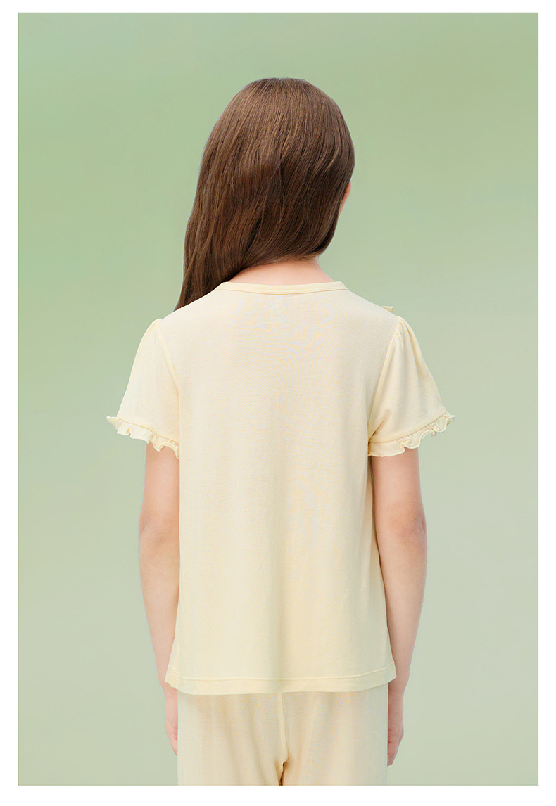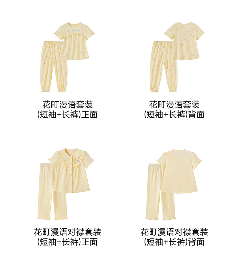 【10A抗菌防螨小茶柔】英氏儿童家居服套装夏季女童短袖长裤居家服莫代尔睡裙