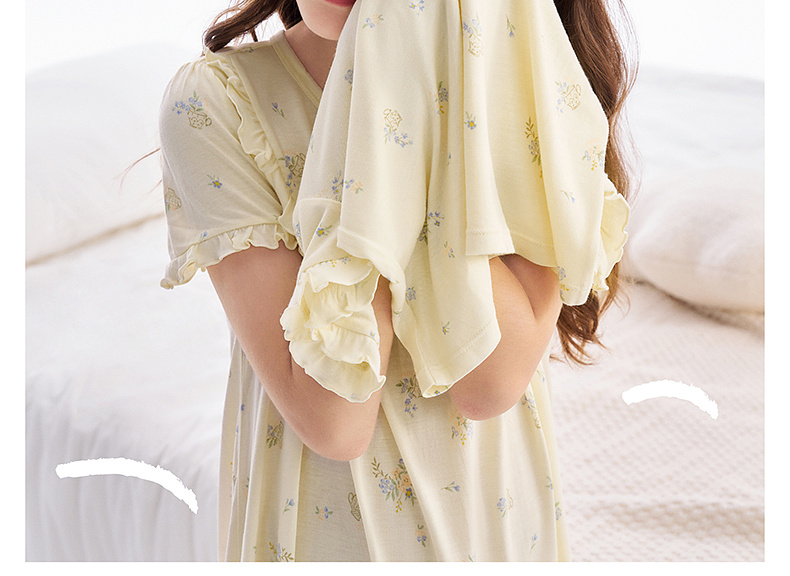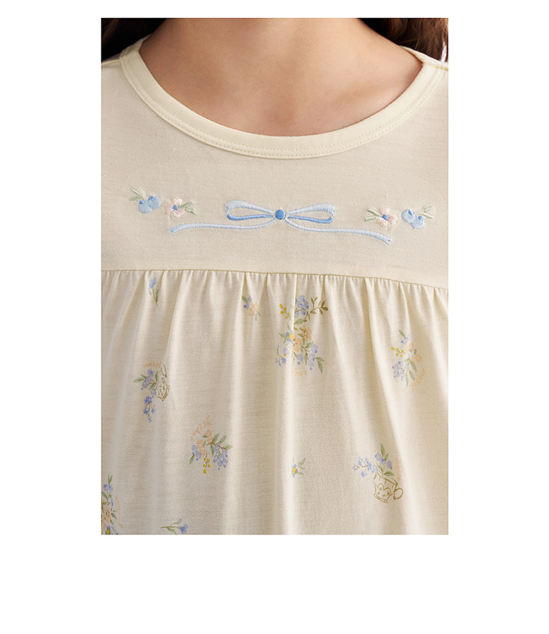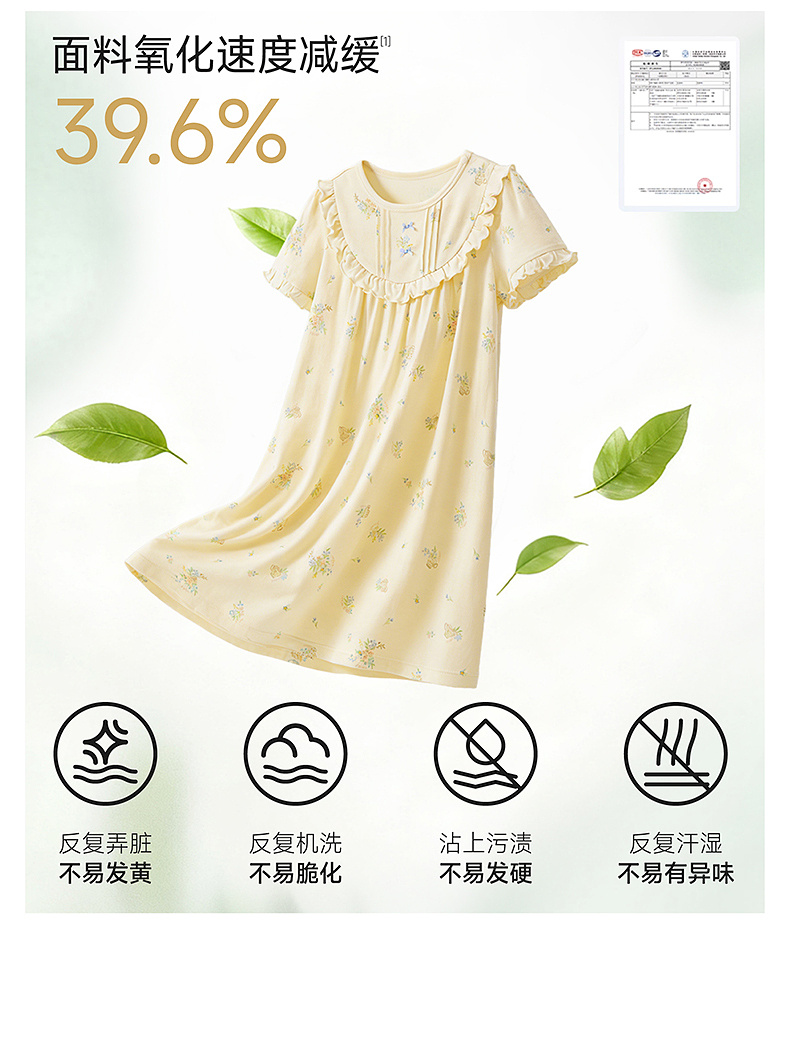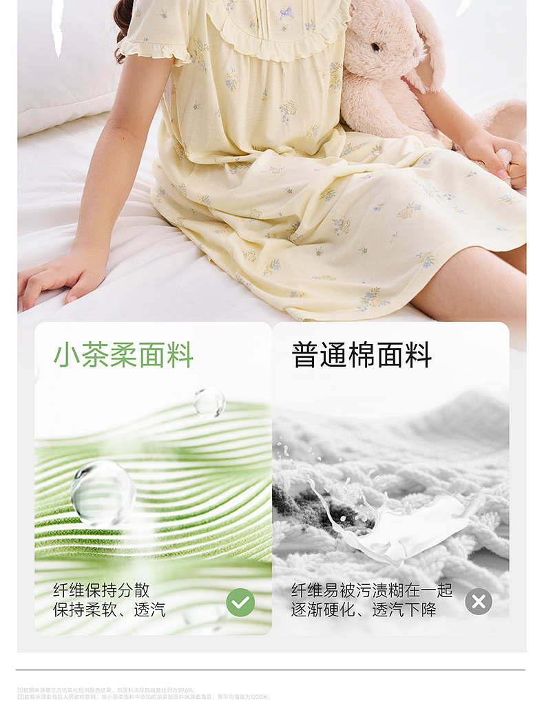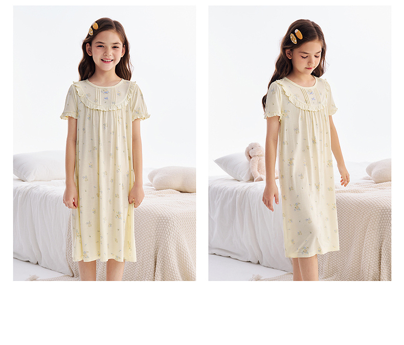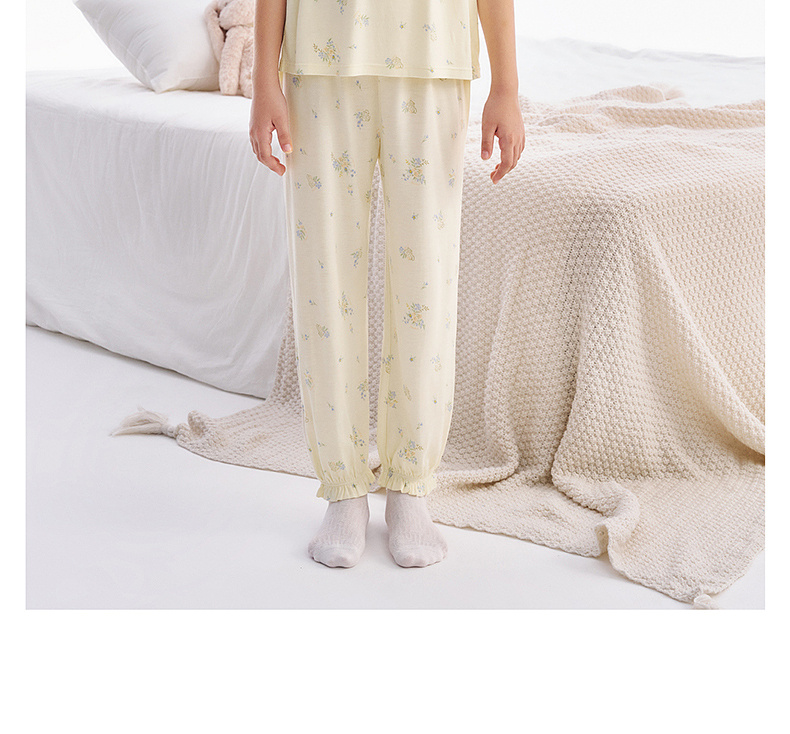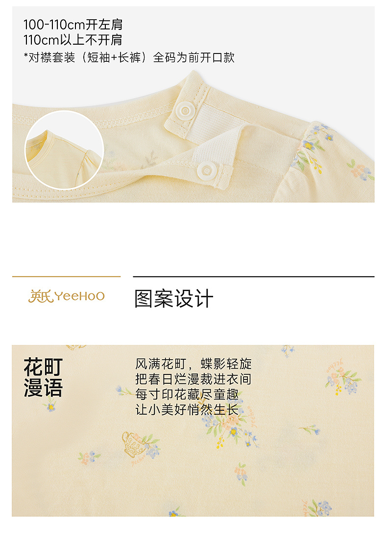 【10A抗菌防螨小茶柔】英氏儿童家居服套装夏季女童短袖长裤居家服莫代尔睡裙