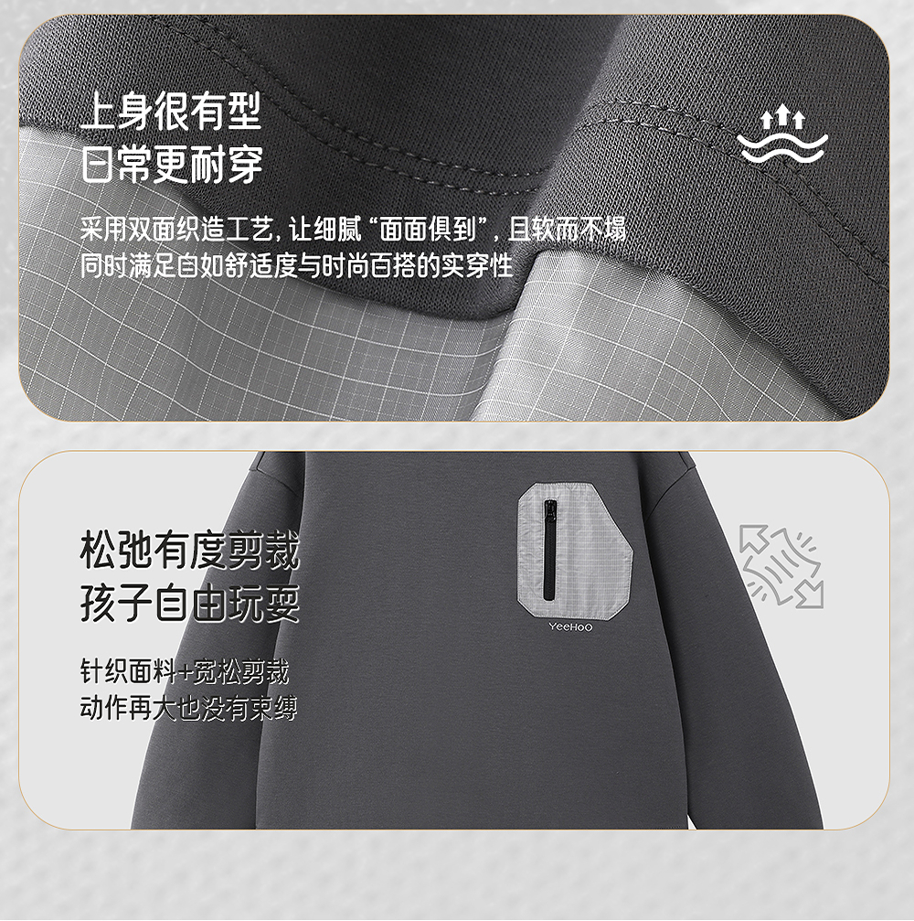 英氏男童宽松上衣2025秋季新款圆领长袖套头衫休闲中大童百搭卫衣