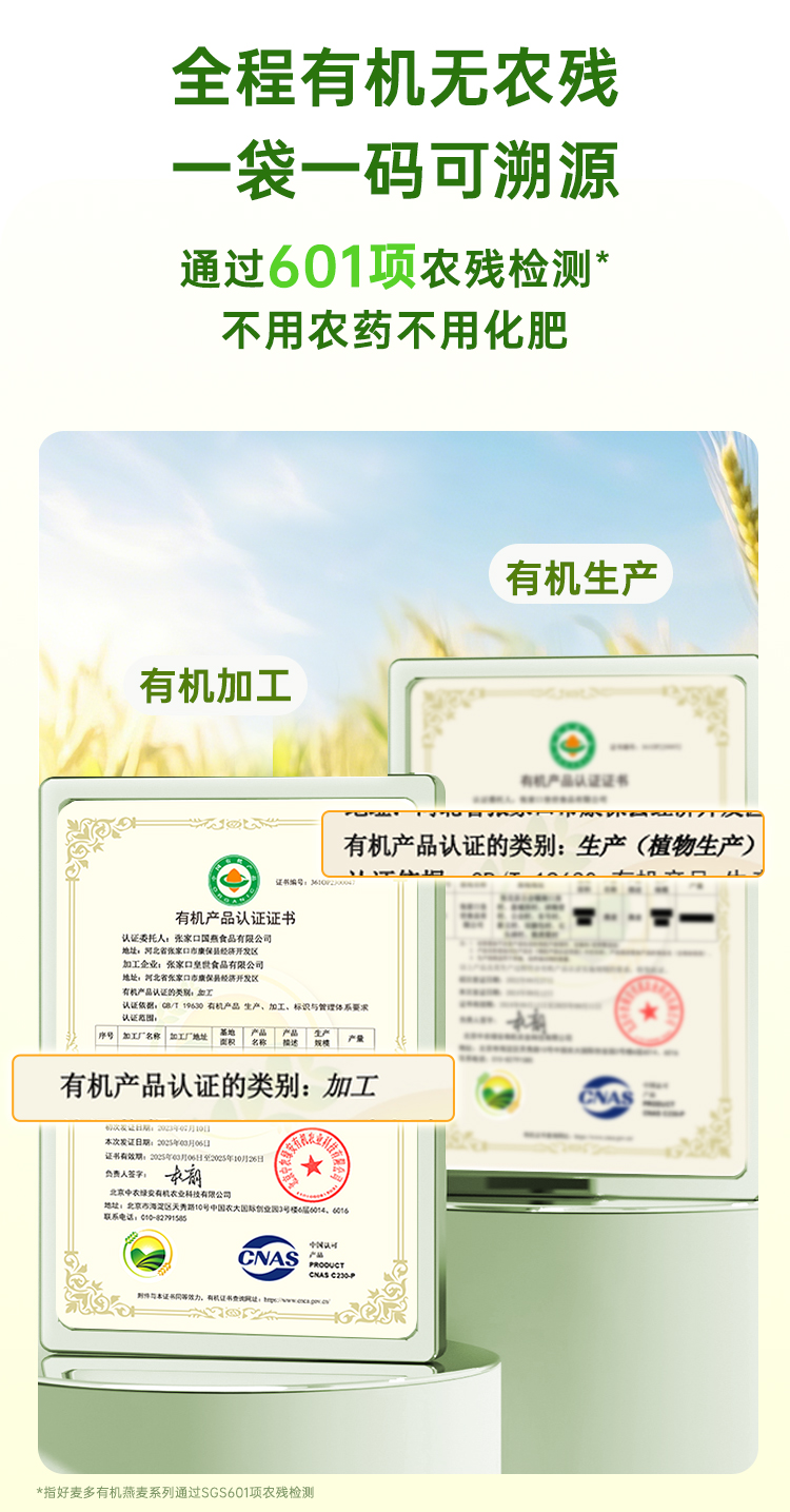 【麦麦SY】好麦多有机黑麦纯燕麦片888g*桶高纤维即食营养早餐杂粮粗粮