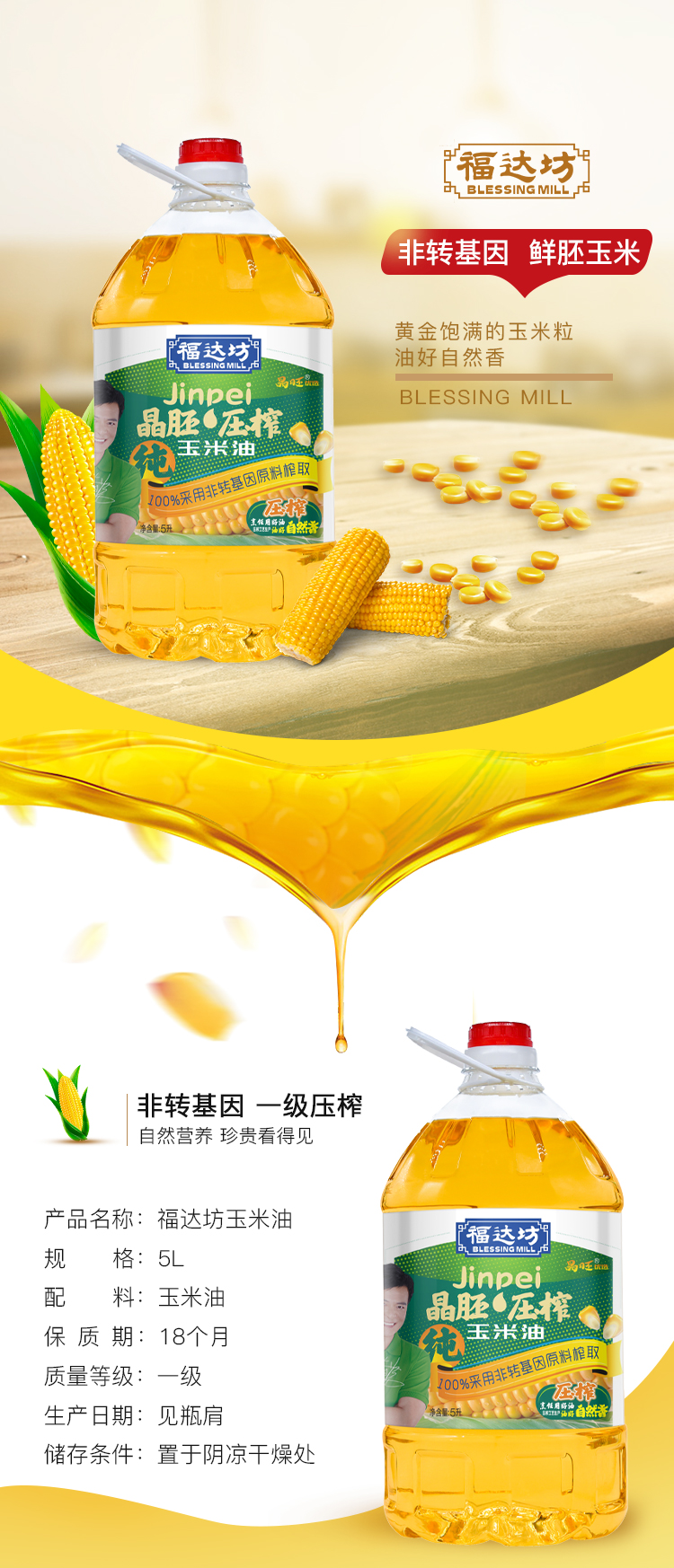 【福达坊&仅限快递】福达坊晶胚优选5L玉米油 包邮(厂家直发)