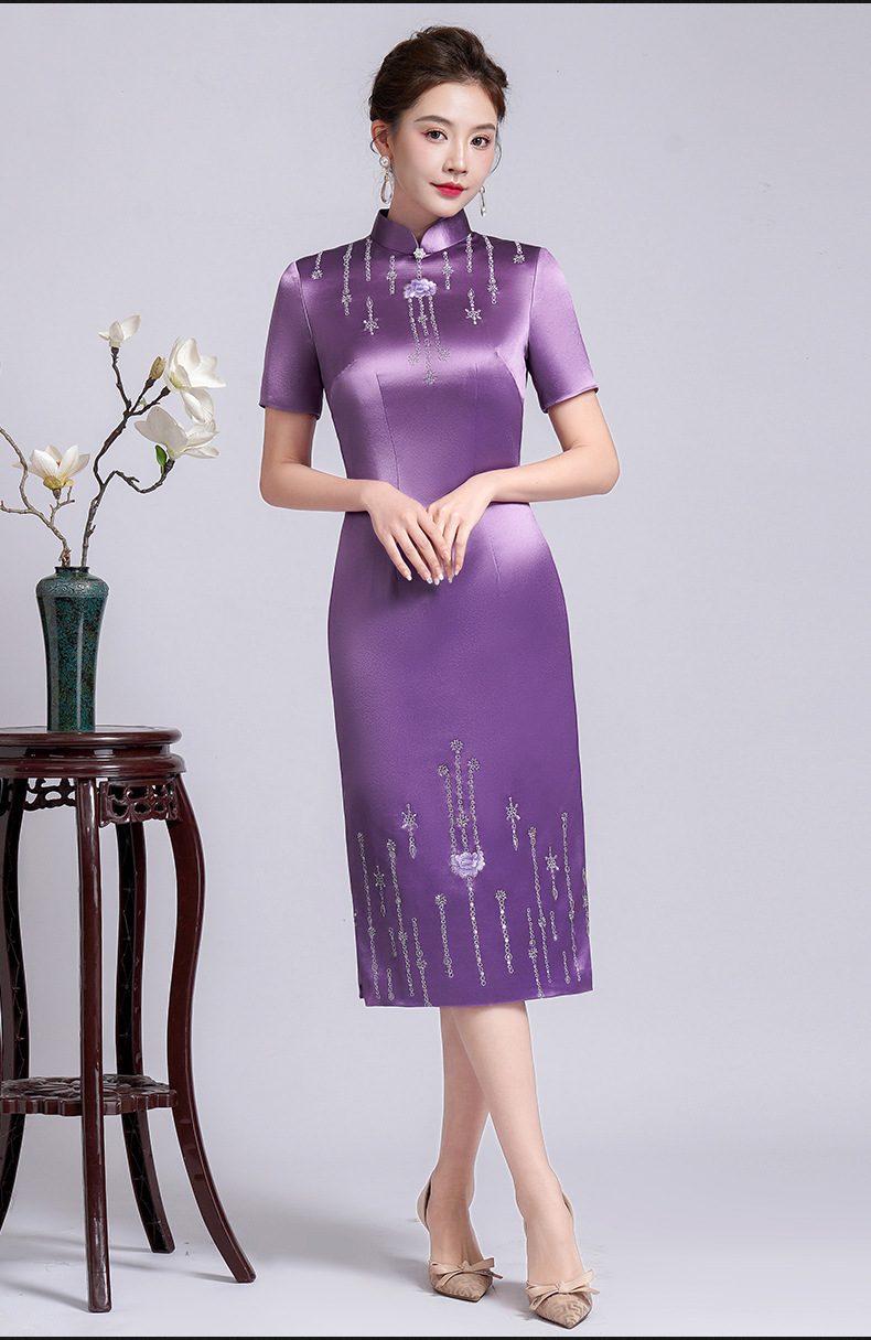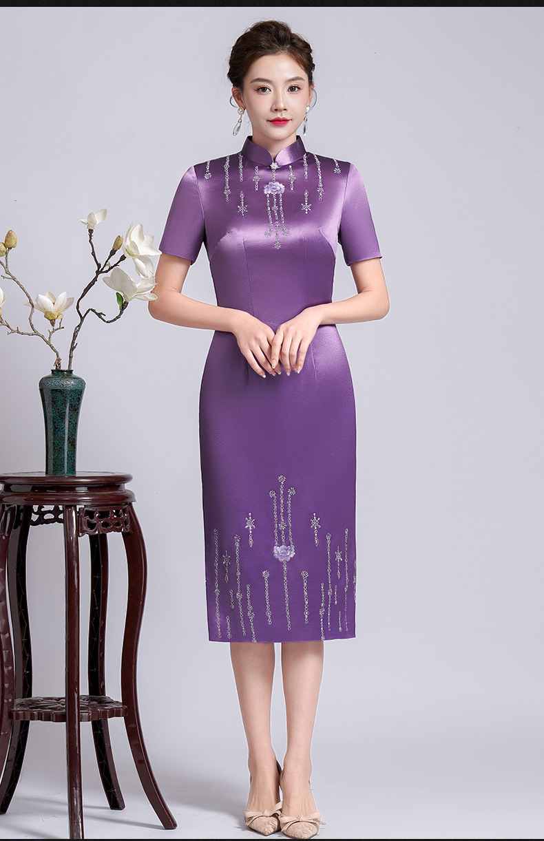 LHS-A14婚庆喜婆婆装婚宴礼服高贵年轻显瘦旗袍洋气新款连衣裙春