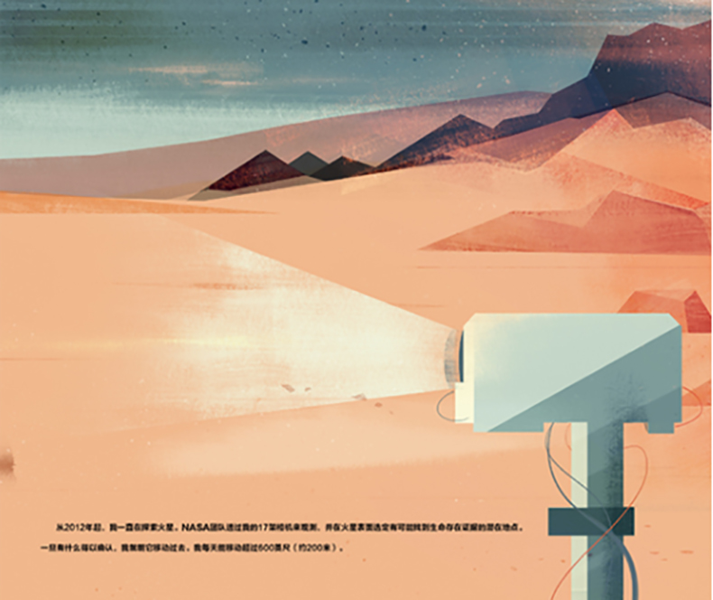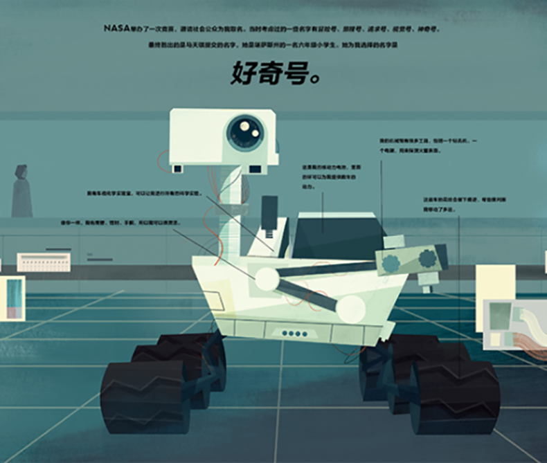4: 把火星车机器人拟人化,以好奇号自己的口吻,用第一人称的视角来讲述,拉近了故事与小读者的距离,使人更容易产生共鸣