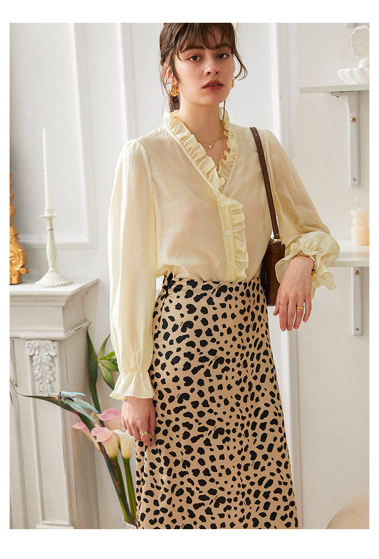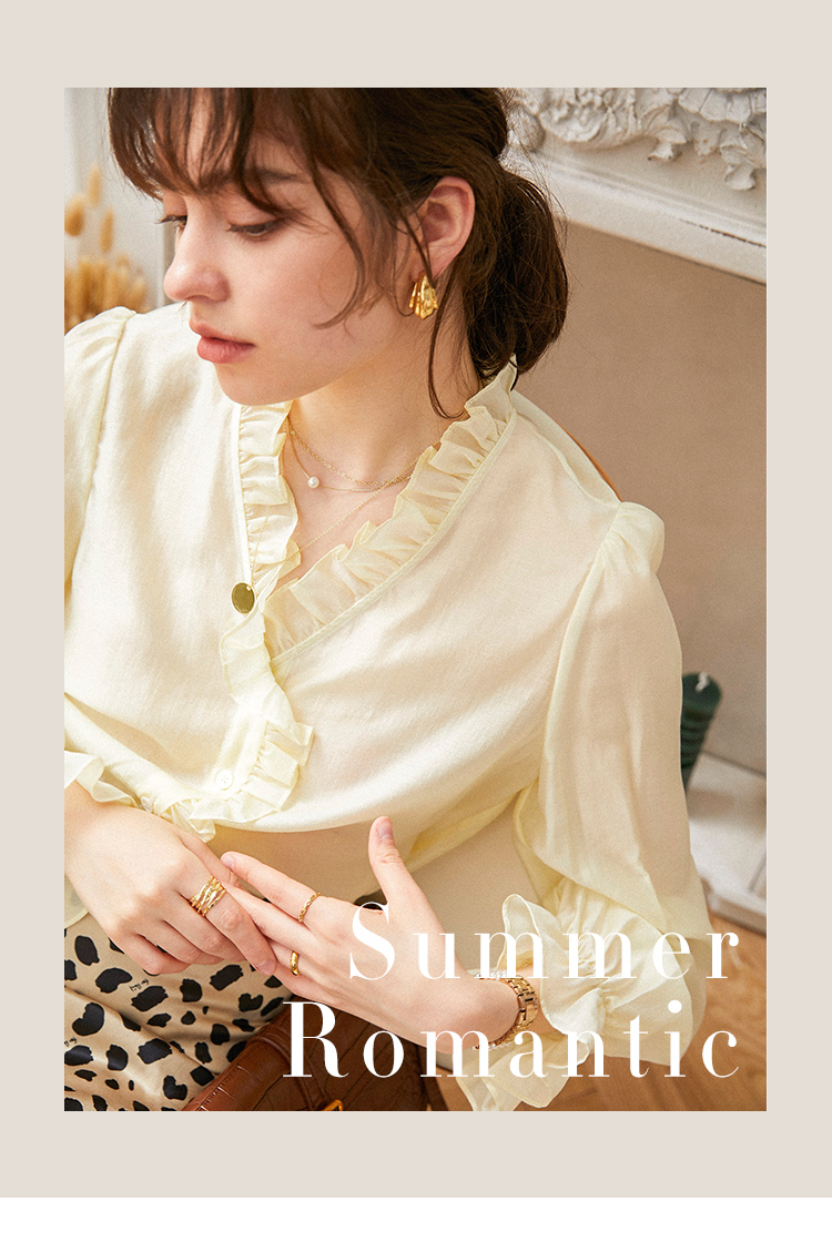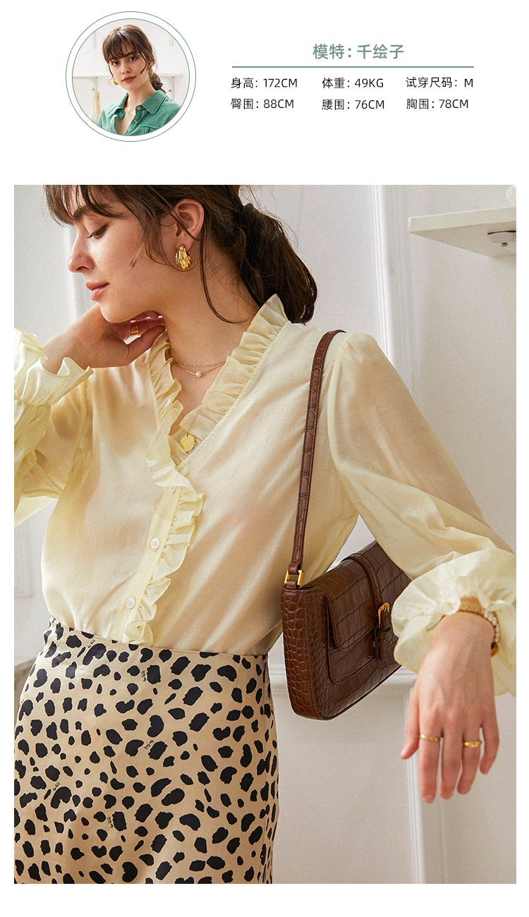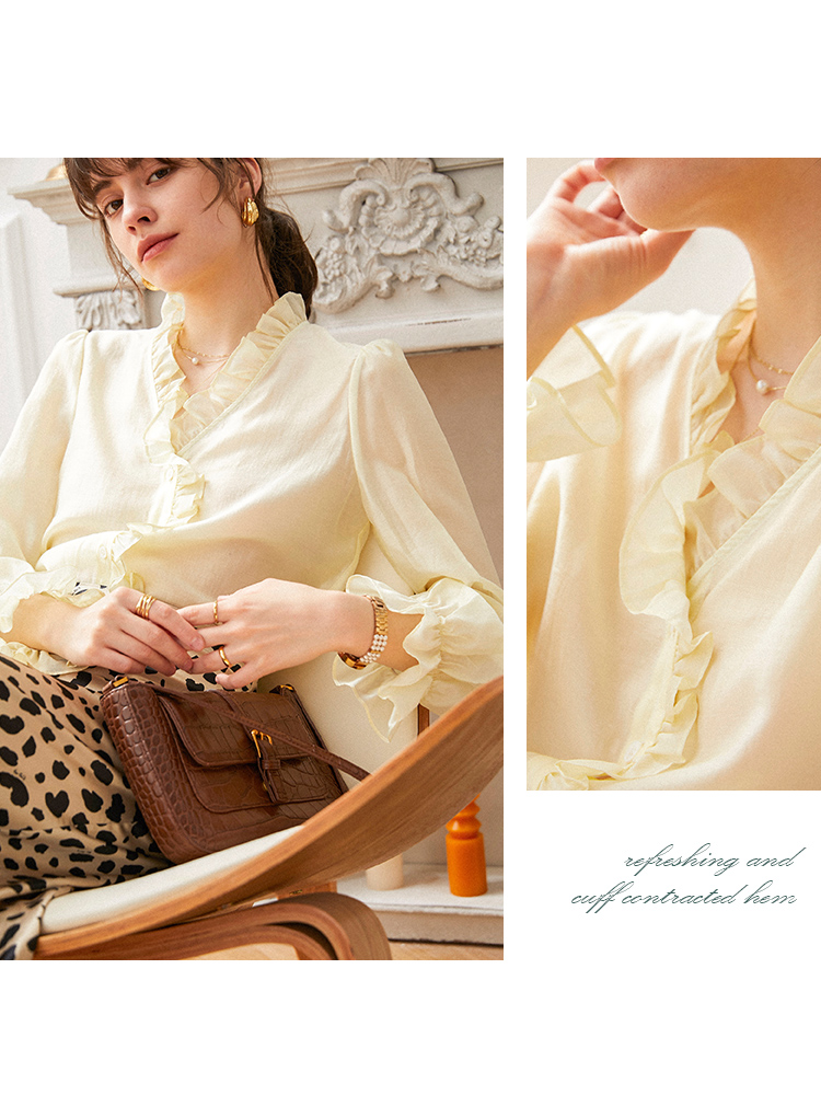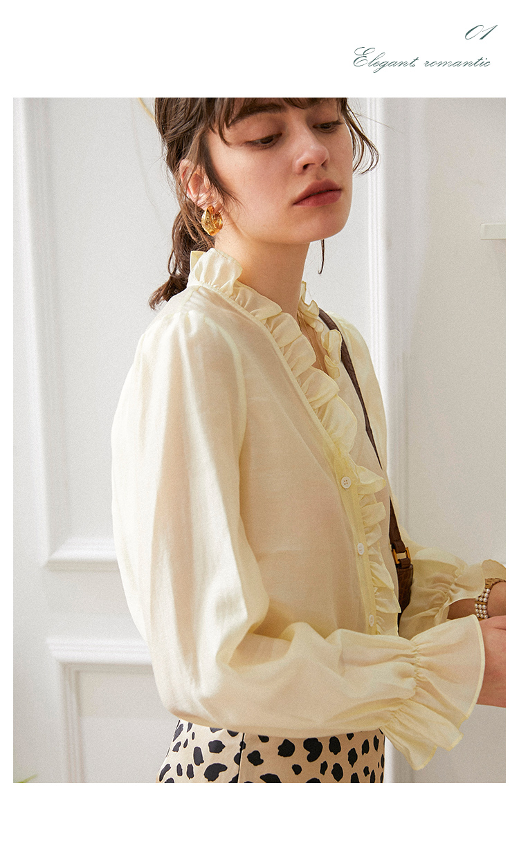 M4臣禾 复古荷叶领法式优雅衬衫(薄纱材质微透)S211051022(现货)
