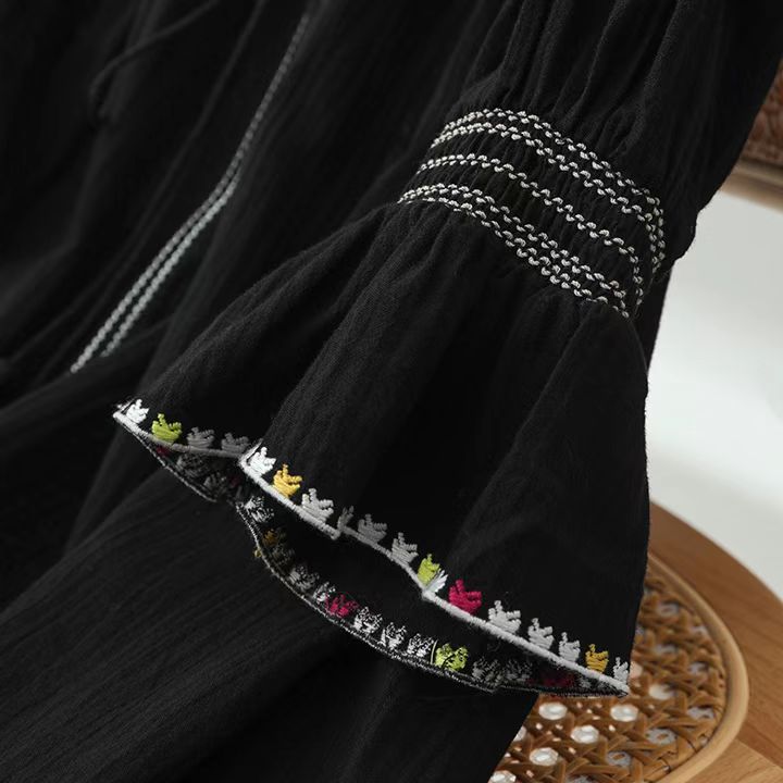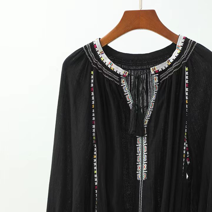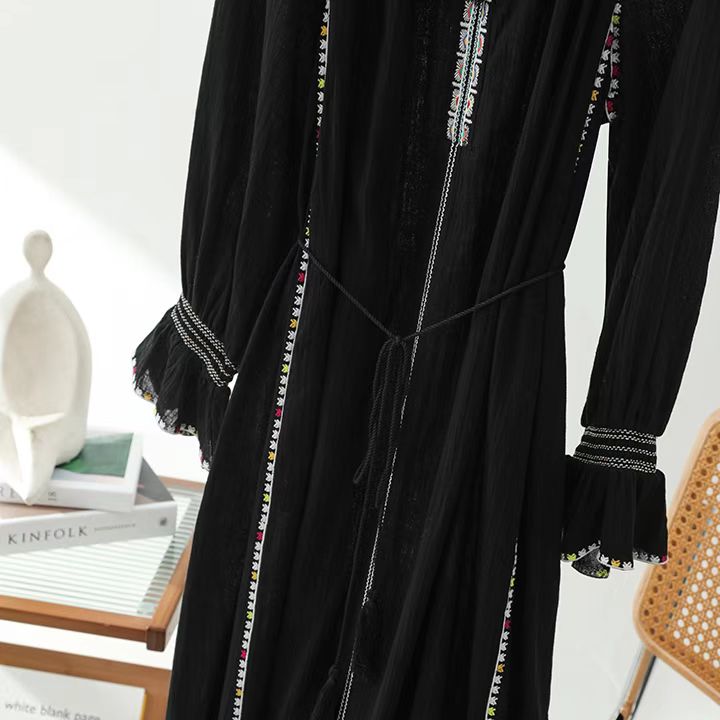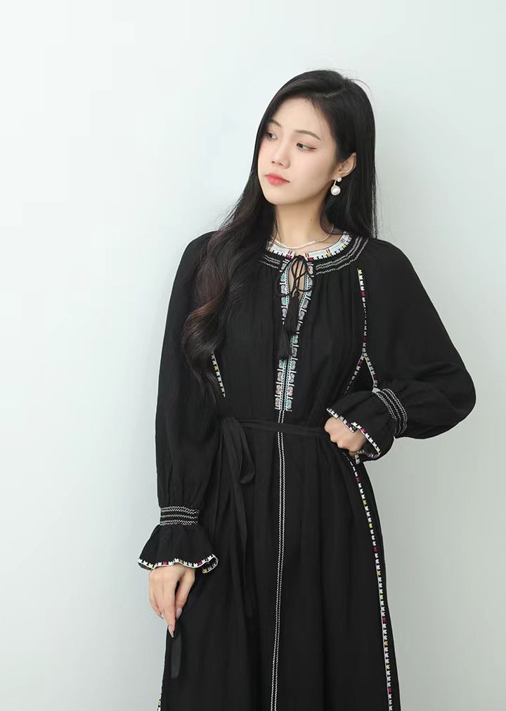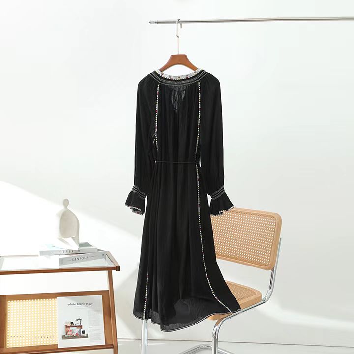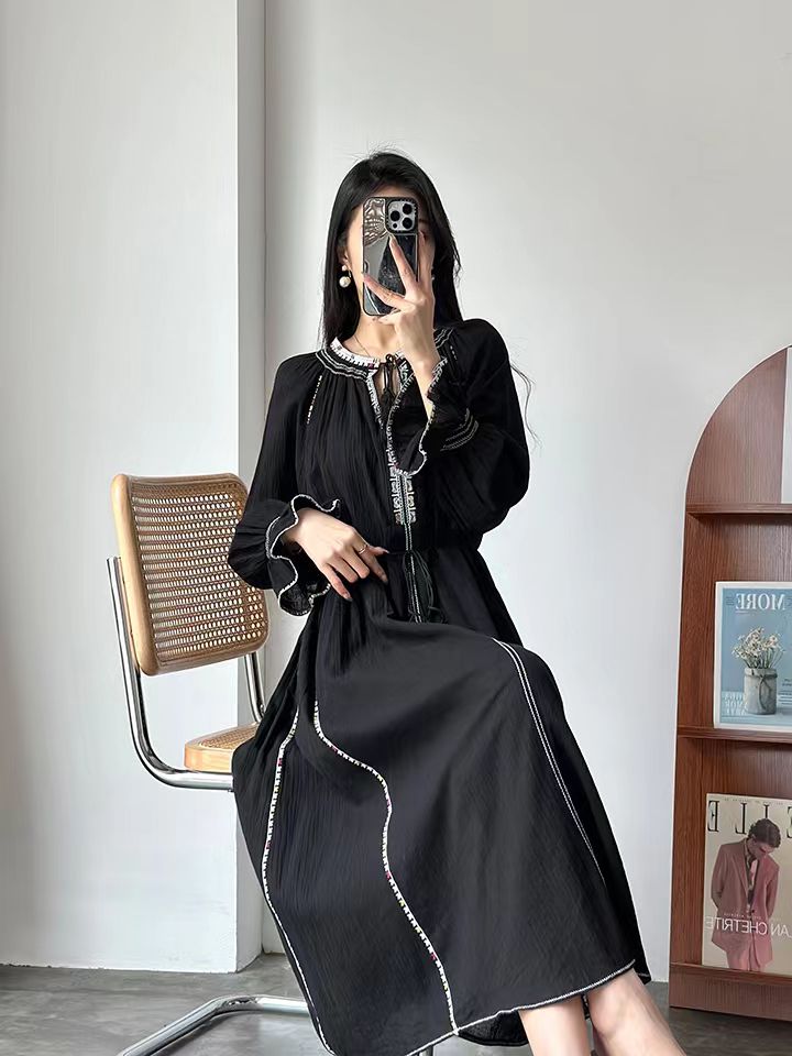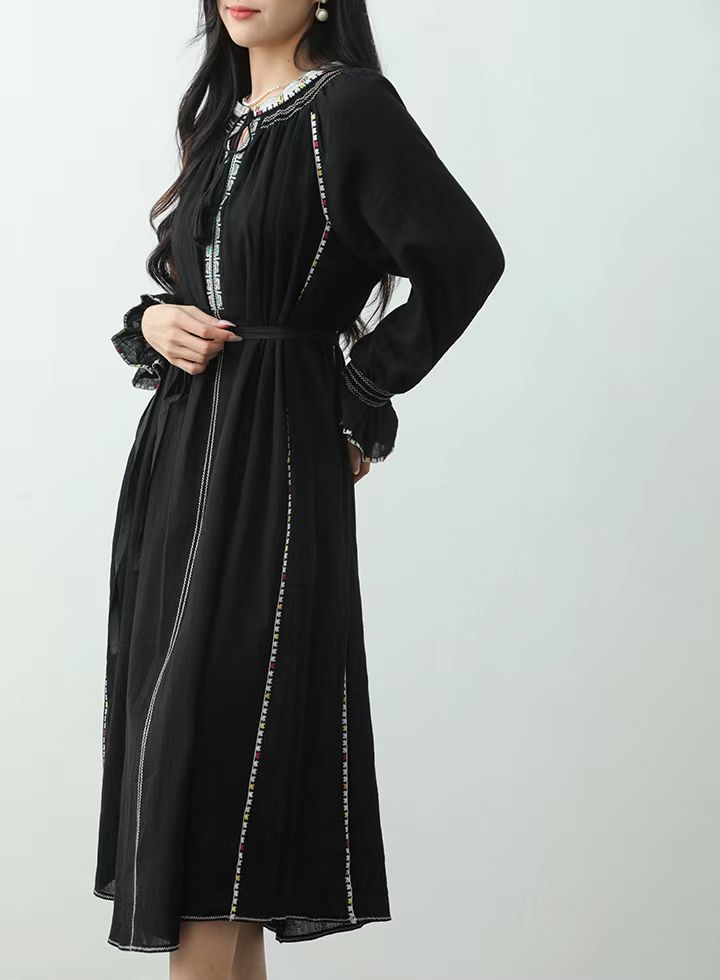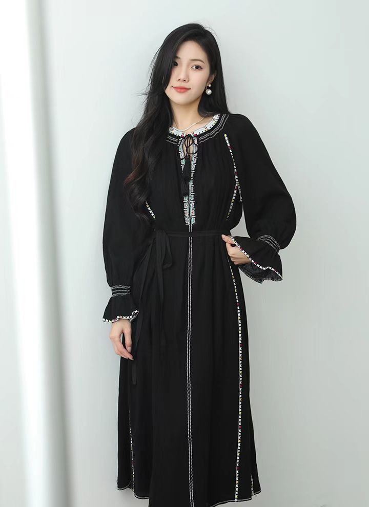 顺丰包邮洛诗琳41002波西米亚风轻奢重工刺绣长袖连衣裙10222