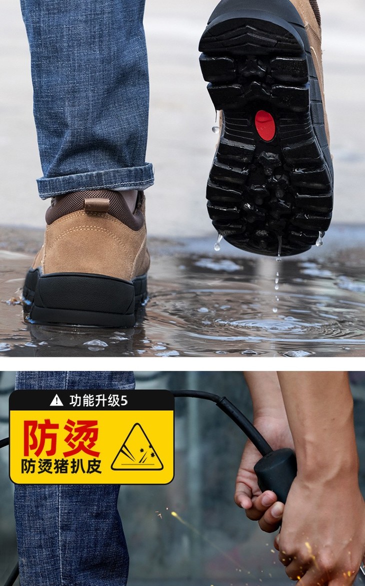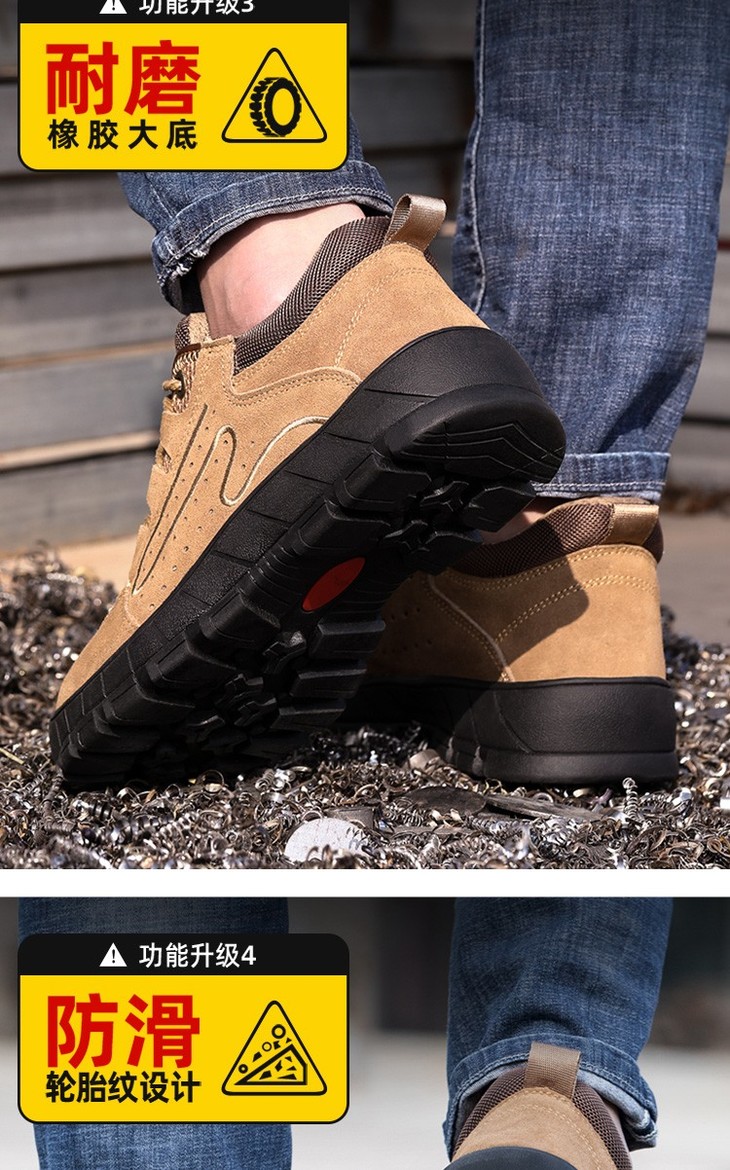 劳保鞋男反绒牛皮安全钢包头防砸防刺穿舒适防滑橡胶底轻便耐磨工作鞋 时尚耐磨款
