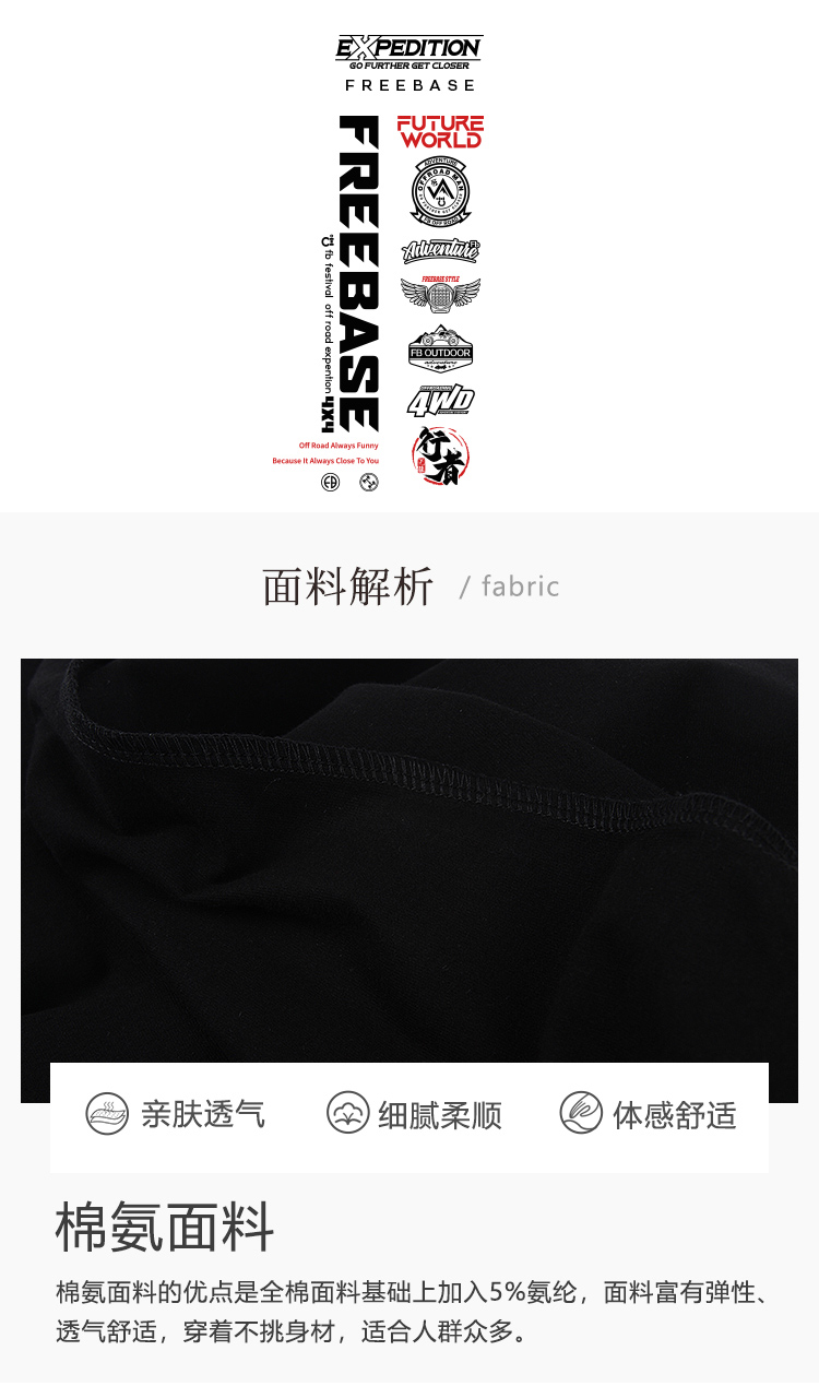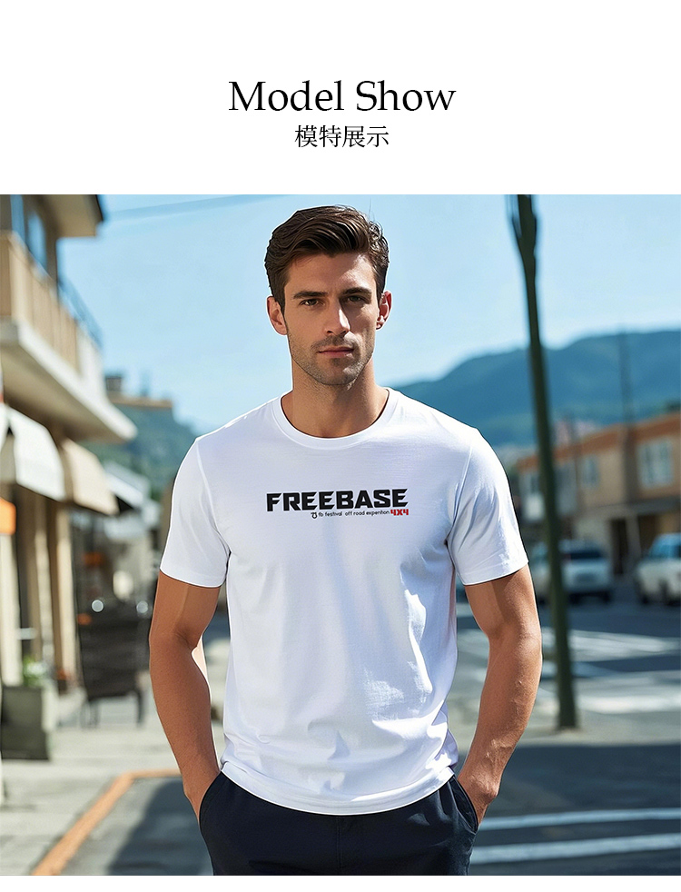 自由基地夏新品户外军潮logo印花短袖T恤男款情侣透气弹力棉上衣 NMT-2220