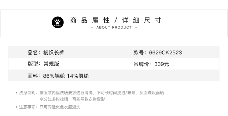 卡尔美女士梭织长裤6629CK2523