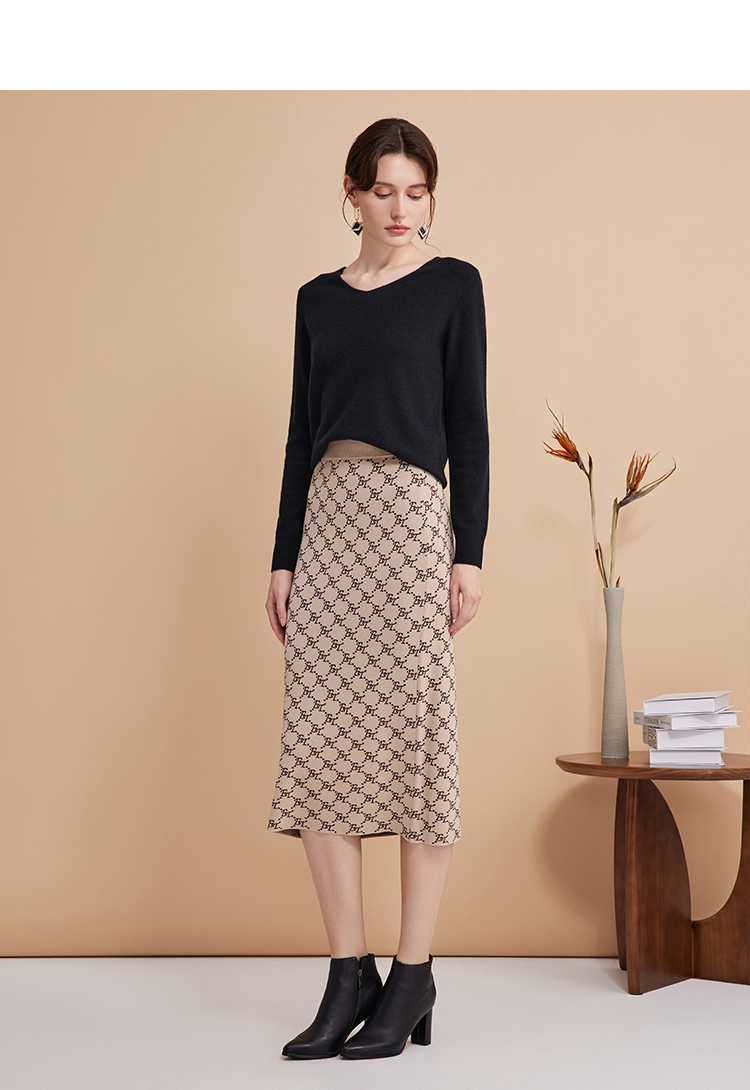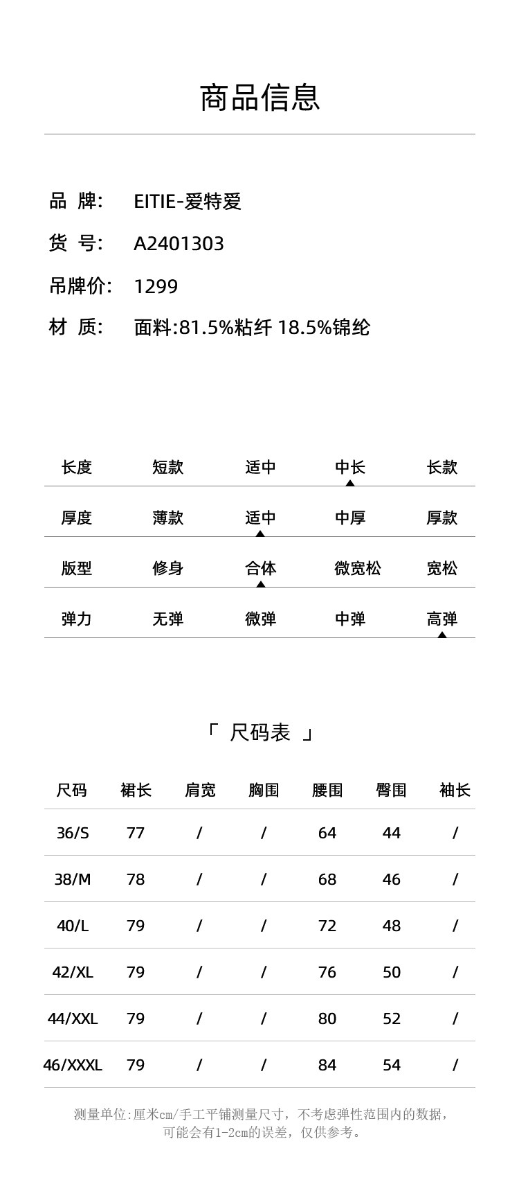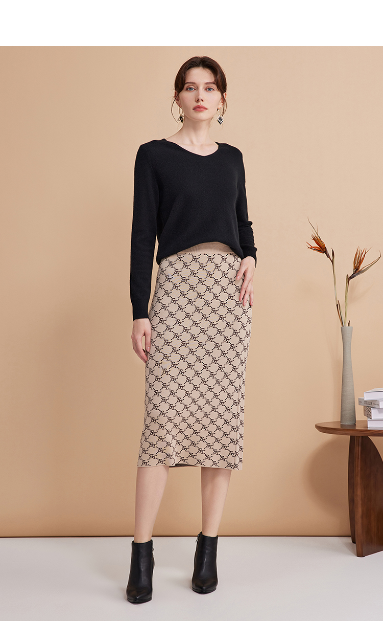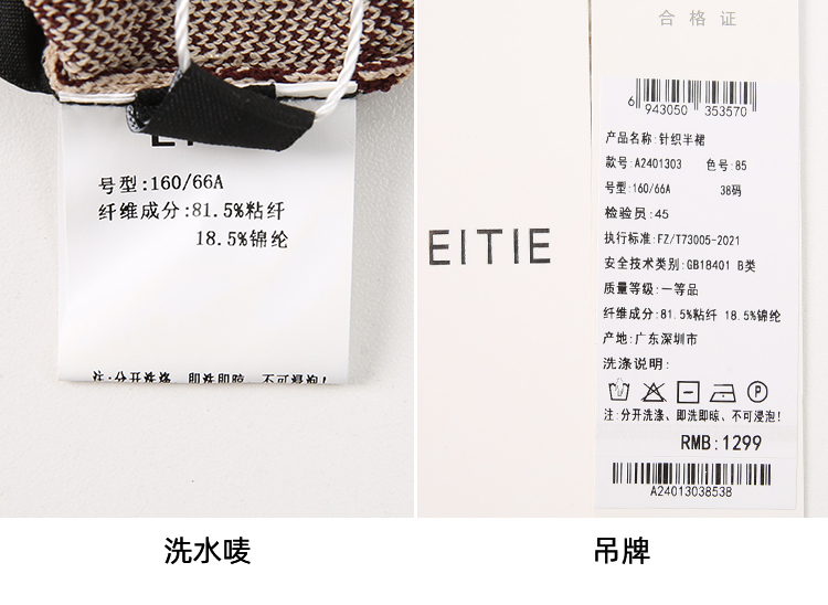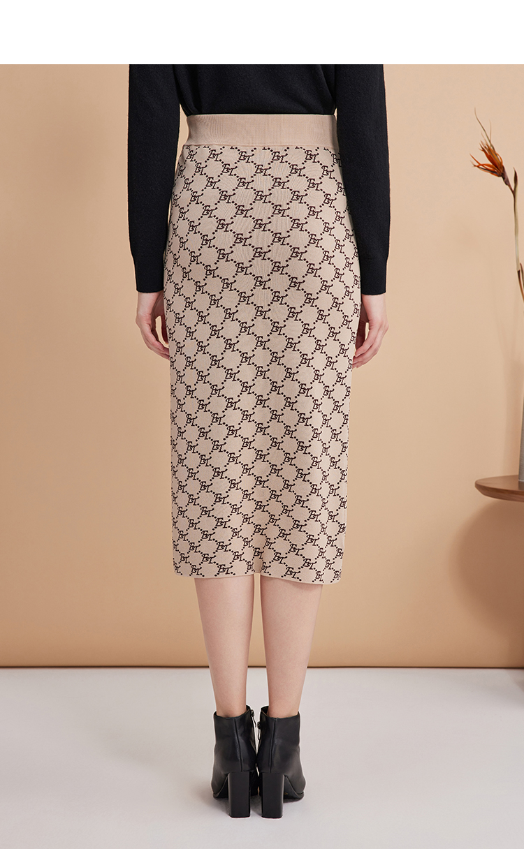 EITIE爱特爱气质优雅通勤百搭时尚高腰包臀a字针织半身裙24春新款A2401303